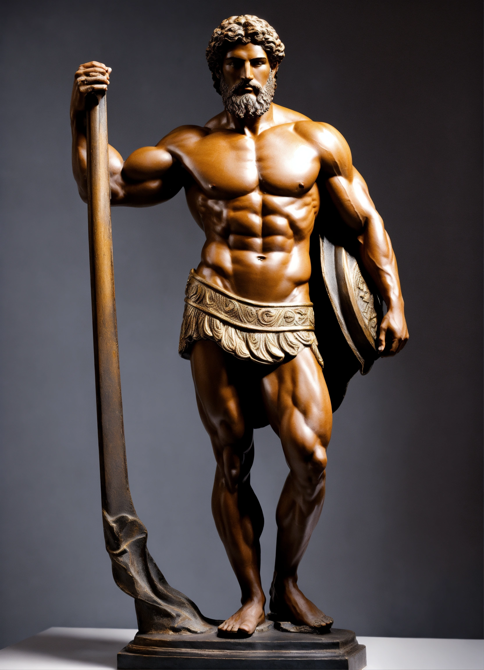 Simple muscular greek god statue with middelparting hair black boddy with white backround