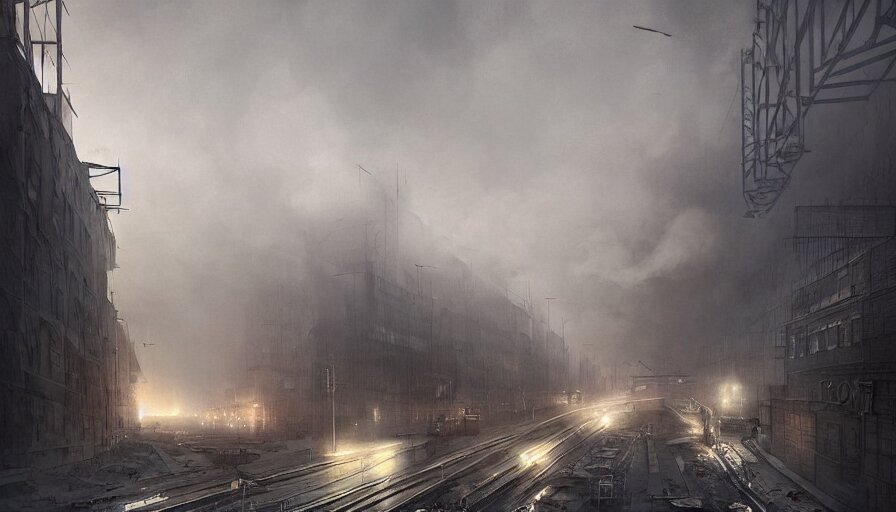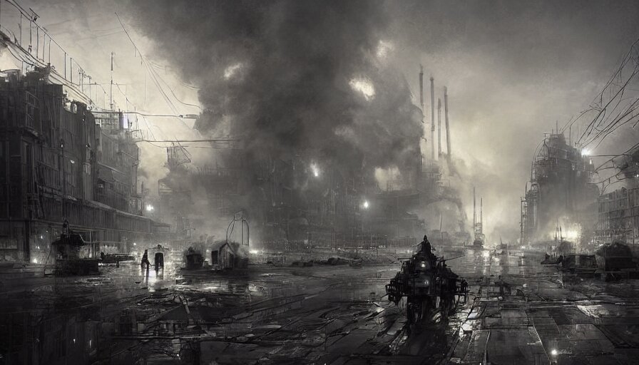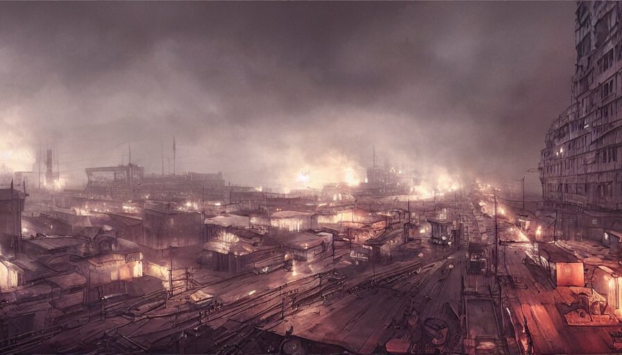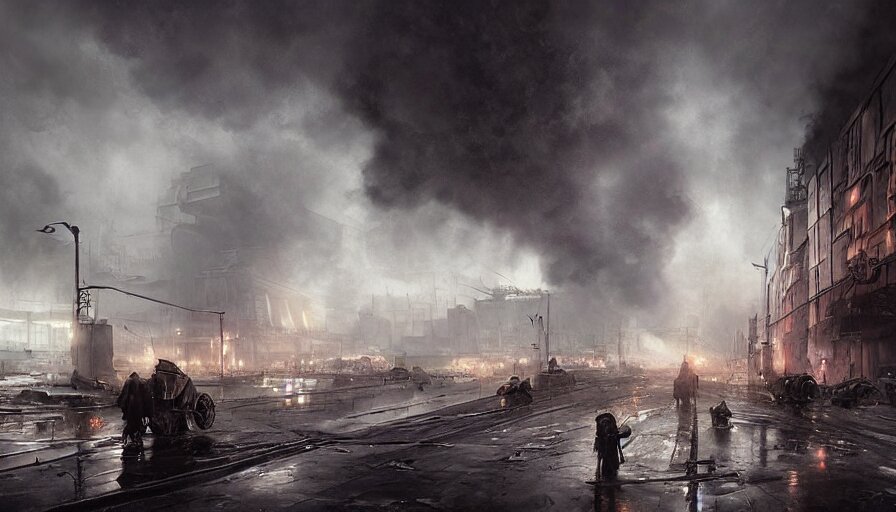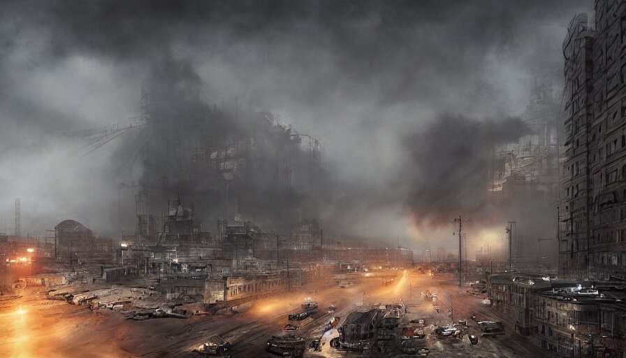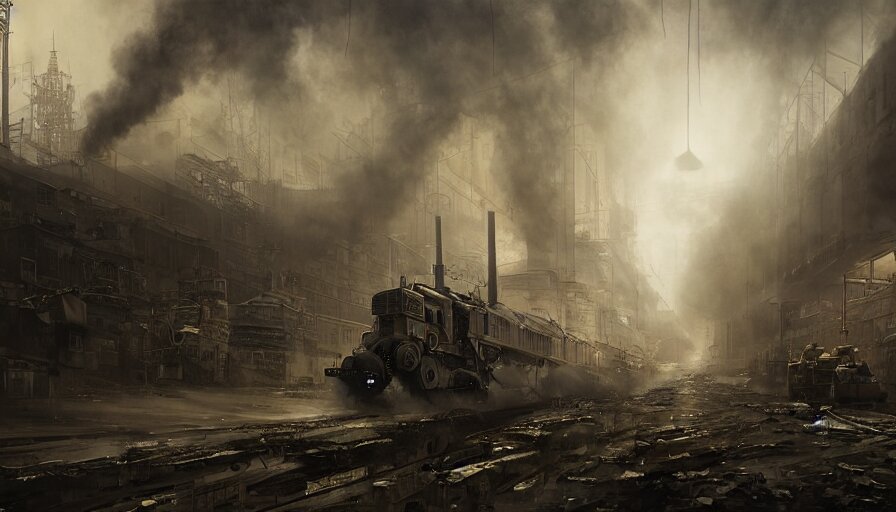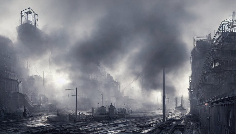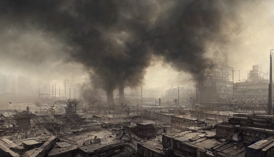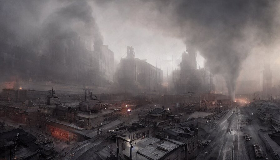Dieselpunk norilsk city, kirov reporting, steam, factory plants with dark smoke in the background, epic composition, intricate, elegant, volumetric lighting, digital painting, highly detailed, artstation, sharp focus, illustration, concept art, ruan jia, steve mccurry