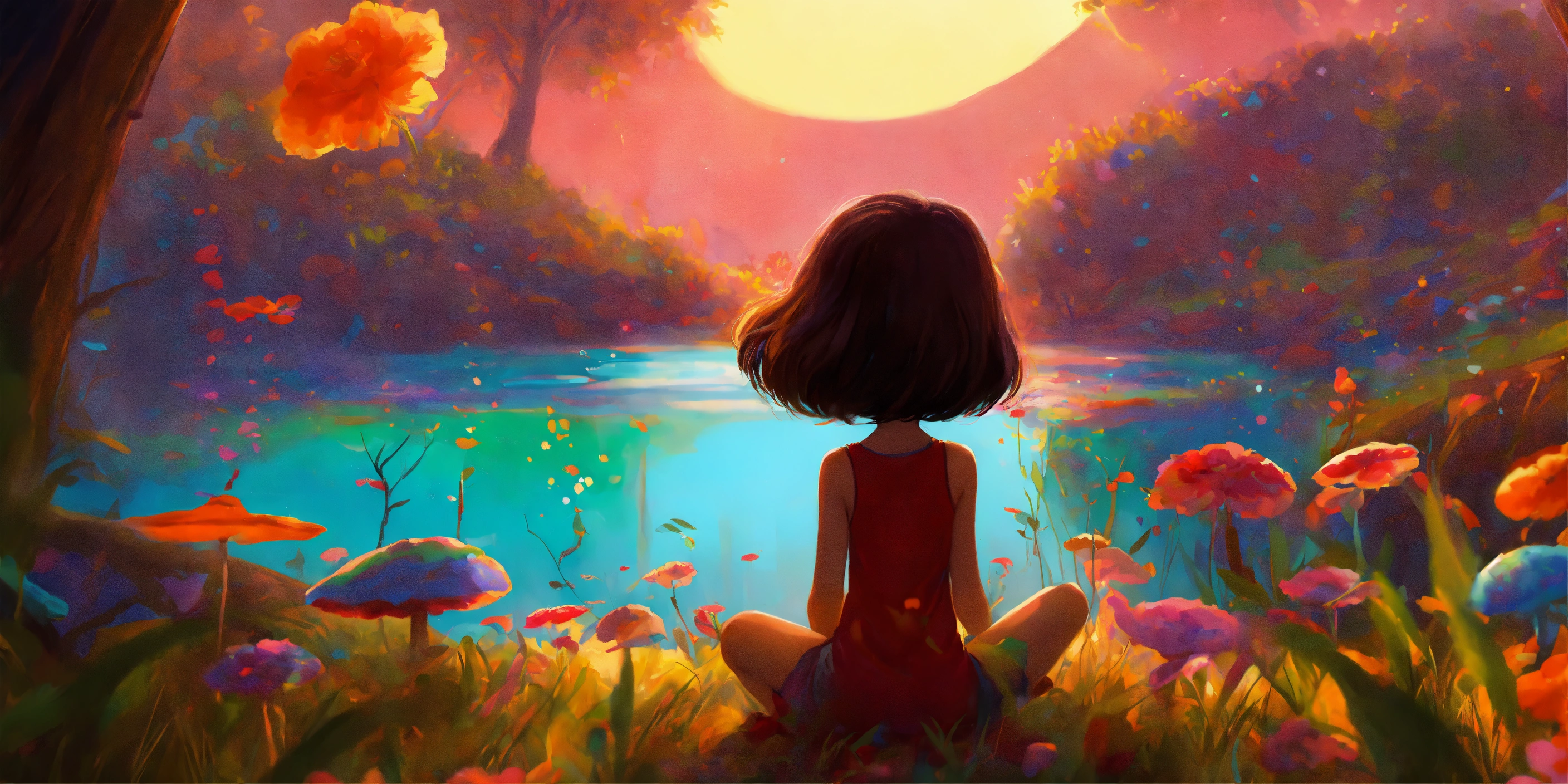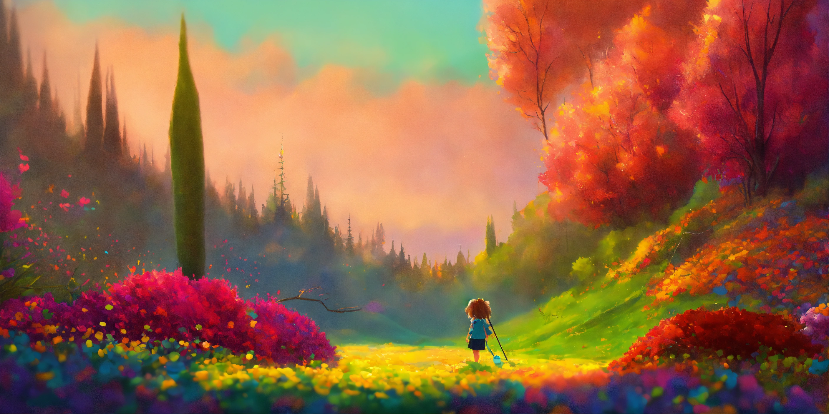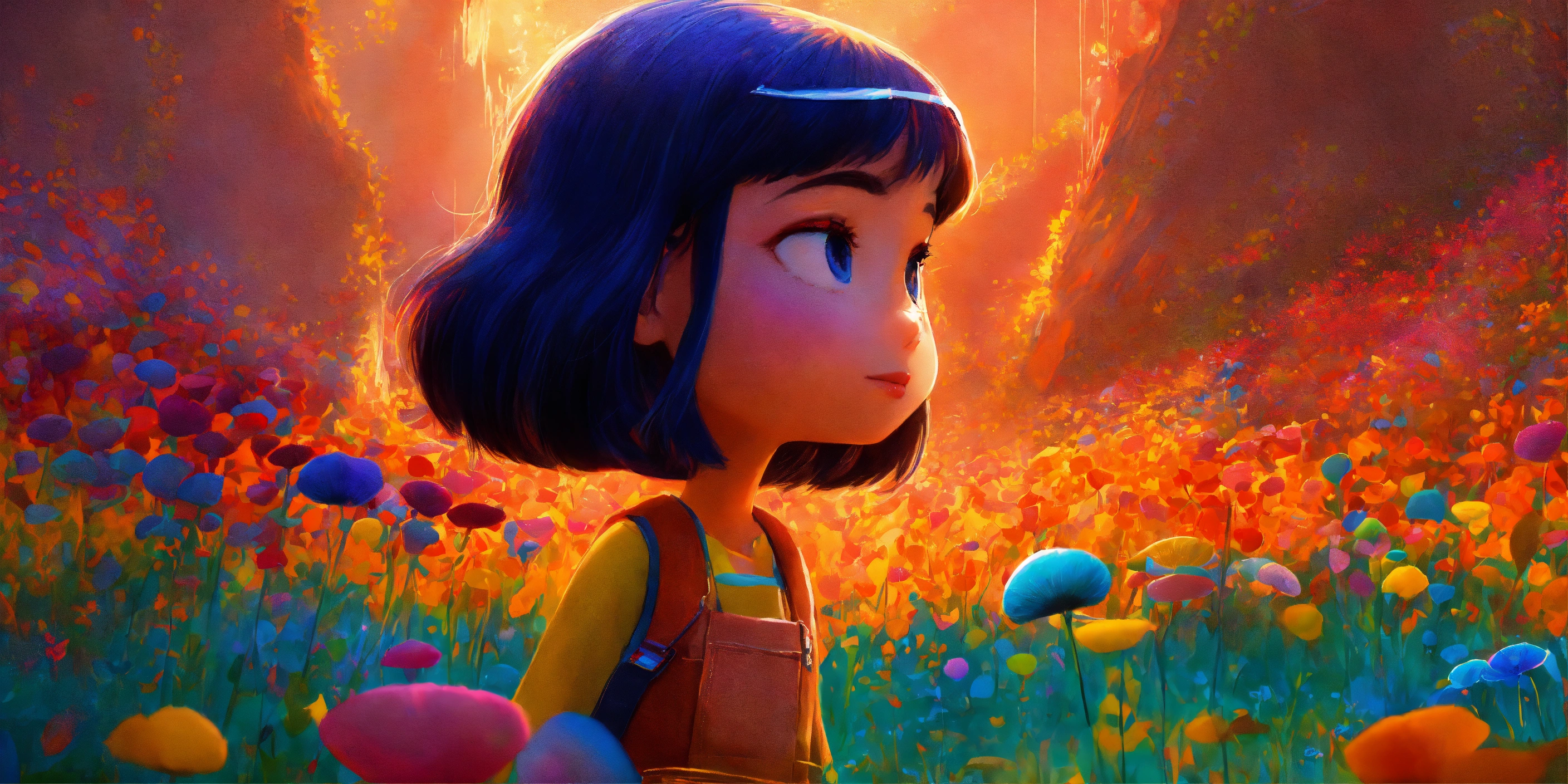 Every day, mia would immerse herself in her canvases, creating beautiful and mysterious worlds with her brushes and colors. pixar look.