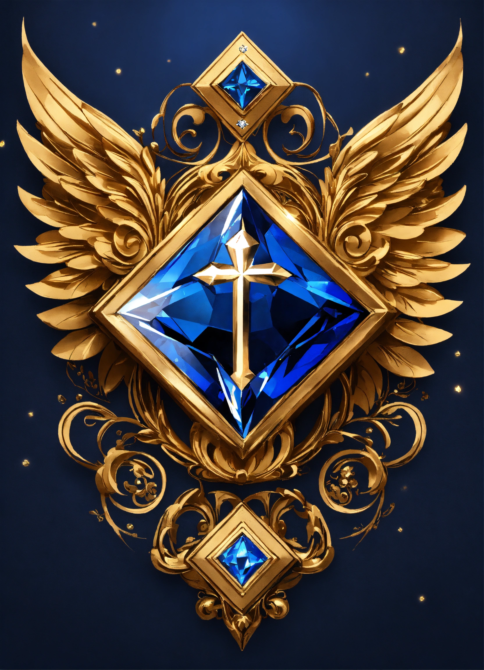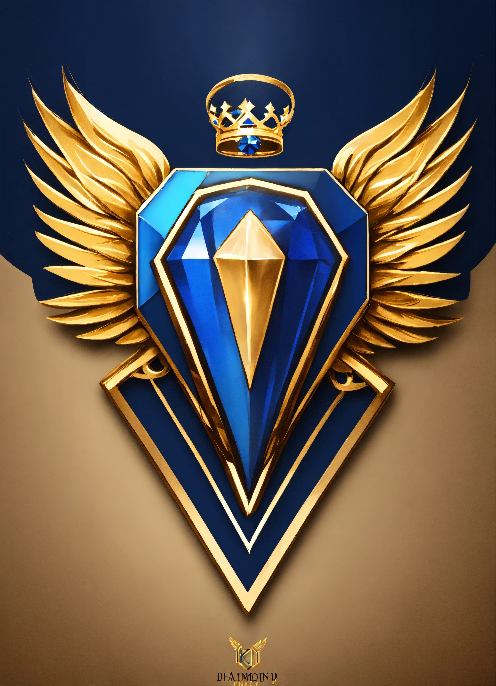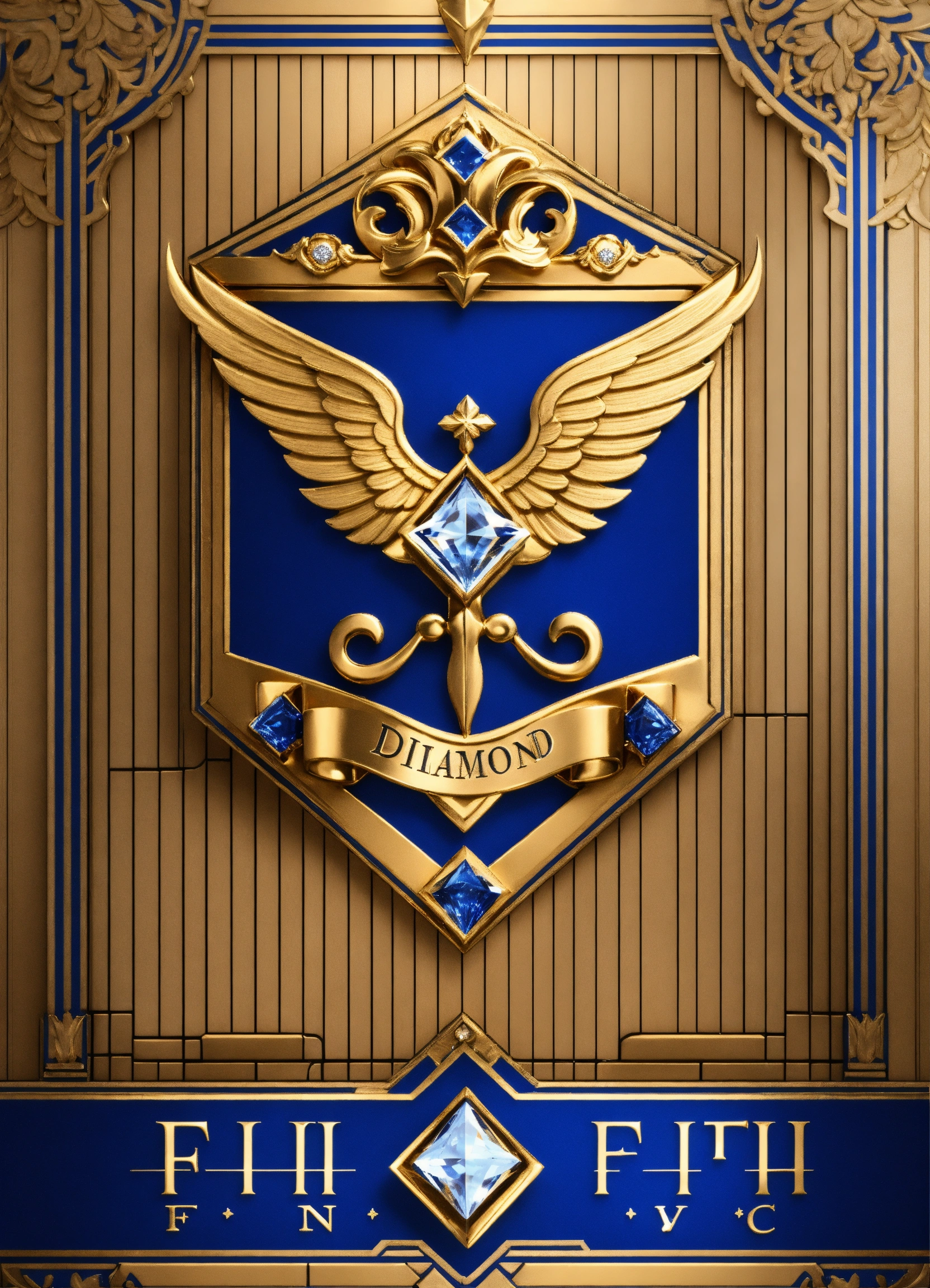 The main element of the logo is a diamond crown, wings with a pair of elegant, stylized wings on either side. sapphire blue and gold color scheme the text "diamond faith llc" is written neatly in bold font.