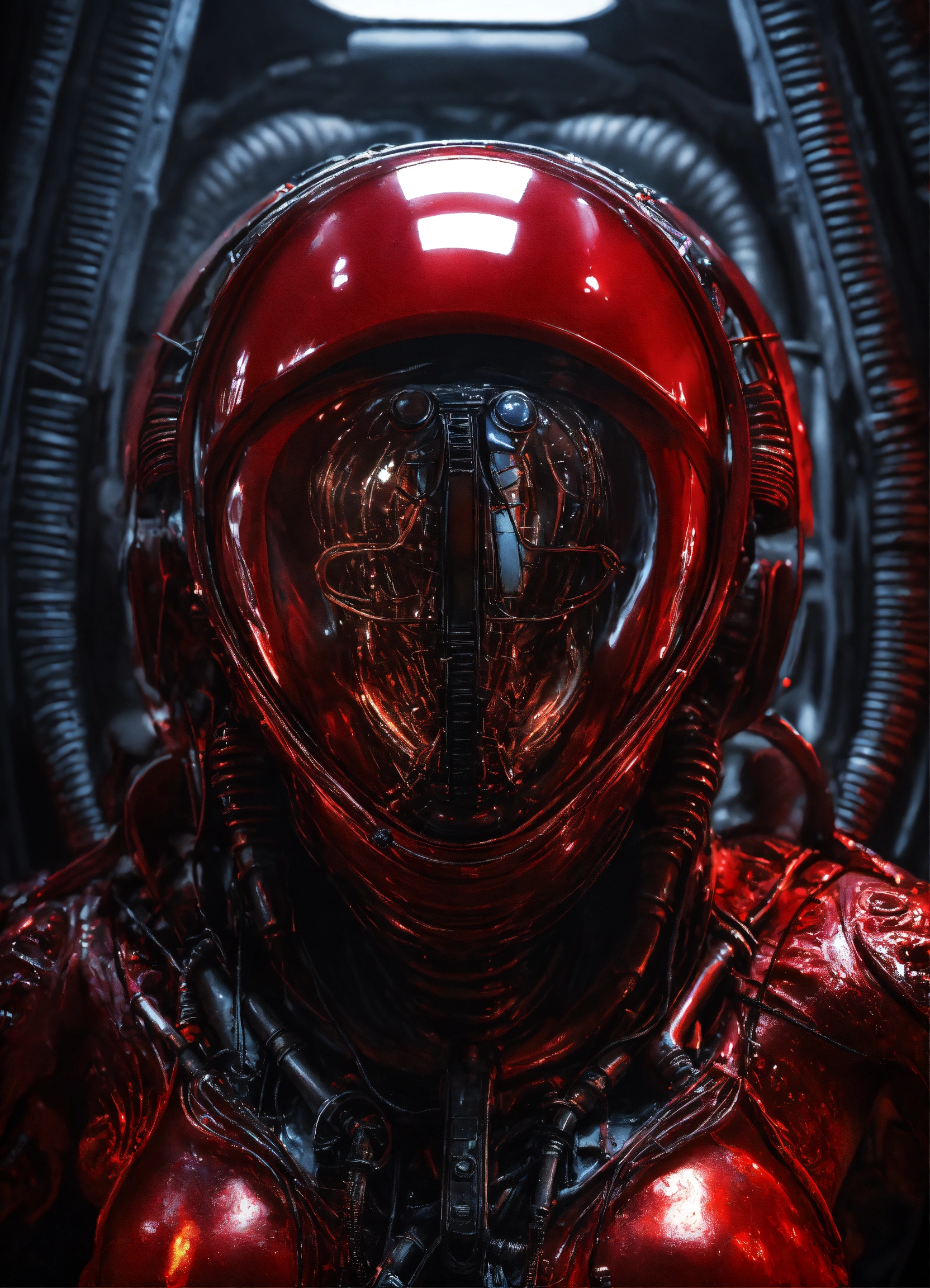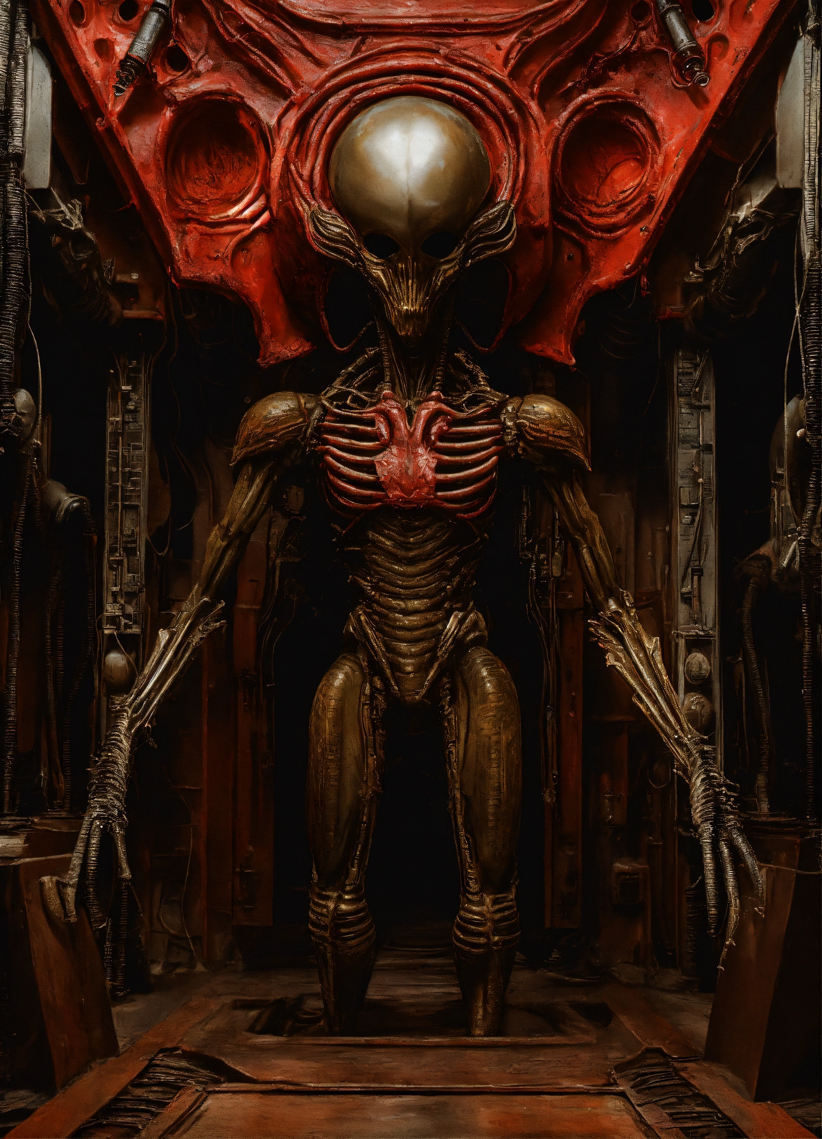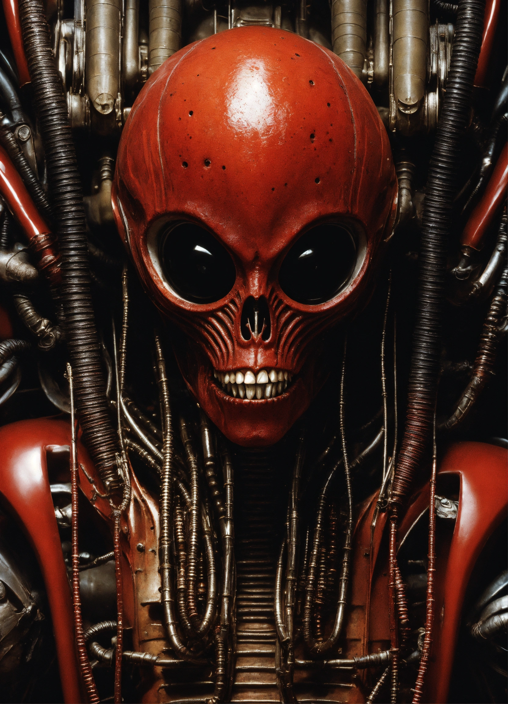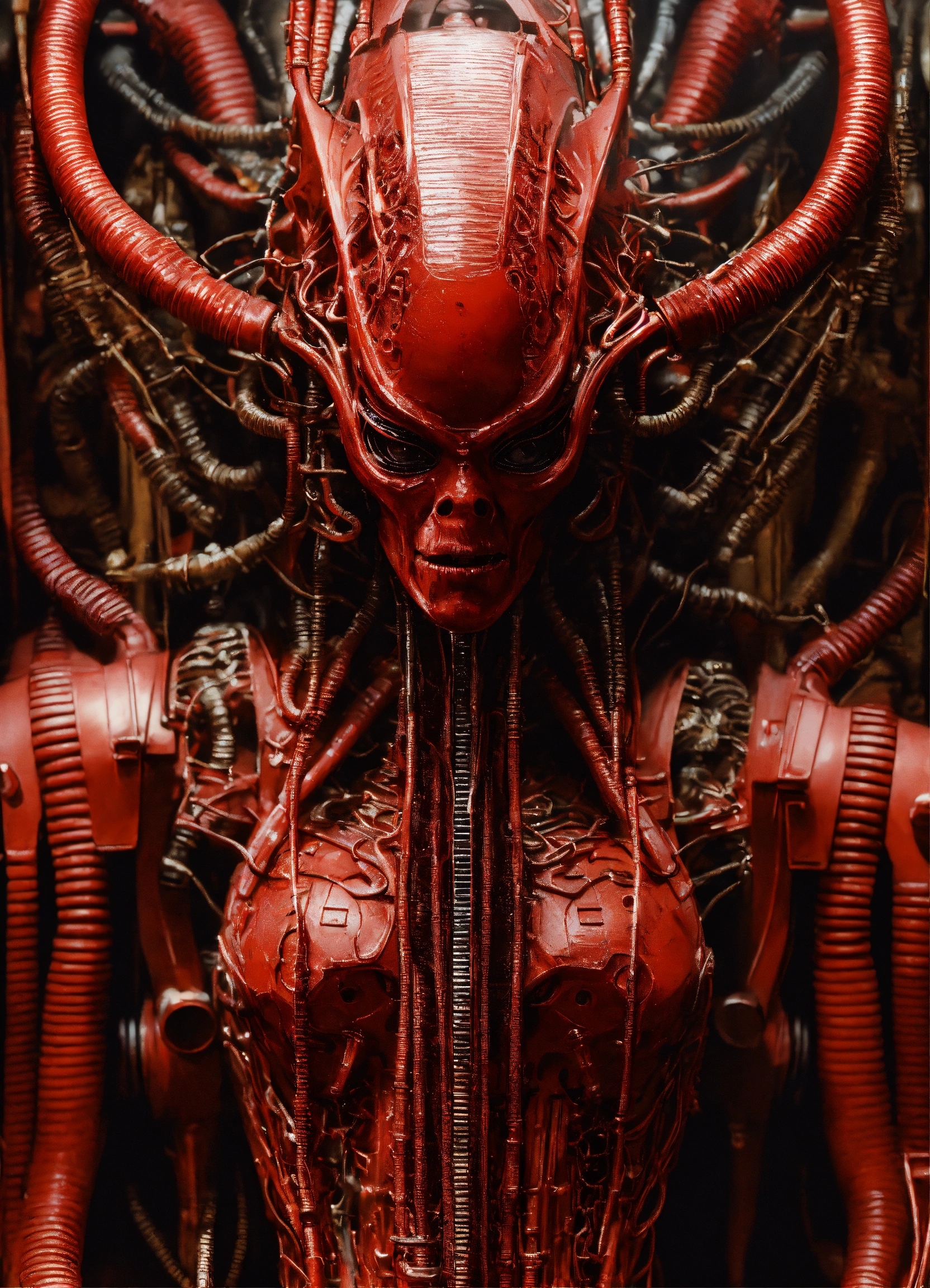 Ein alien im weltraum nach hr giger mit einer sehr langen zunge der hunger hat und rot sieht