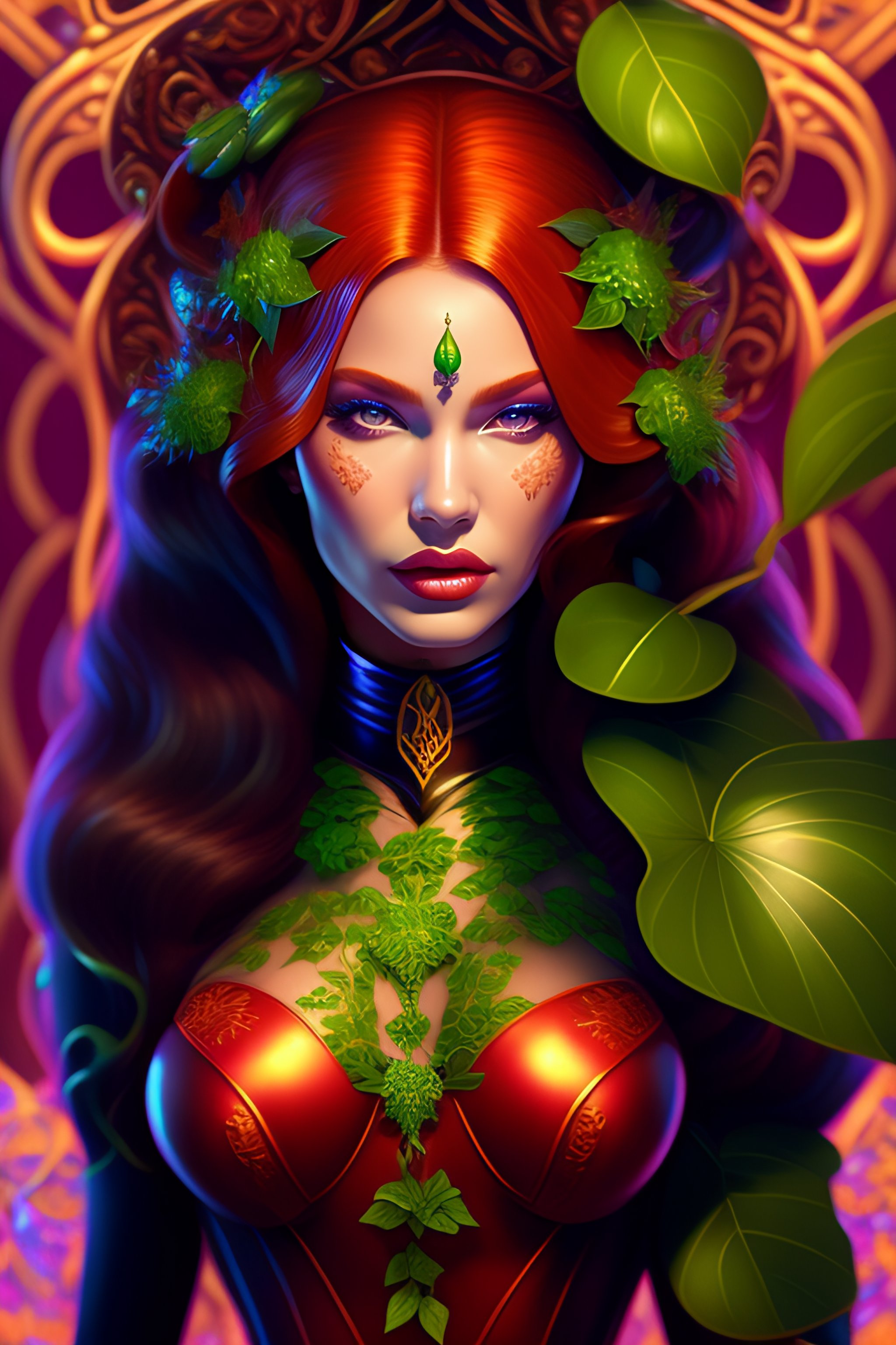 Poison ivy concept art portrait by casey weldon, olga kvasha, miho hirano, hyperdetailed intricately detailed gothic art trending on artstation triadic colors unreal engine 5 detailed matte painting, deep color, fantastical, intricate detail, splash screen, complementary colors, fantasy concept art, 8k resolution, gothic deviantart masterpiece