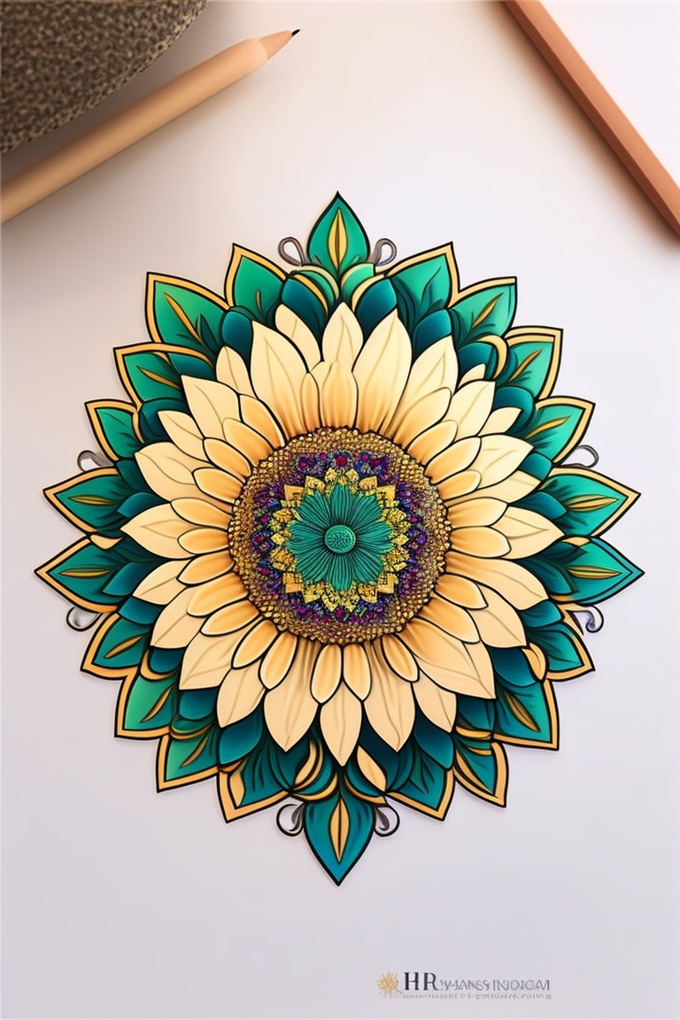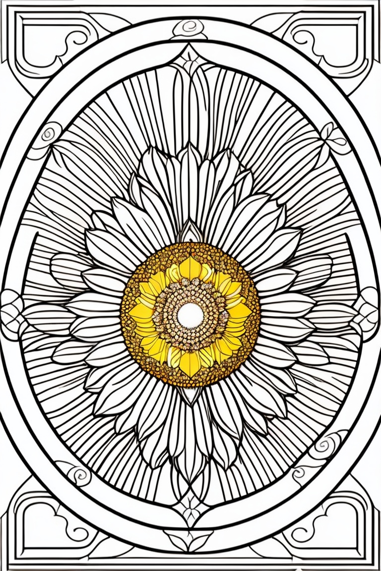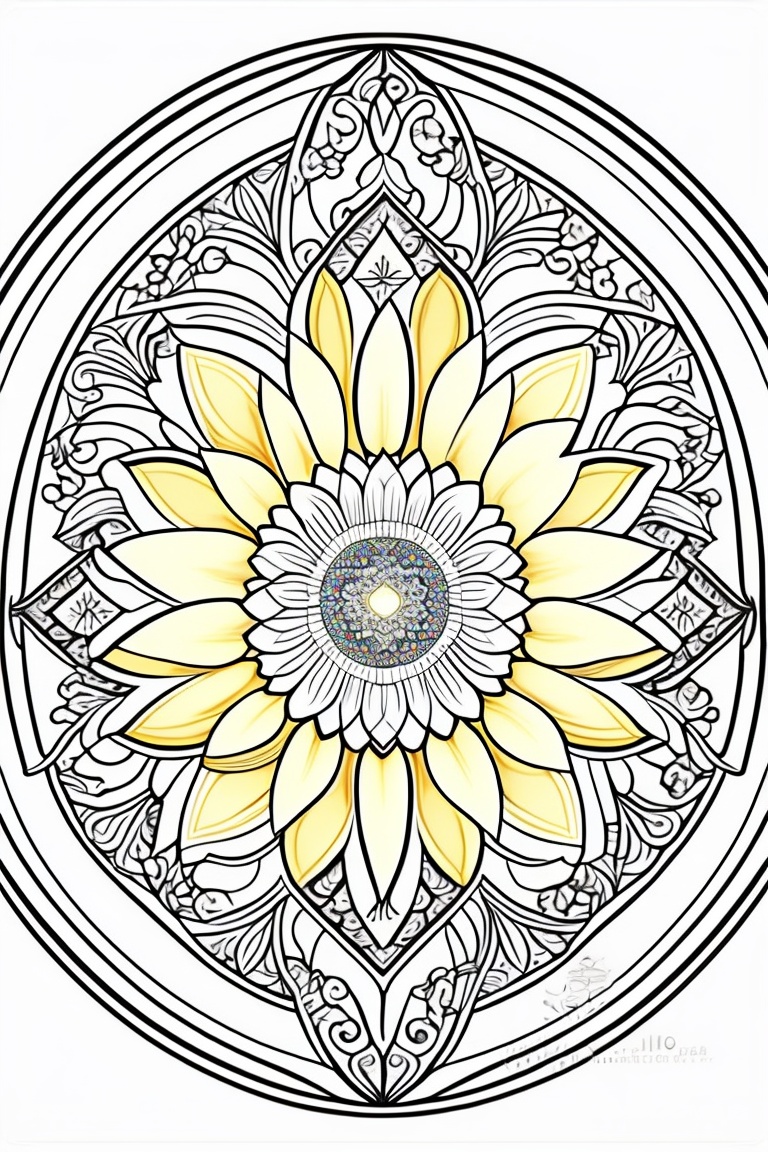 Coloring page for adults, mandala, sunflower, white background, clean line art, fine line art--hd--ar 2:3
