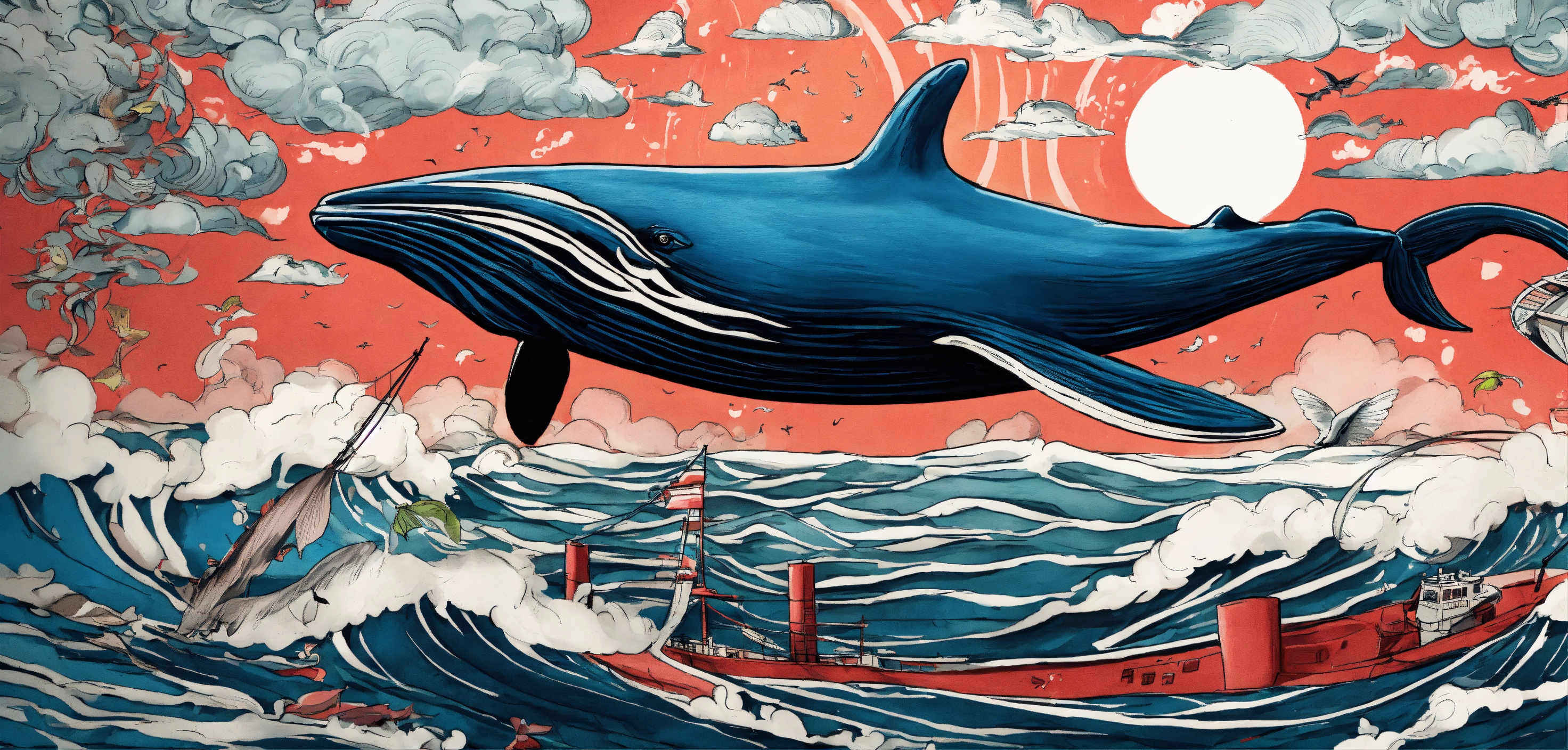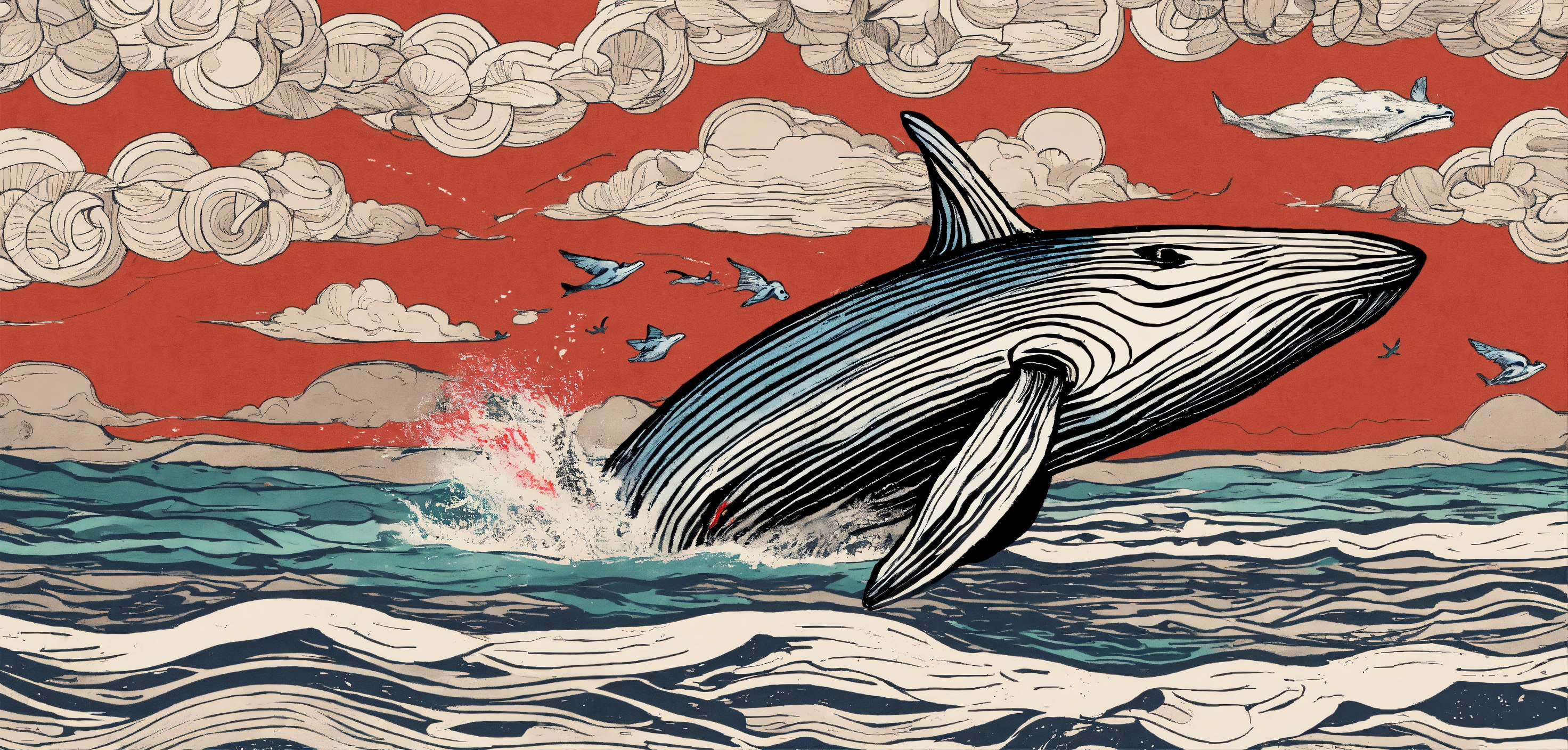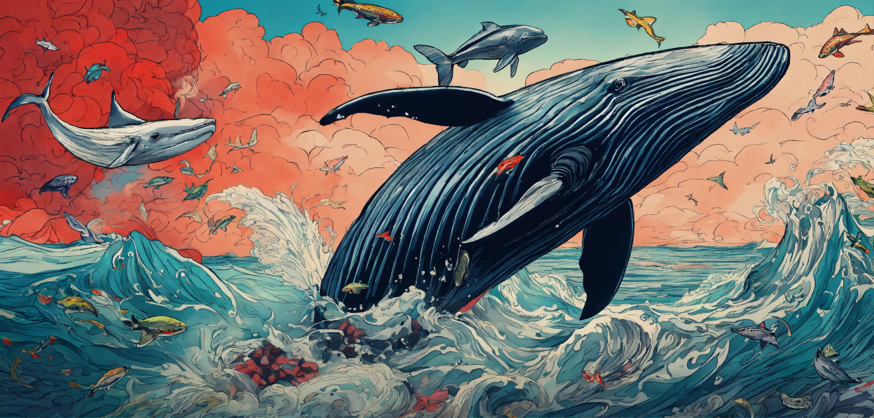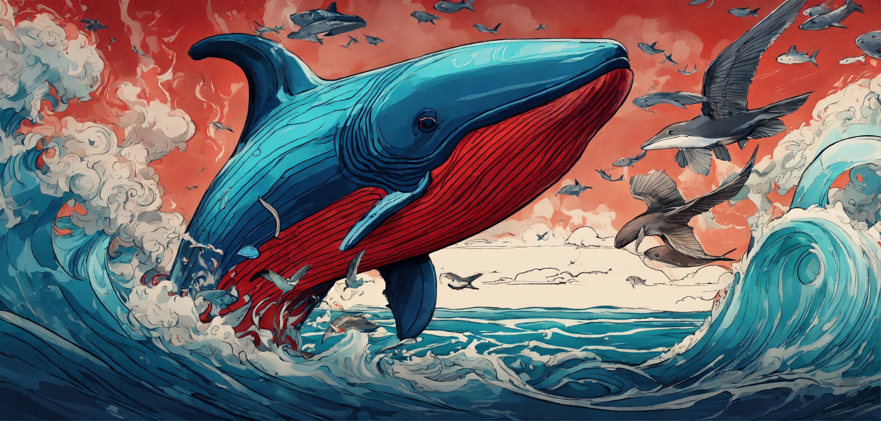 High details, bits of color, bet casino chips, hand drawn, red, gritty, realistic sketch, rough sketch, mix of bold dark lines and loose lines, bold lines, on paper, waves and clouds, whale, flying fishes with bird wings, leafs
