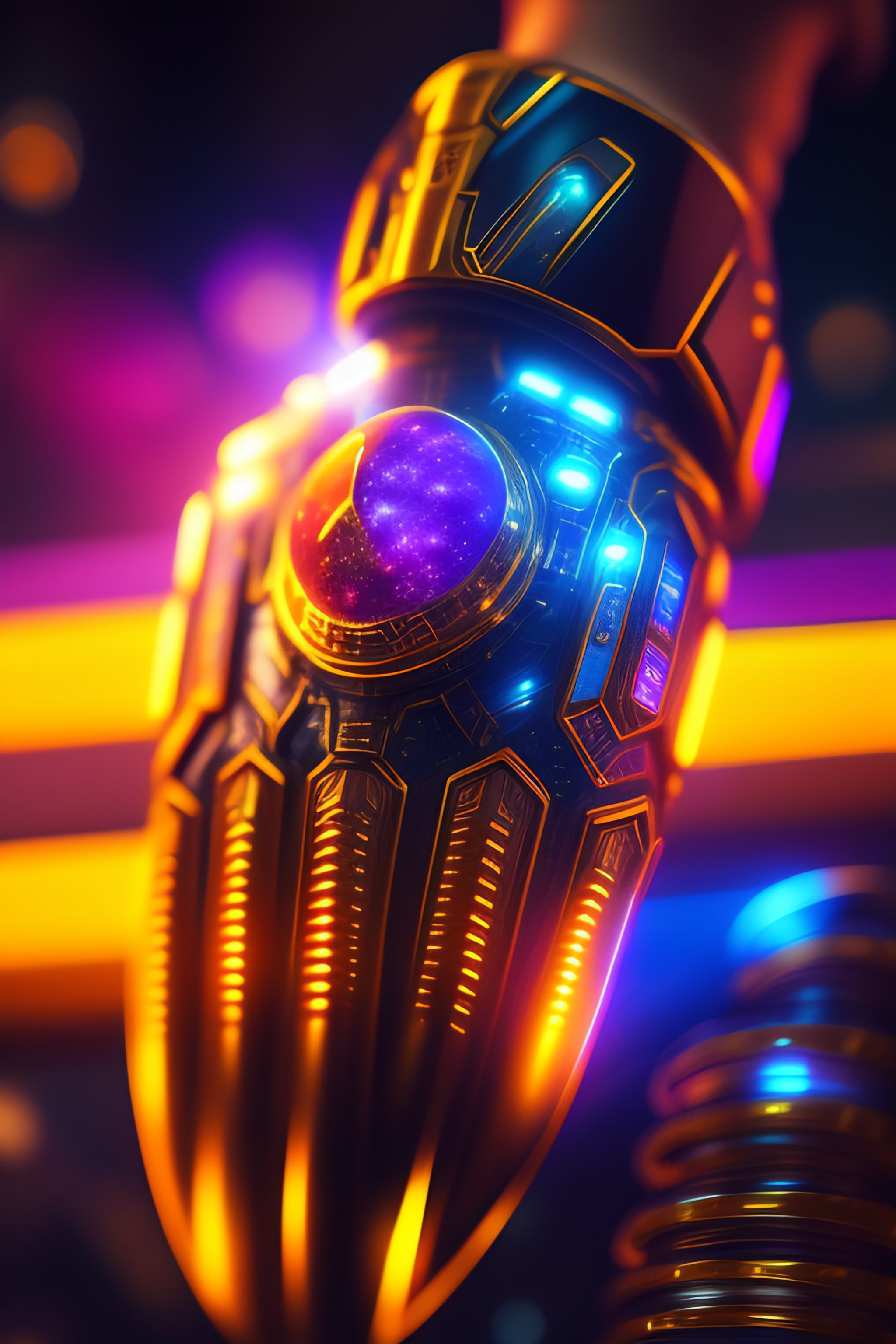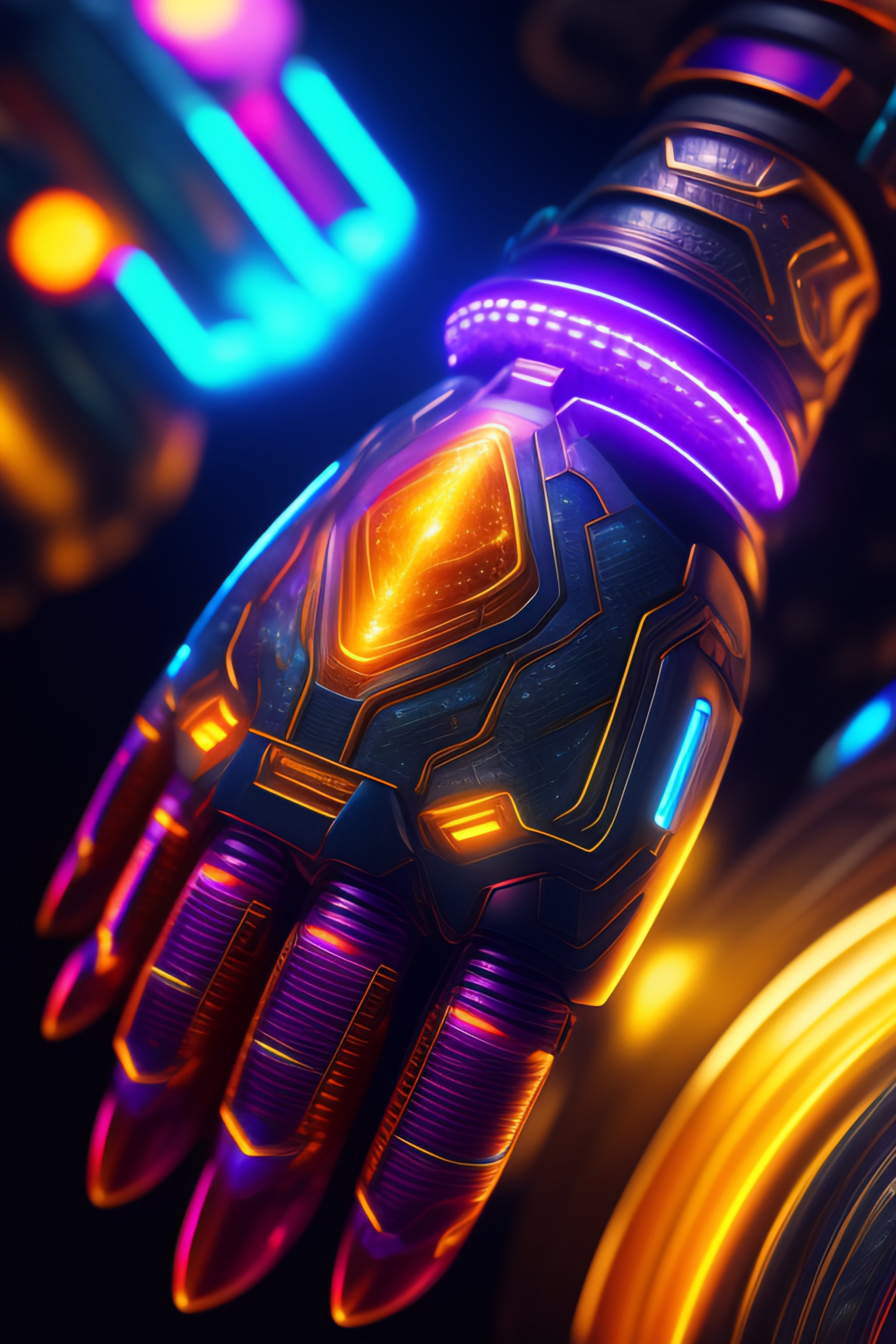 Ultradetailed illustration of a mechanic gauntlet with magic cosmic nebula in the palm, neon cyberpunk setting, cyberpunk 2 0 7 7, highly detailed, iron man gauntlet, concept art by jama jurabaev