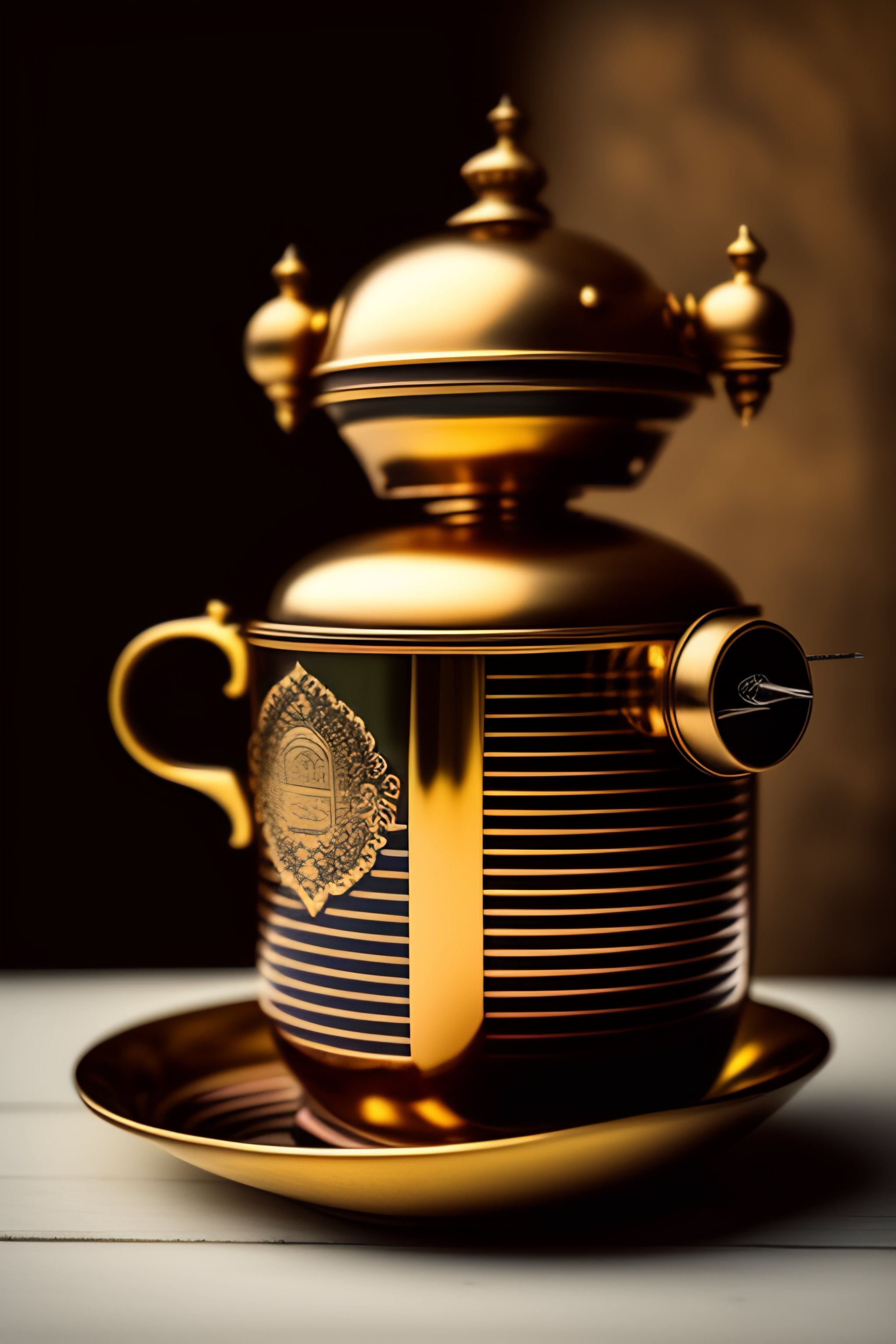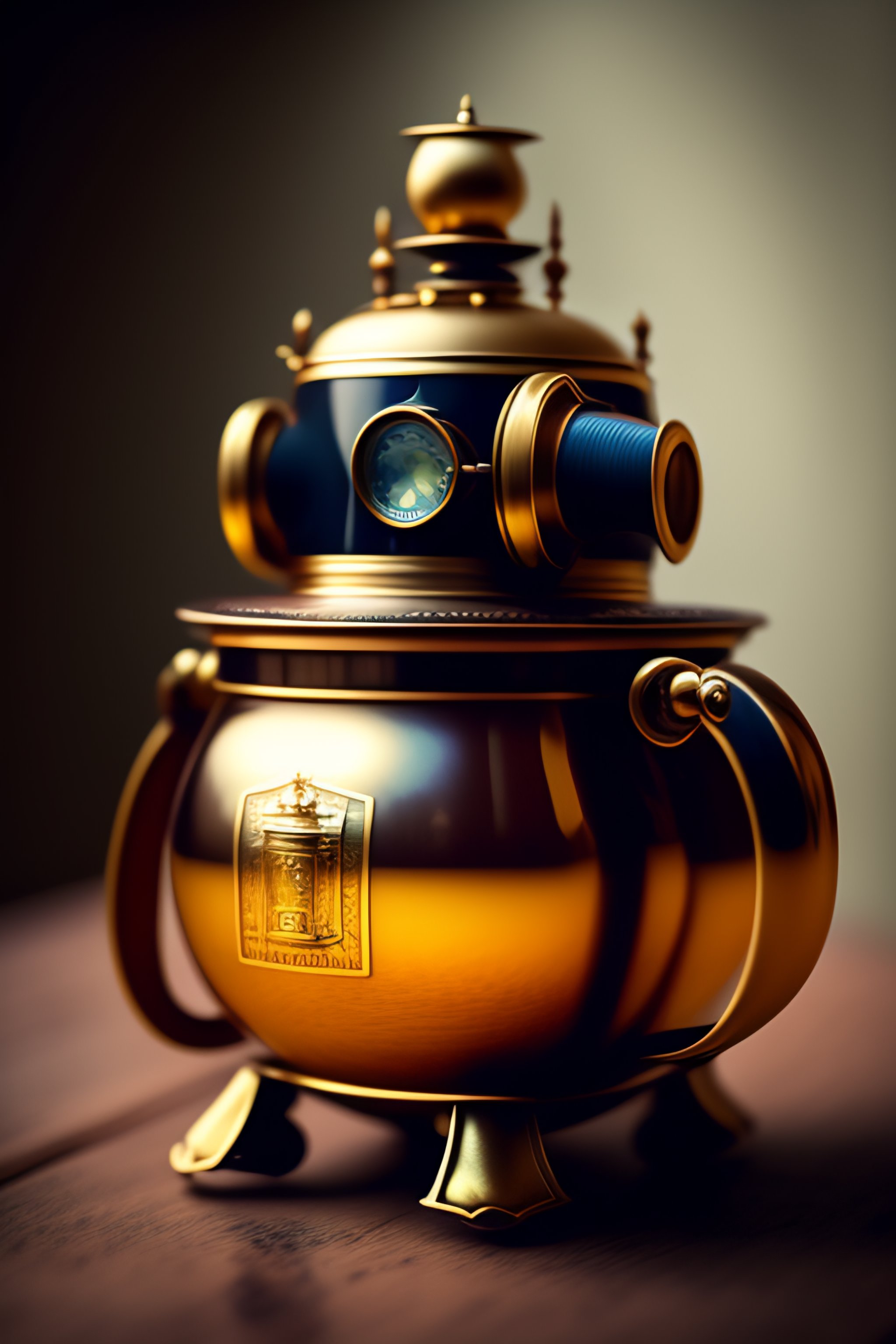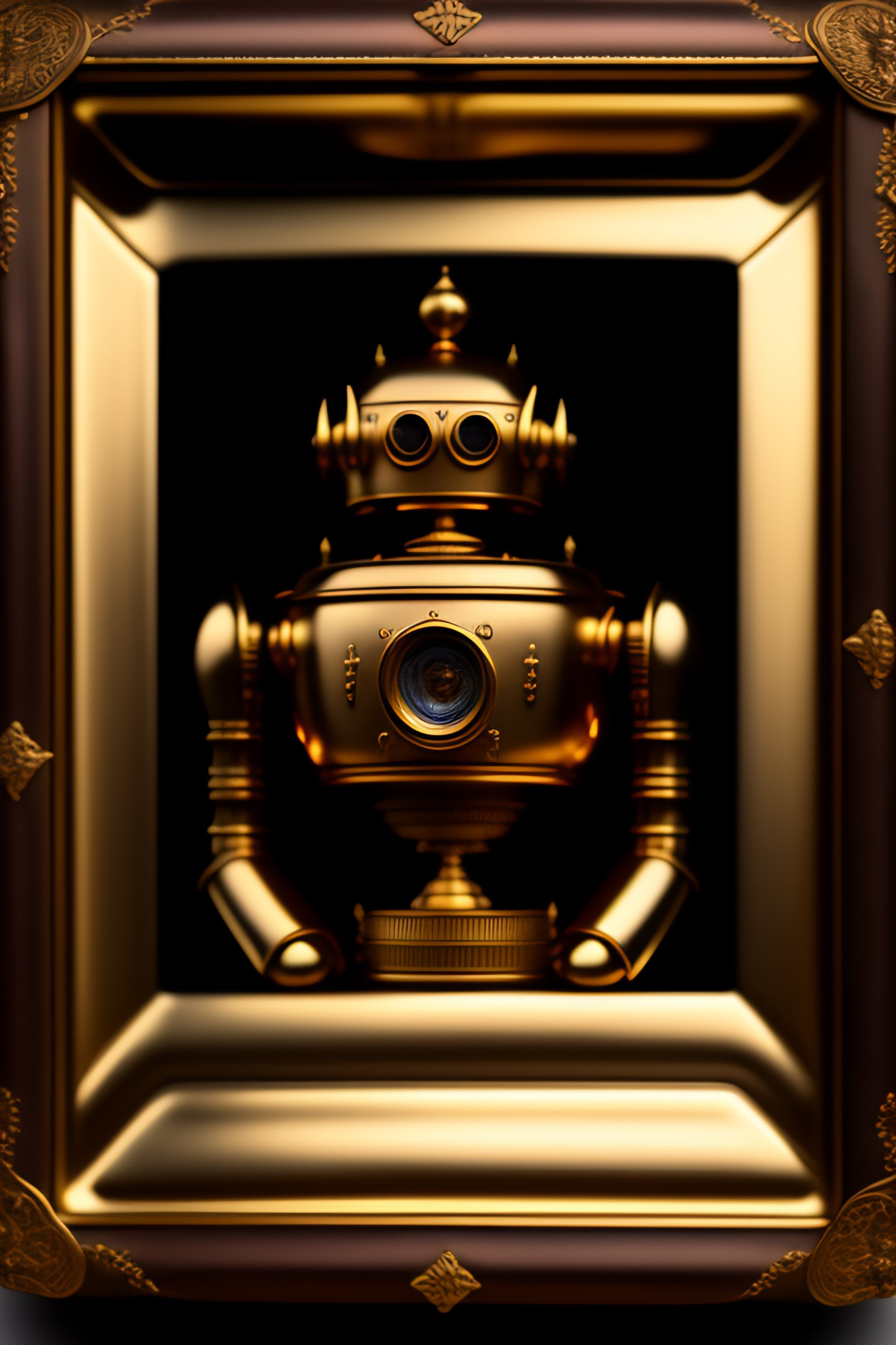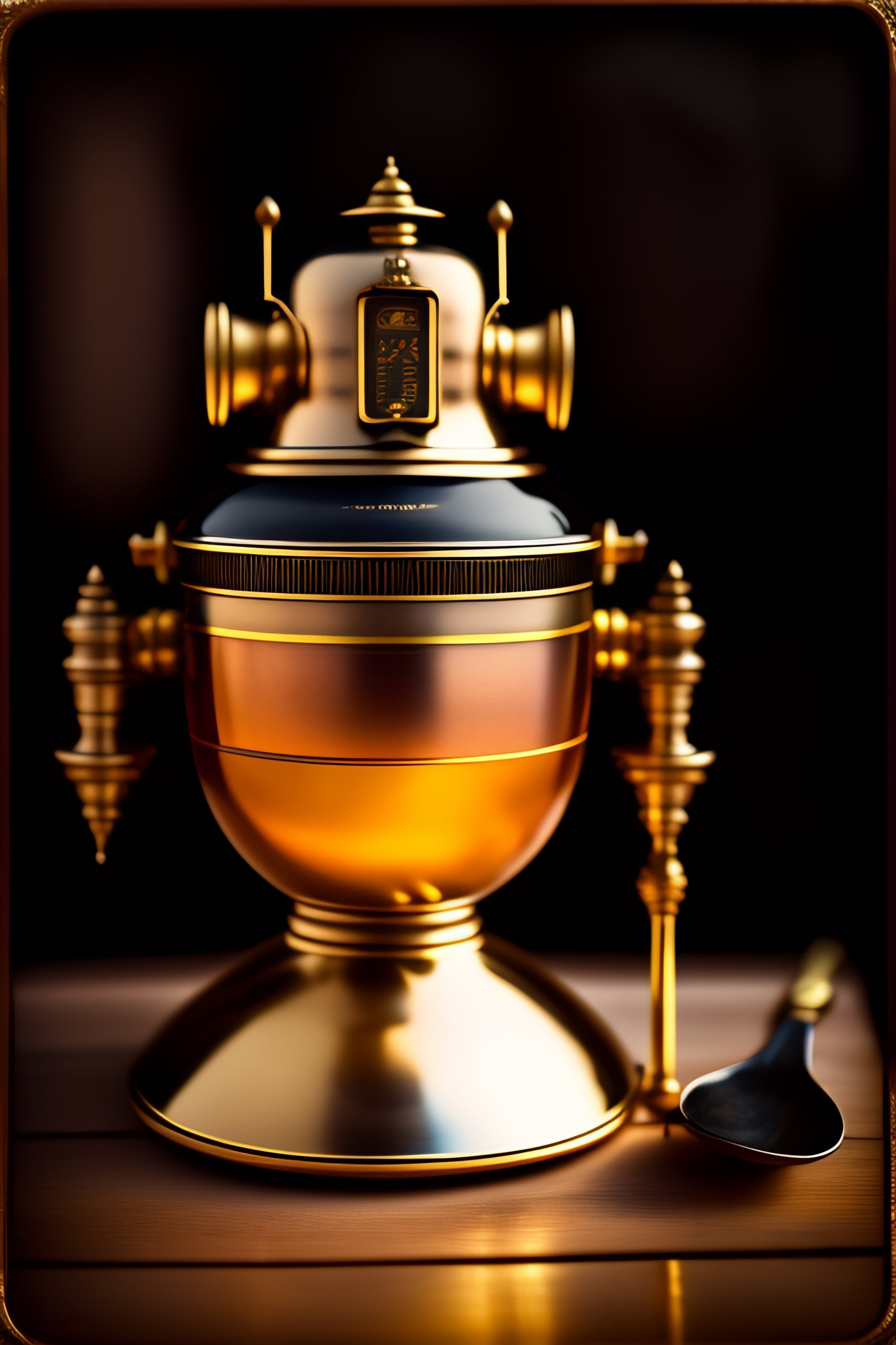 Daguerreotype portrait of a vintage robot drinking tea