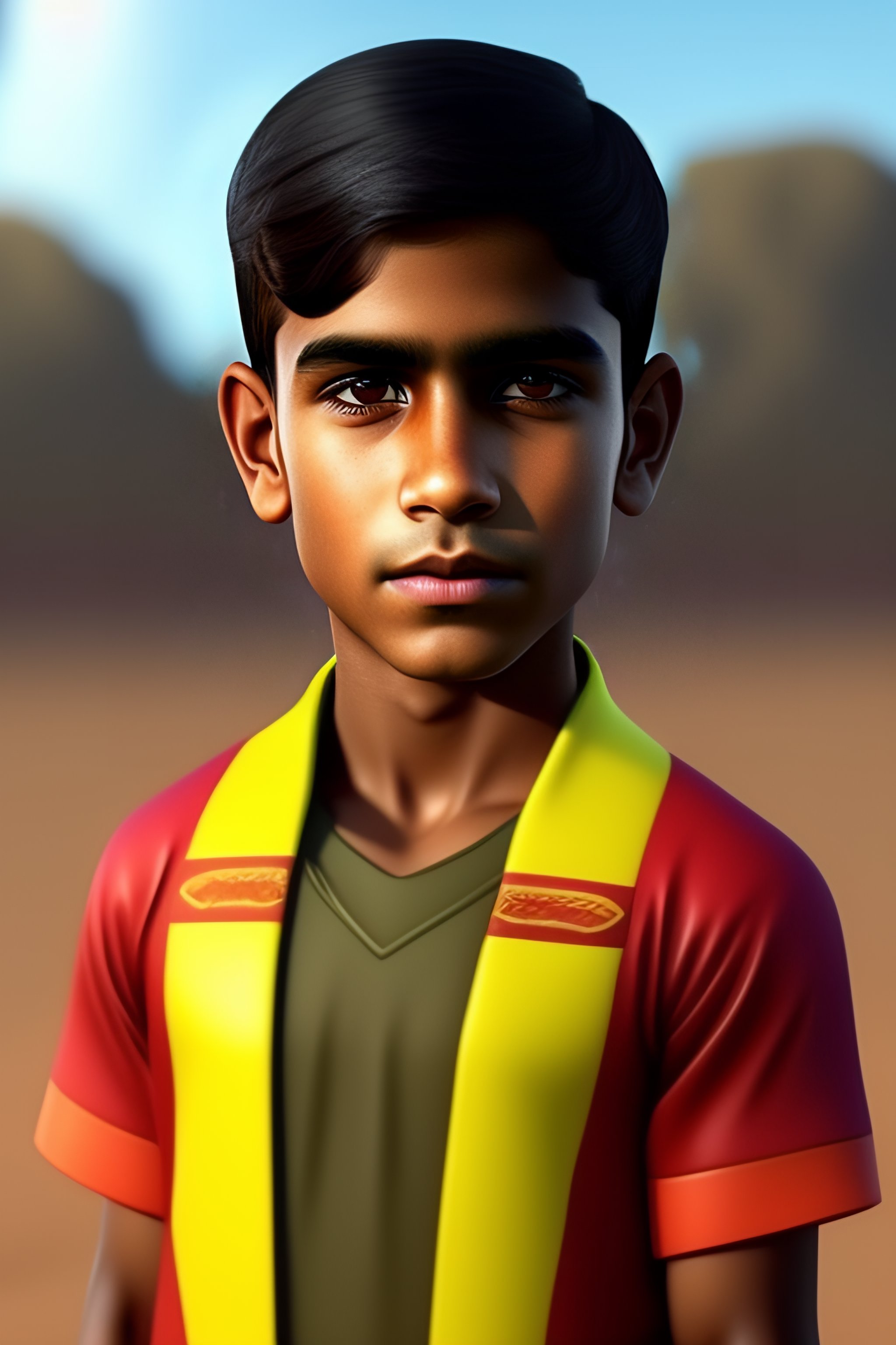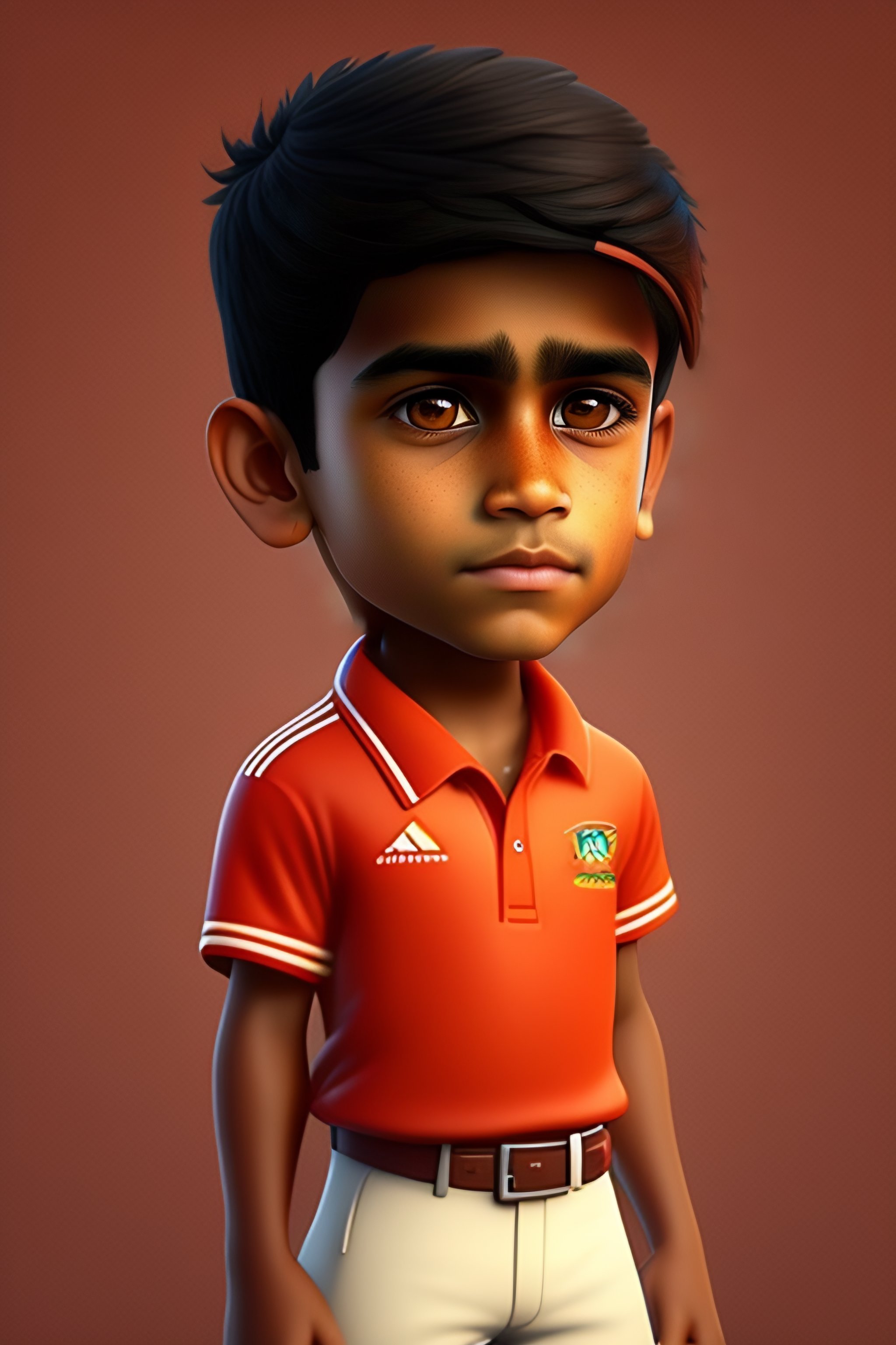 Create a australian indian boy as a cartoon character with wheatish skin colour