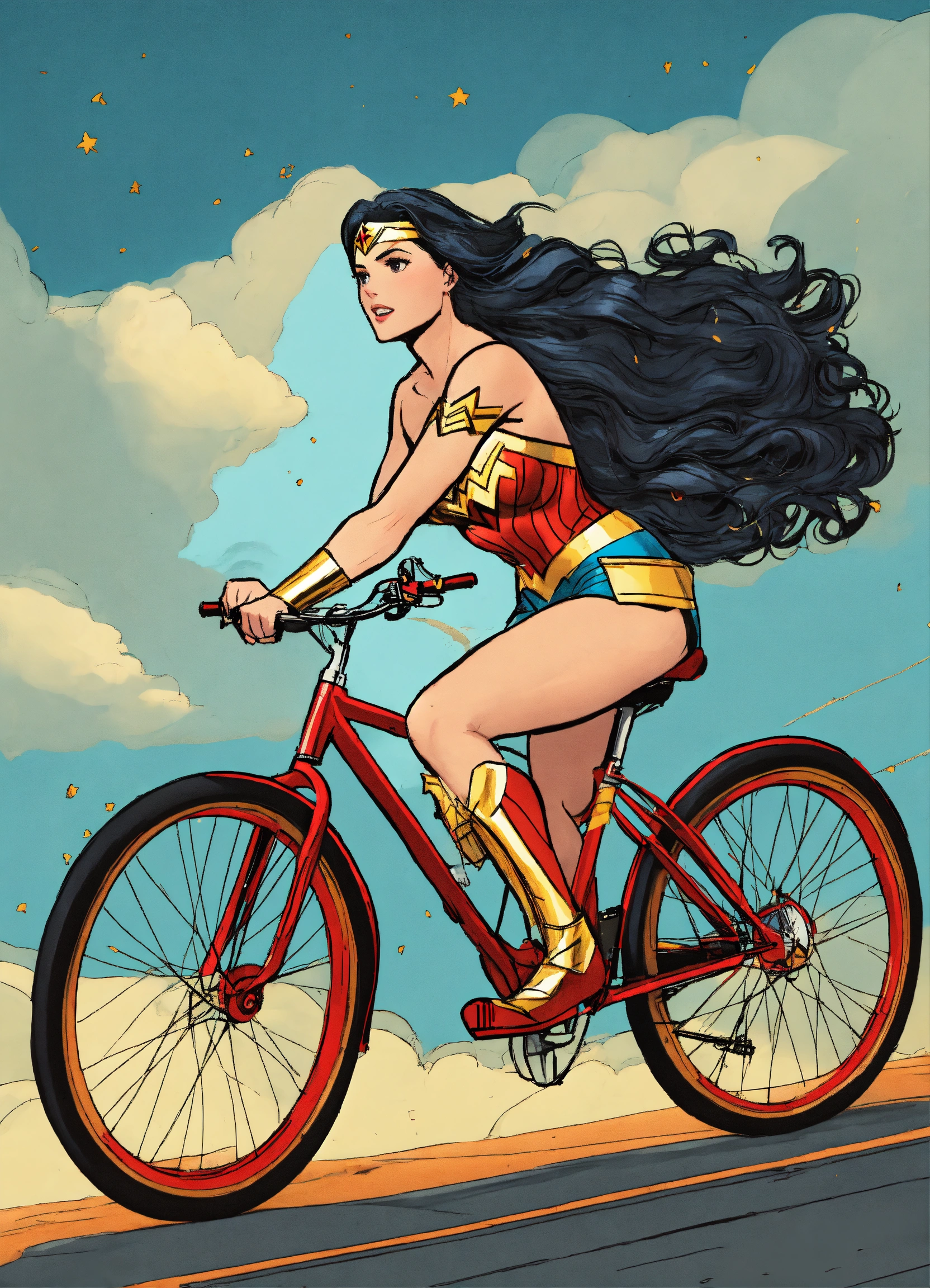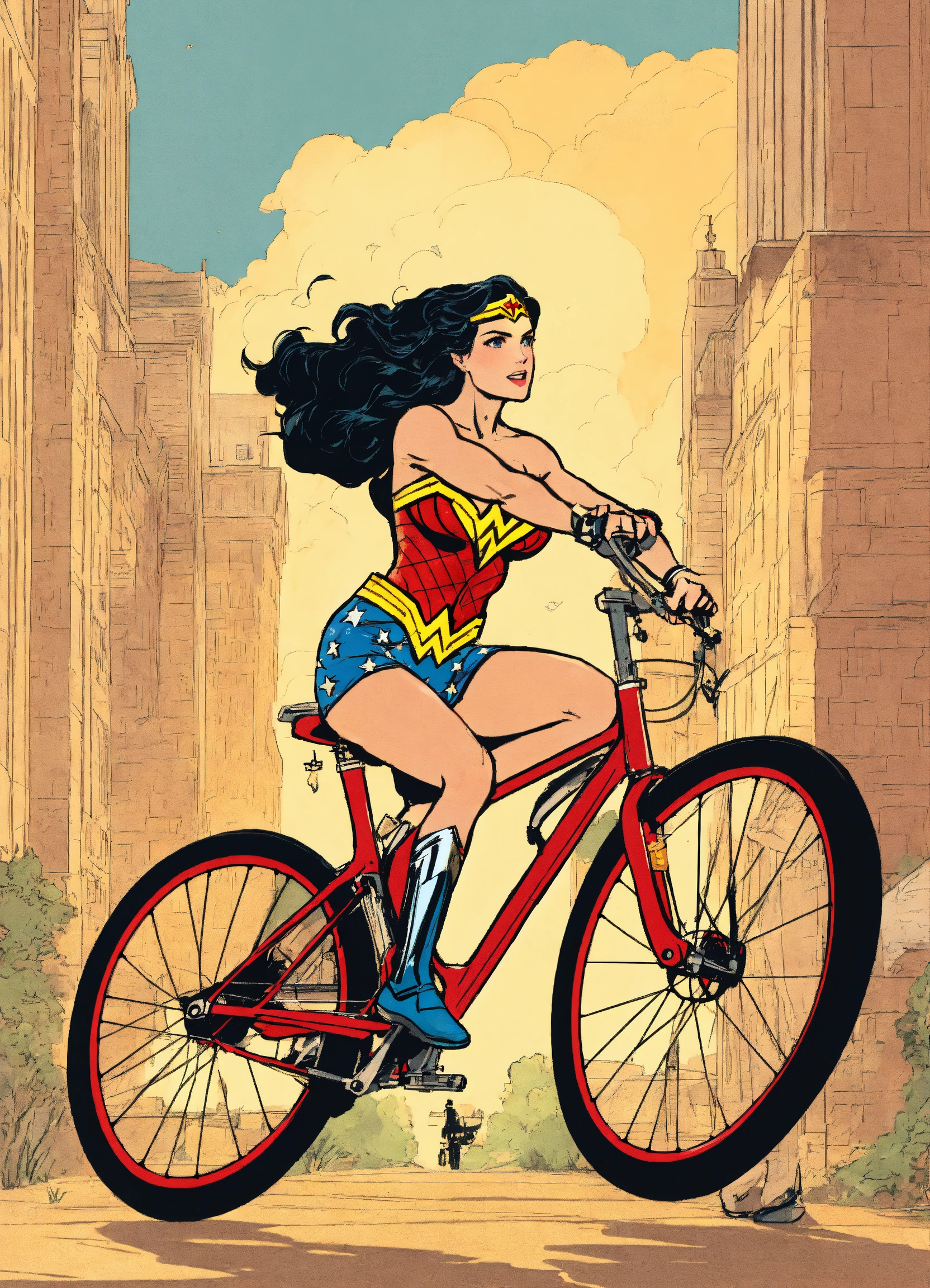 Wonder woman riding bicycle