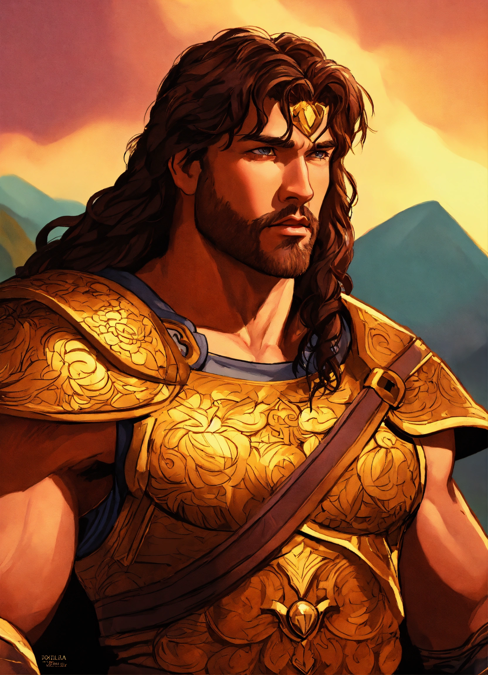 Hercules character from film xena and hercules, 2d illustration style, sharp focus, bright color, digital paint character design, trending on artstation, high details, simple lines, art by josé luis ágreda and camilla d'errico
