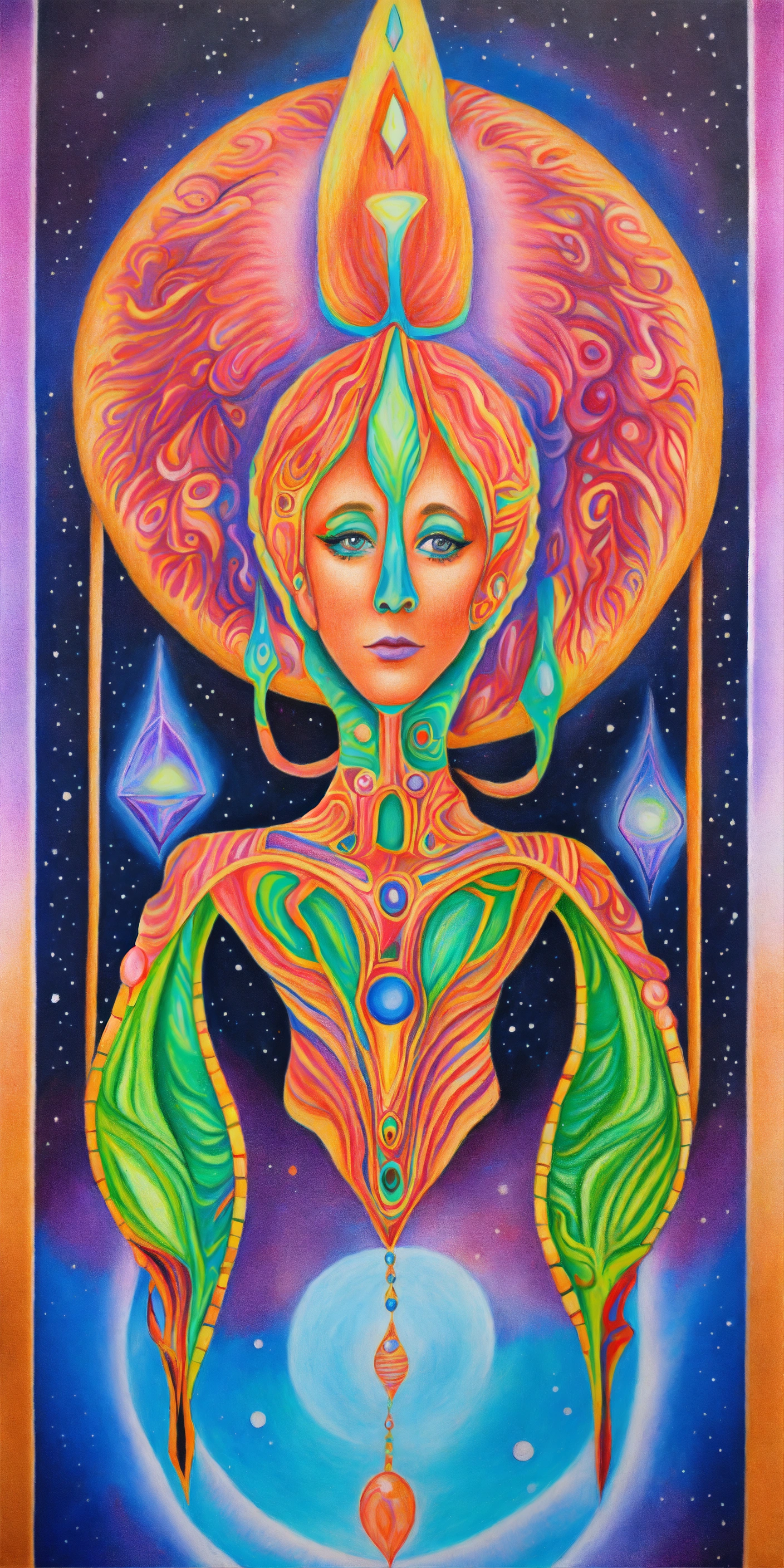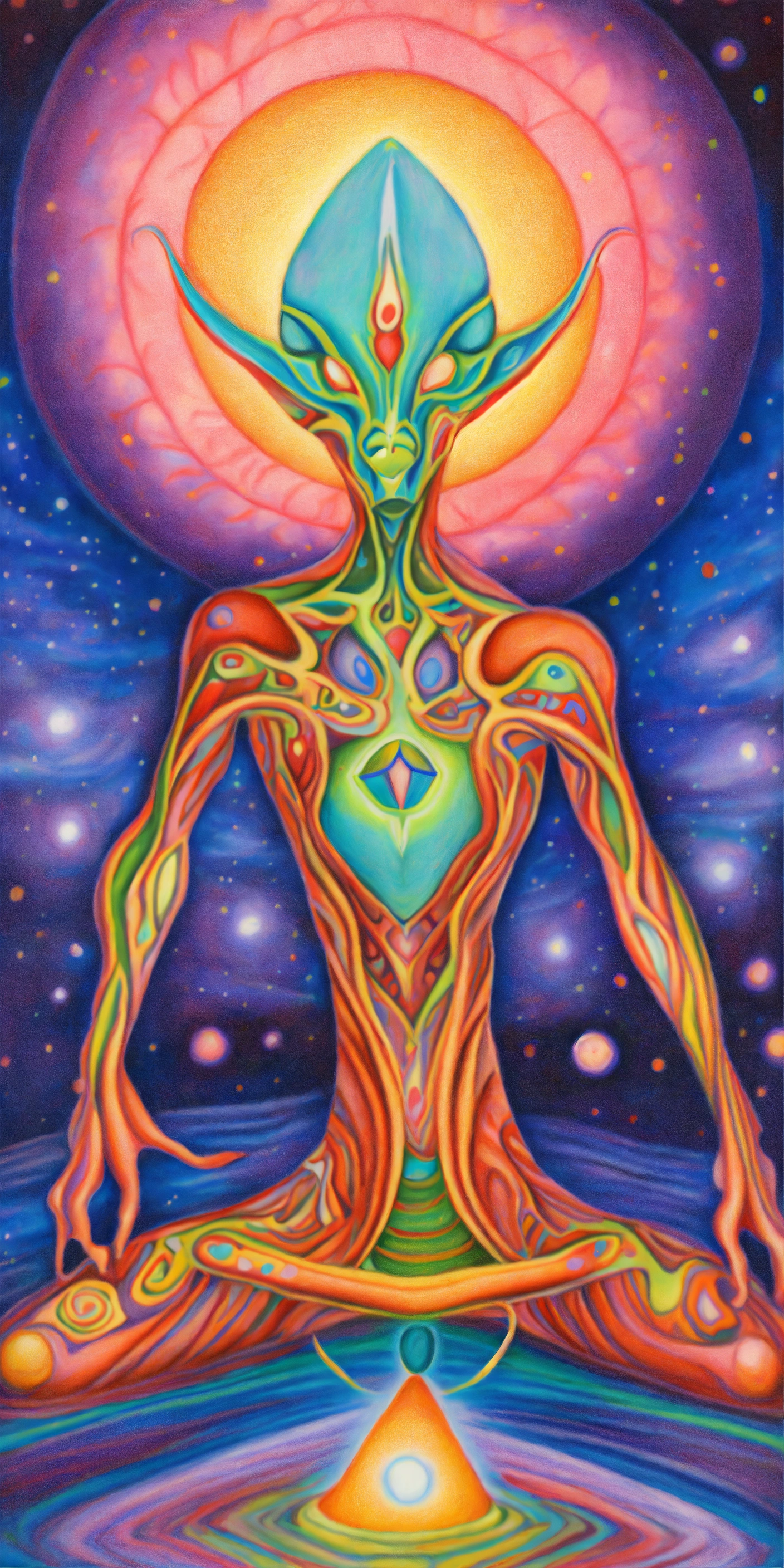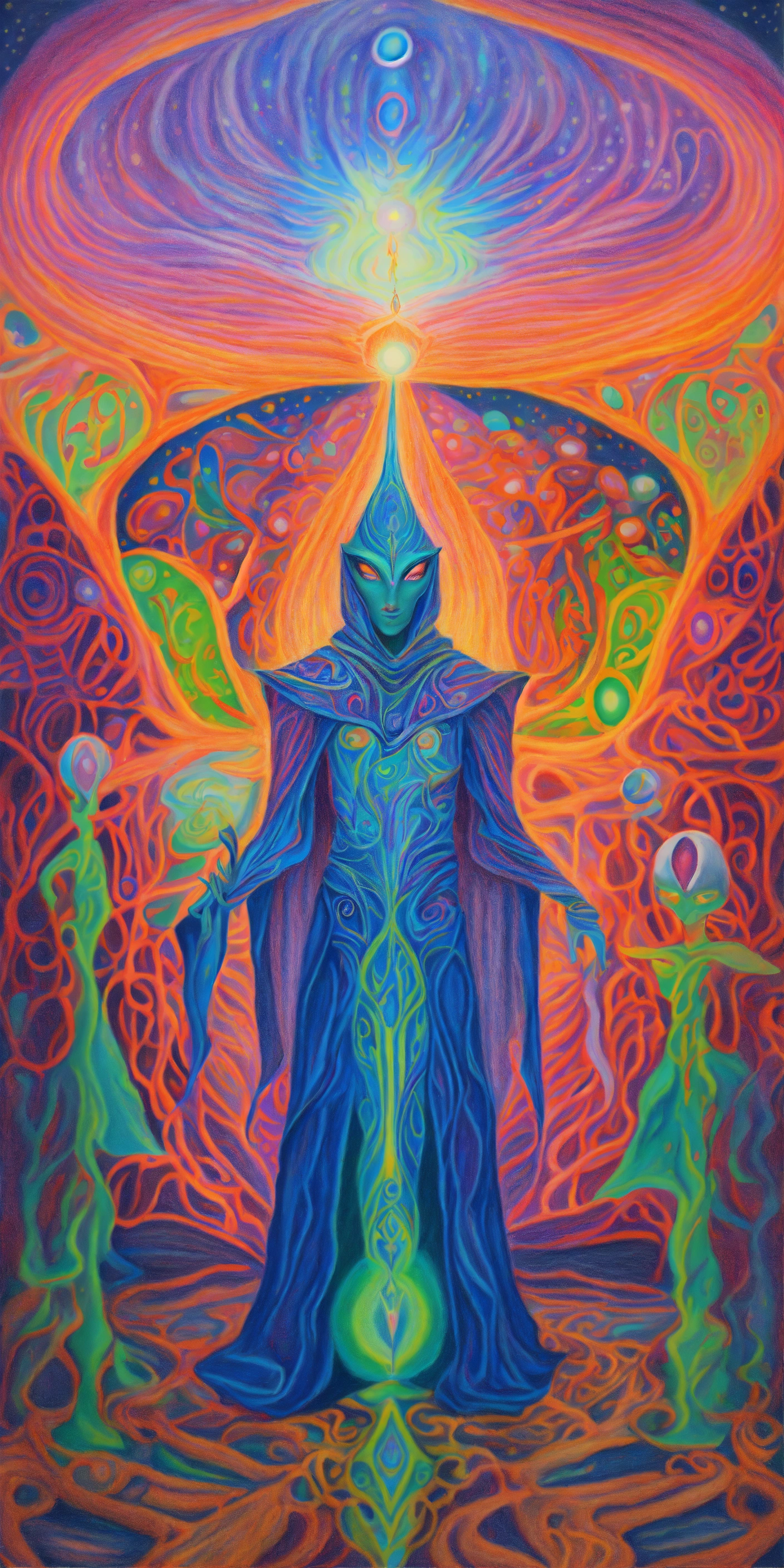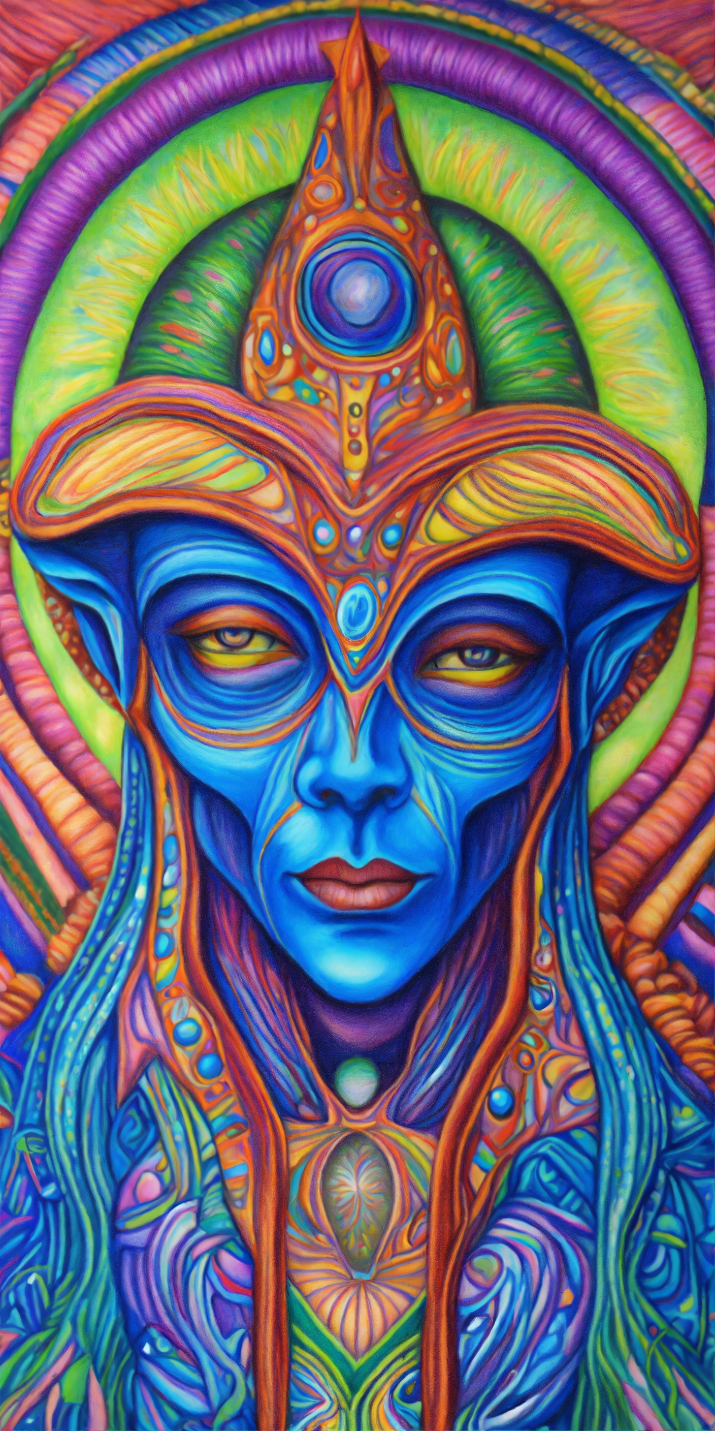 Colored pencil drawing psychedelic painting arcturian alien magician