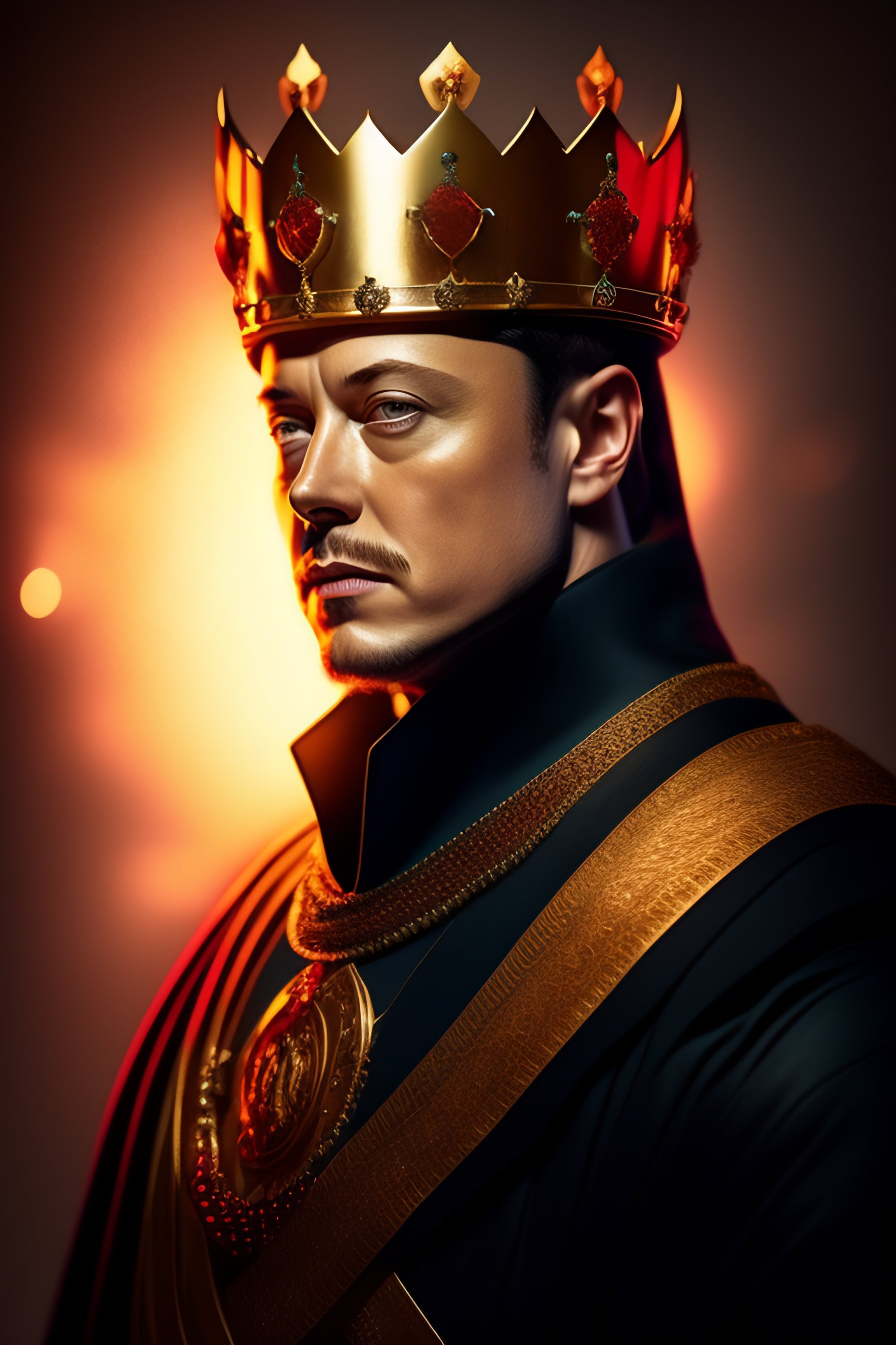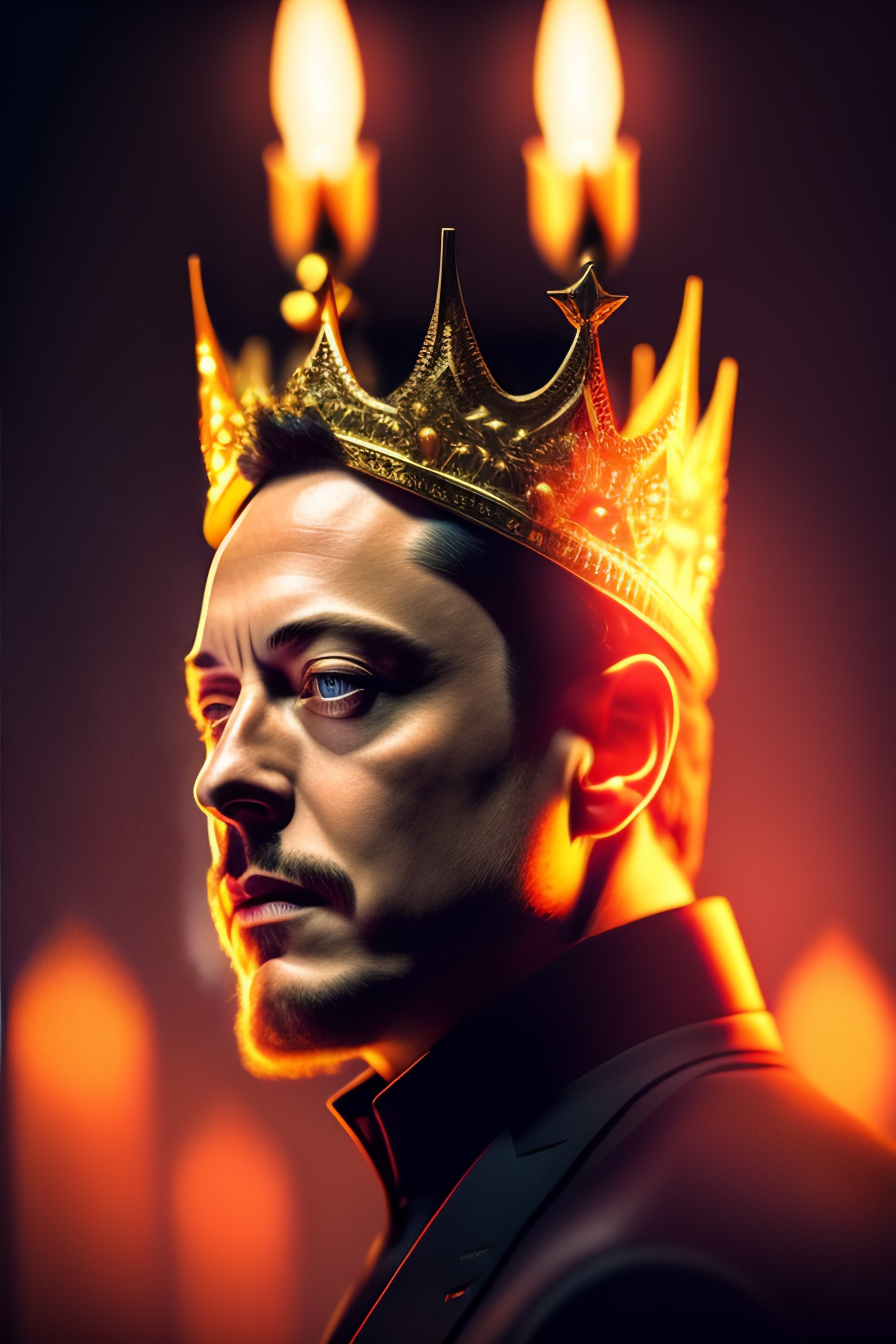 Eelon musk, king, crown of thorns, 2d photography, shining, portrait, cinematic lighting, full body photography