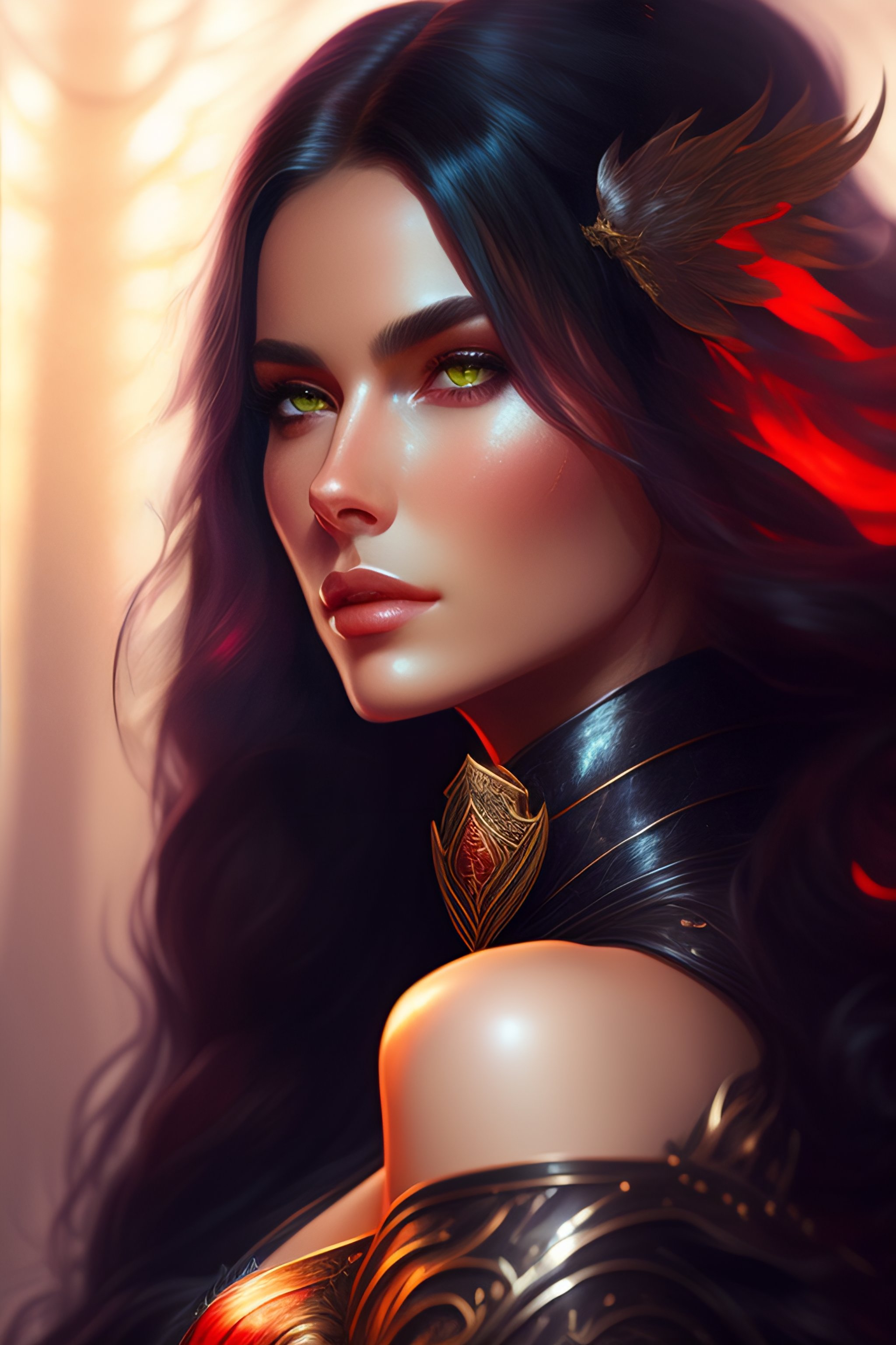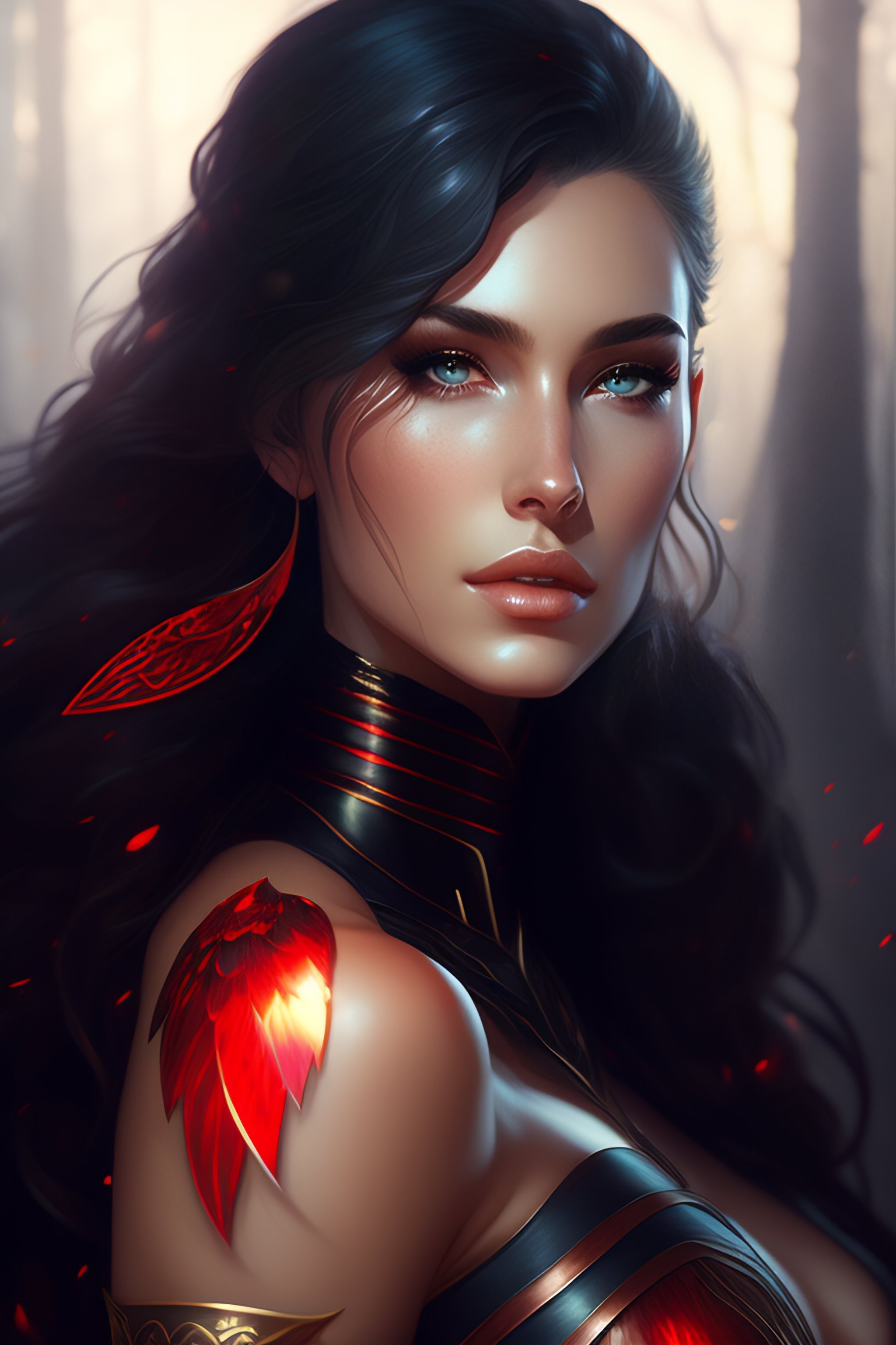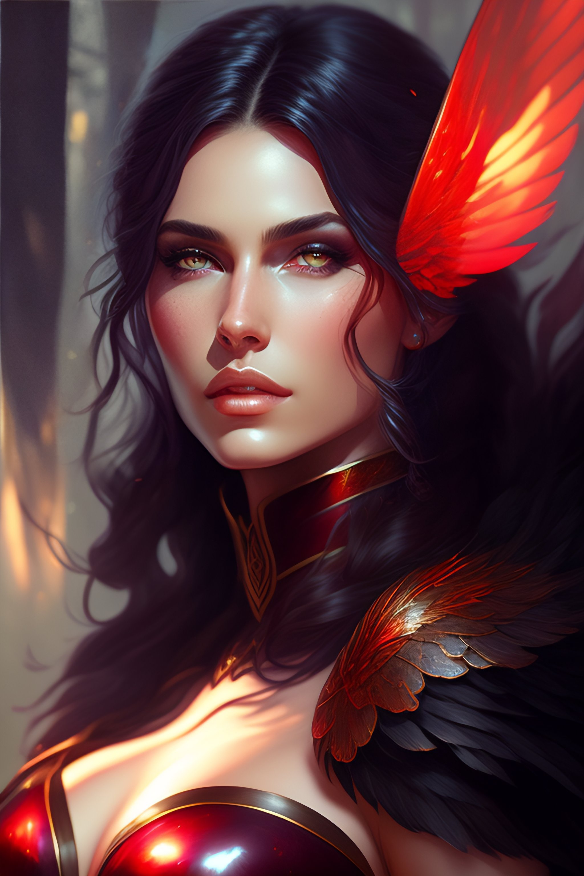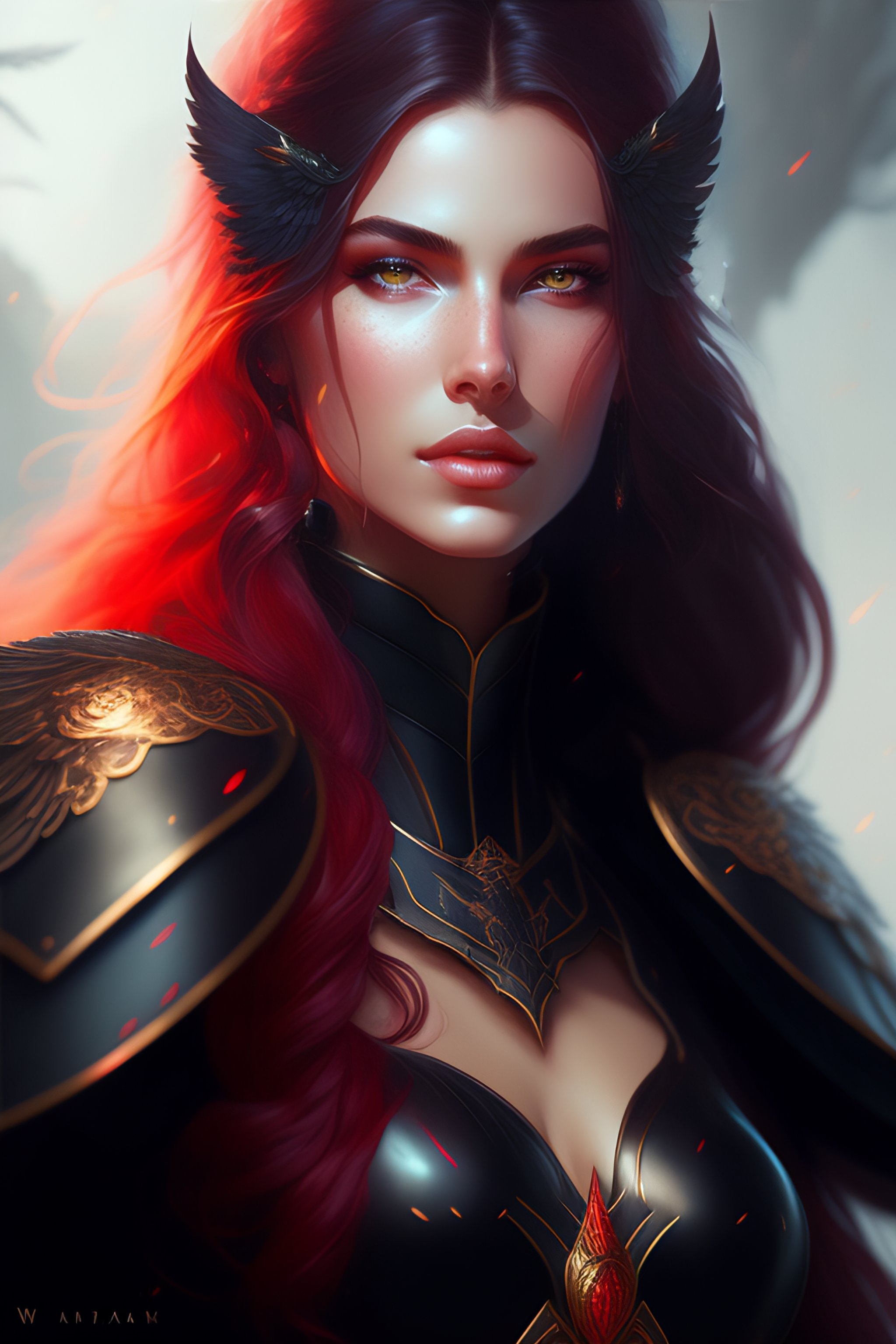 A beautiful cinematic female paladin, black wings slightly burnt, fantasy forest landscape, fantasy magic, red black fade hair, dark light night, intricate, elegant, sharp focus, illustration, highly detailed, digital painting, concept art, matte, art by wlop and artgerm and greg rutkowski and alphonse mucha, masterpiece