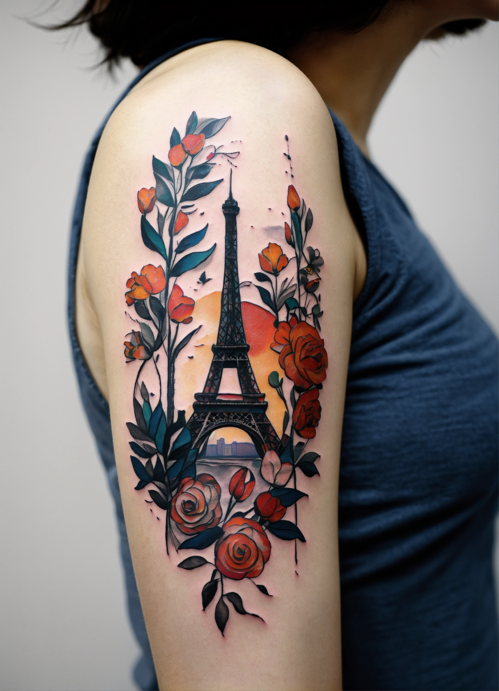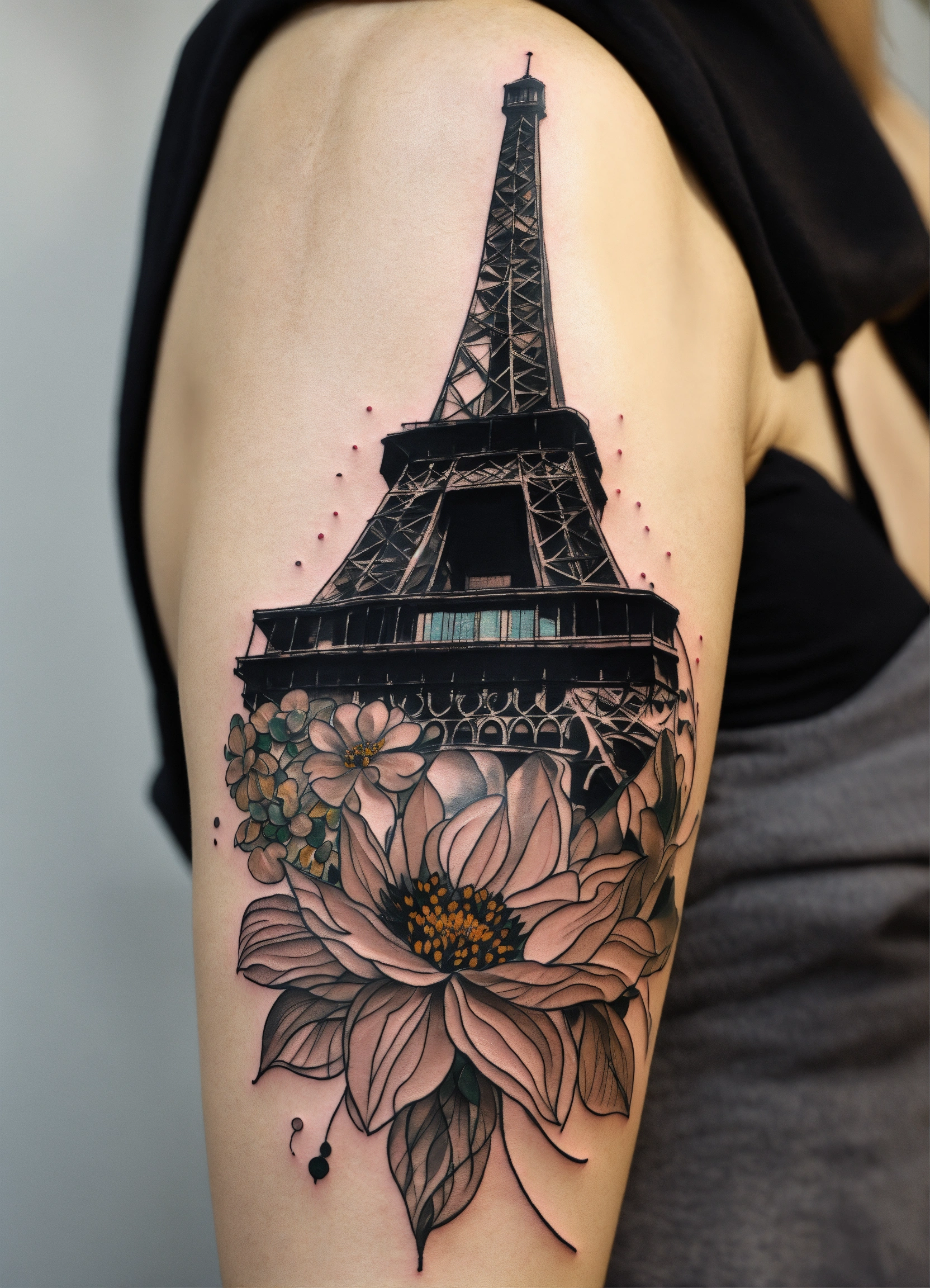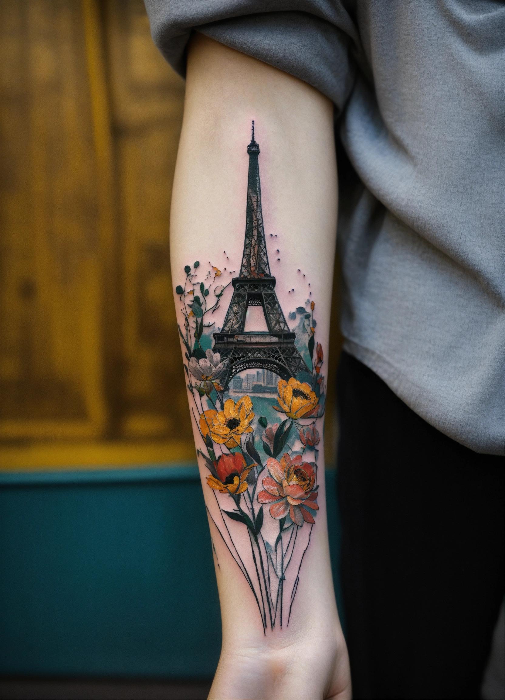 Tattoo van gogh paris noir gris lignes minimaliste courbes fleurs couleurs arm tattoo