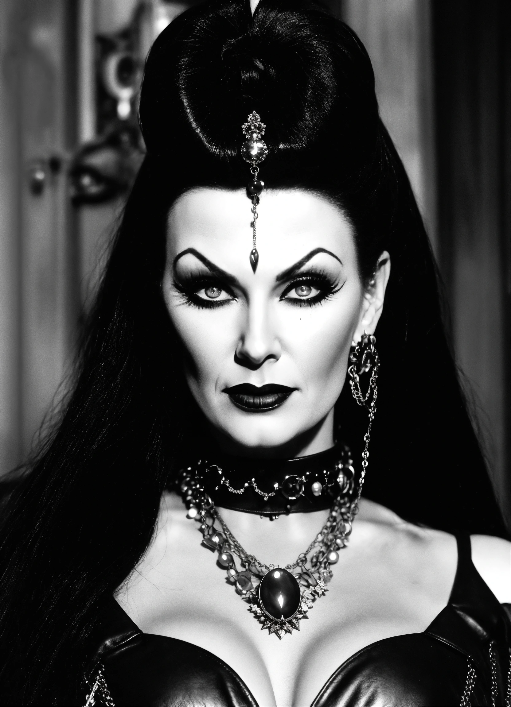 Extremely powerful very evil satanic goth hypnotist "lily munster julie strain evilynn", wearing black leather outfit with boots & "entrancing jewelry" using a small pendant necklace to put you in a trance at your front door, her powerful eyes bring you to your knees, mindless & helpless, most powerful sorceress in existence, obey without question, her power immeasurable