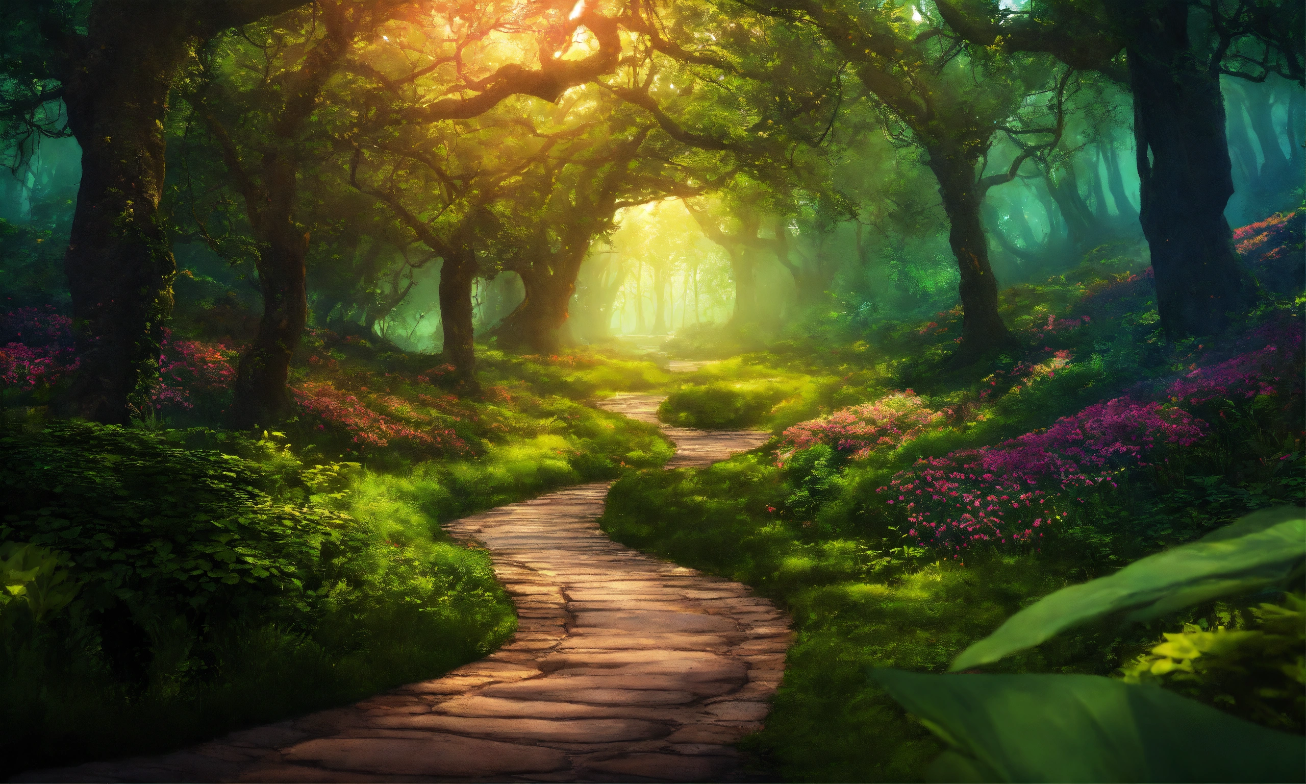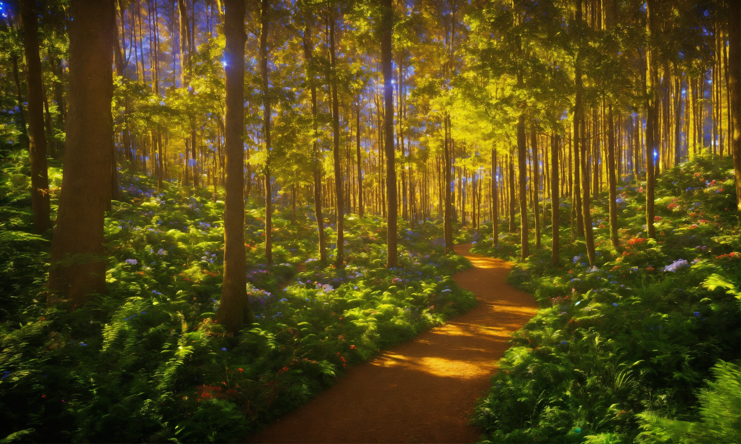 A winding path through an enchanted forest