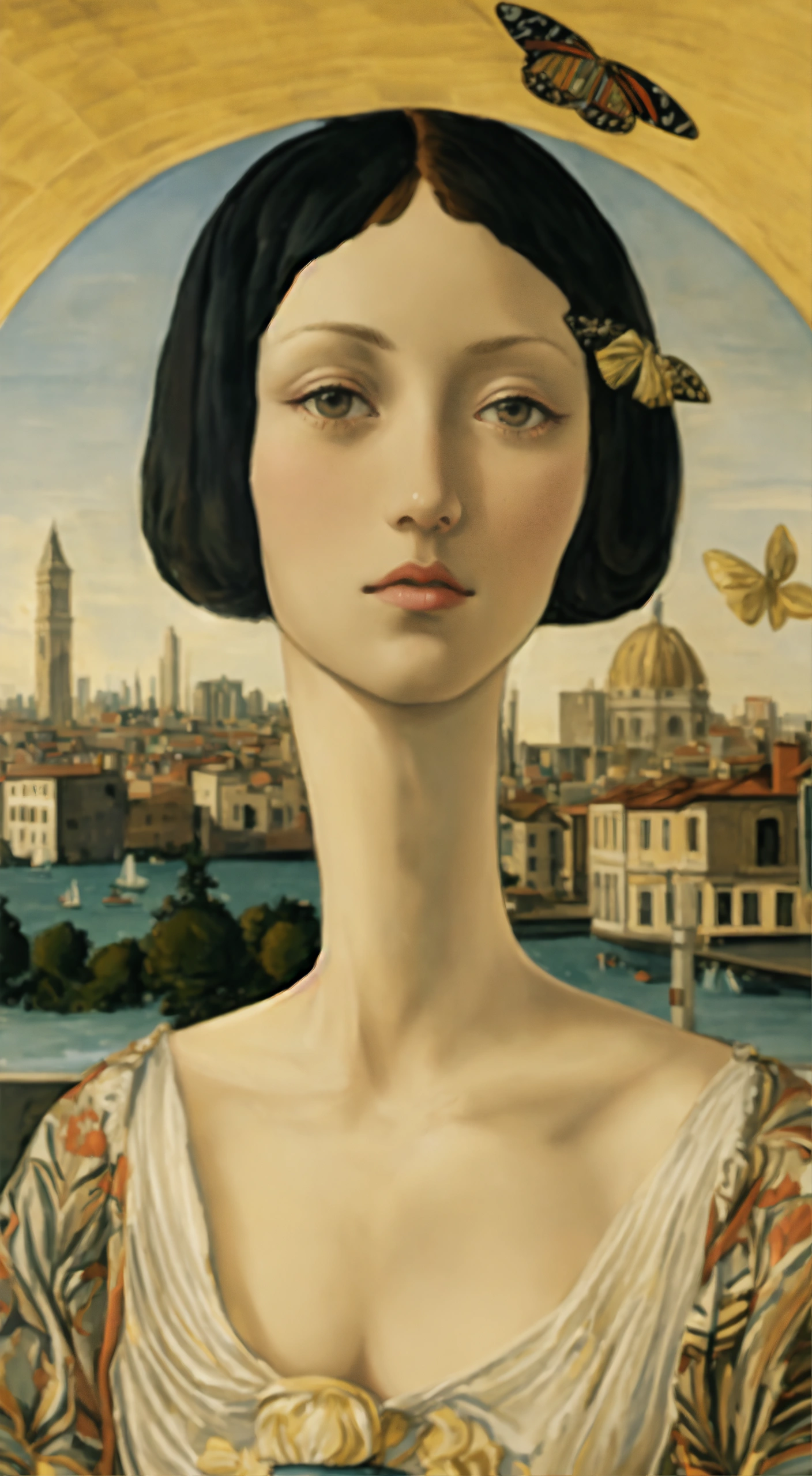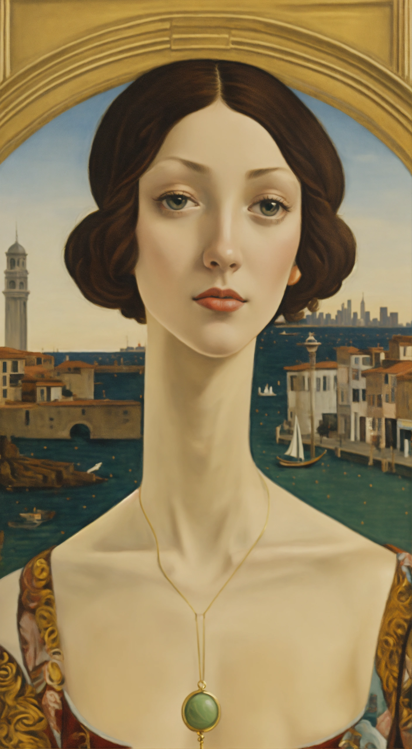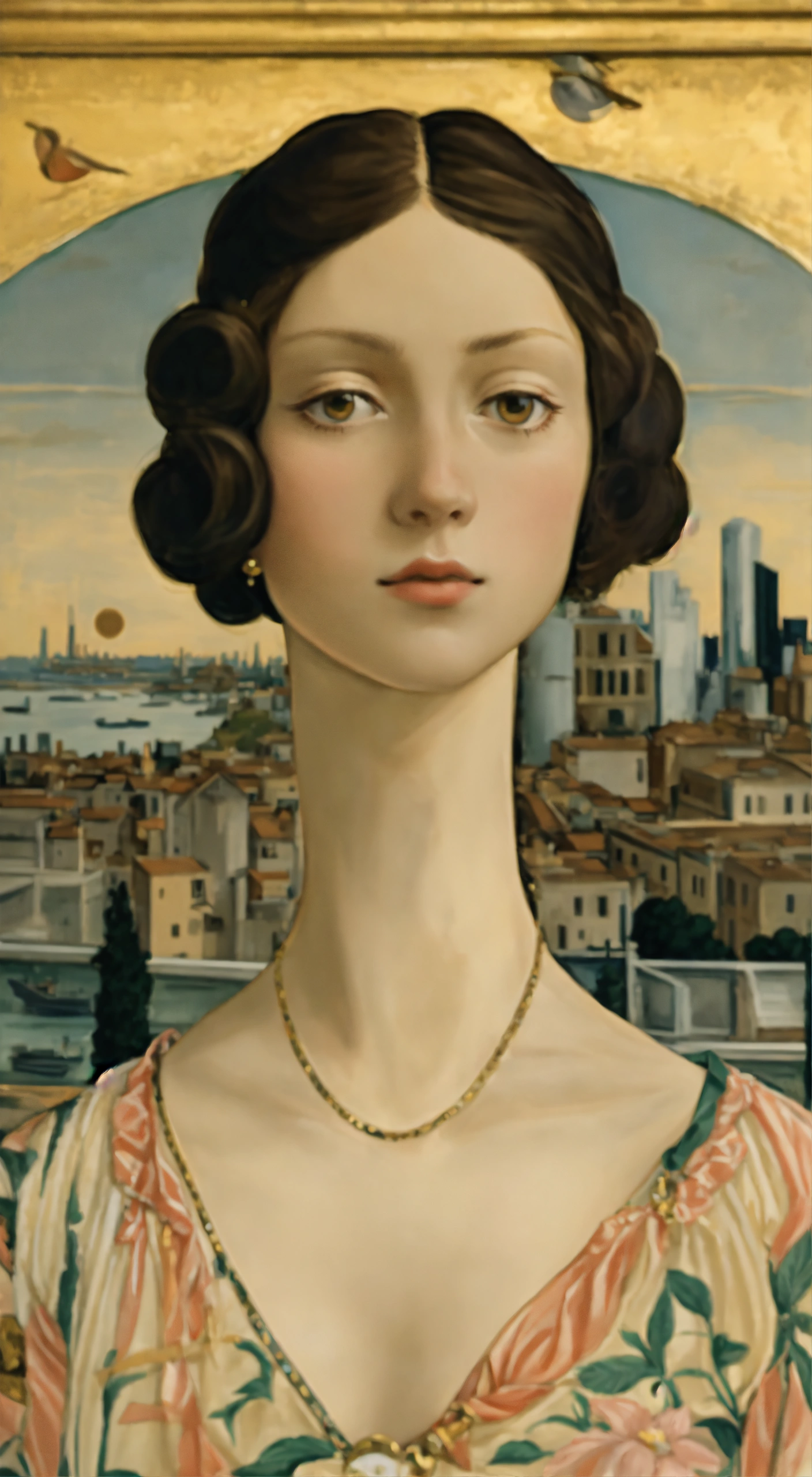 Venus in a top, a short, and sneakers in the modern time, by sandro botticelli, an urban cityscape, 256k.