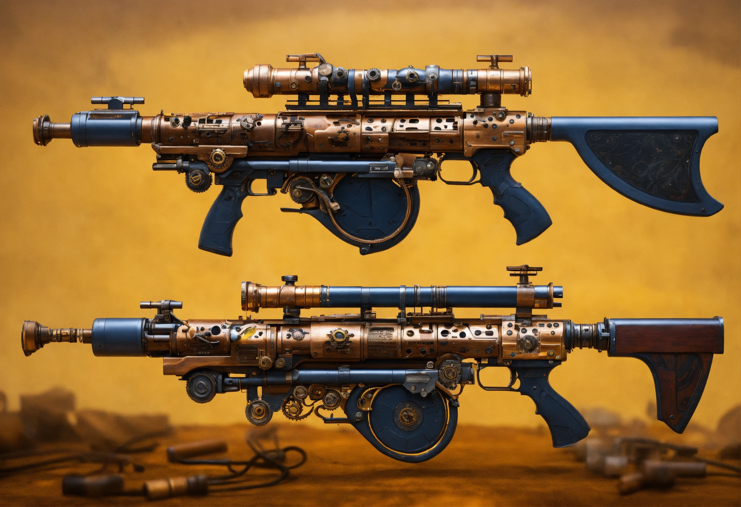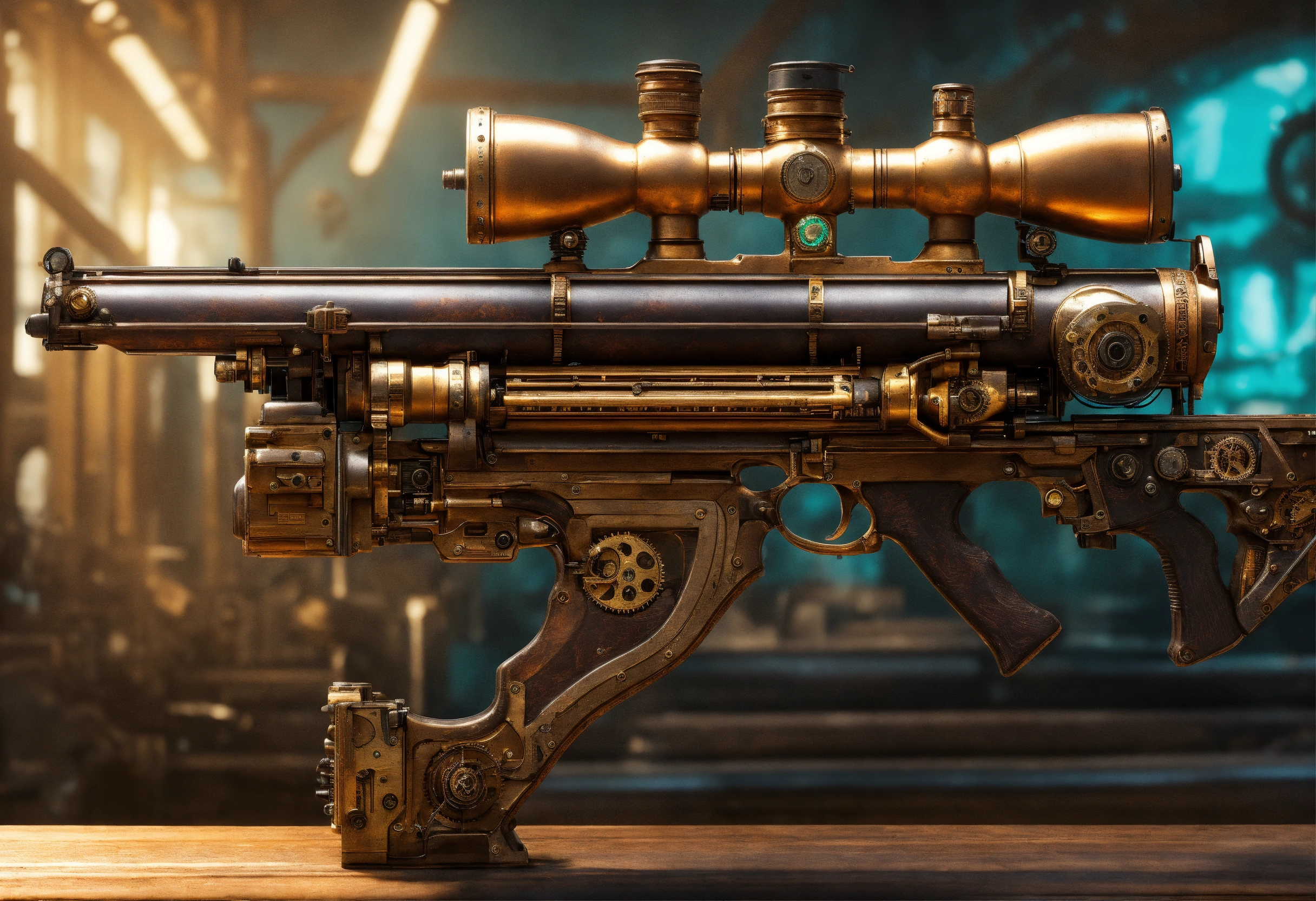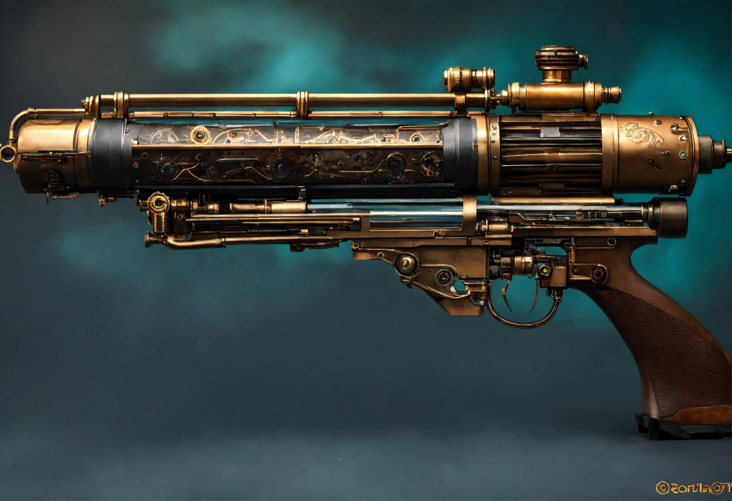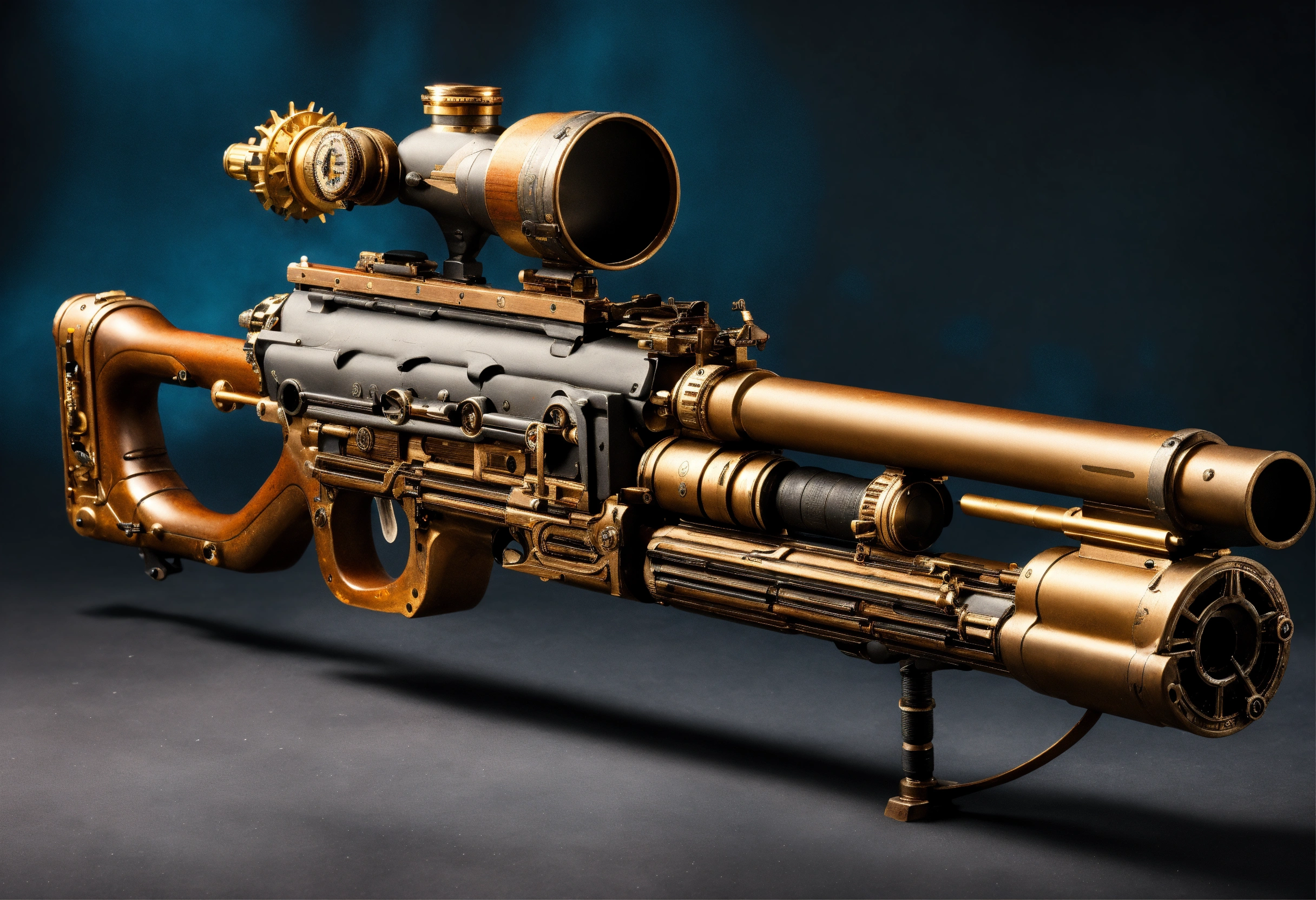 Side view of the full image of a steampunk energy rifle
