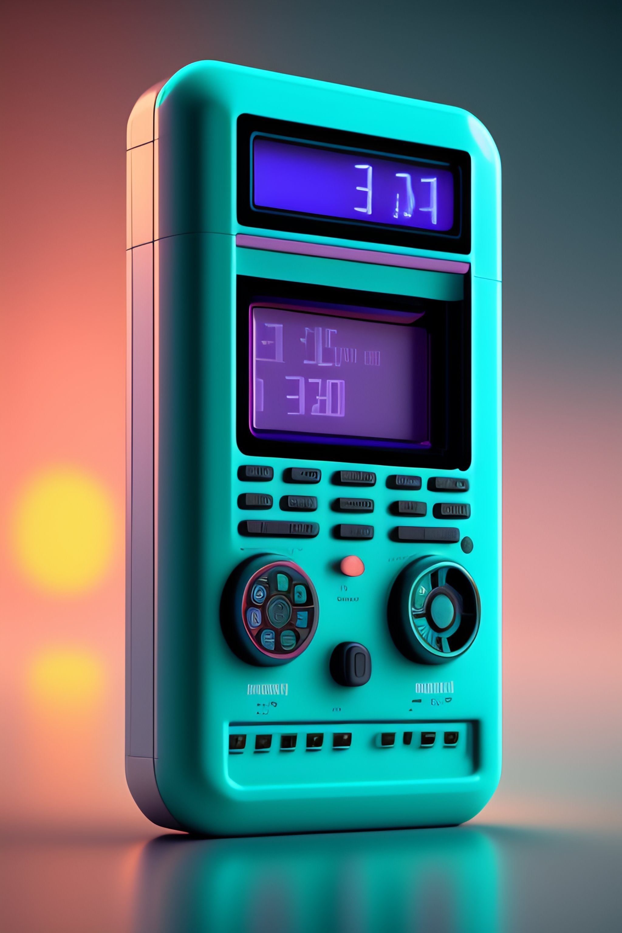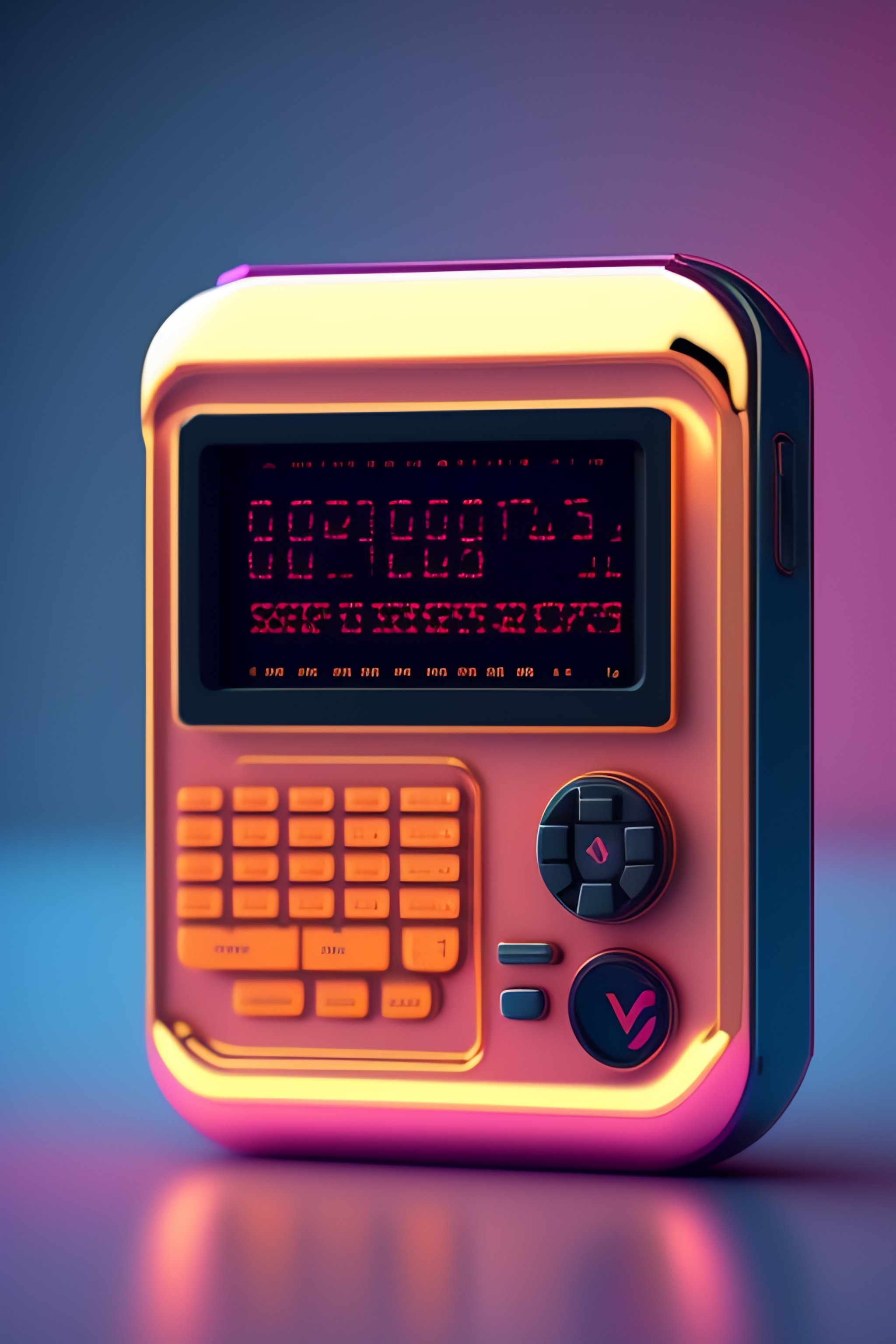 Vintage personal handheld computer device, 1990s, retro mini computer, c4d render, vaporwave aesthetic, product photography, greek letters