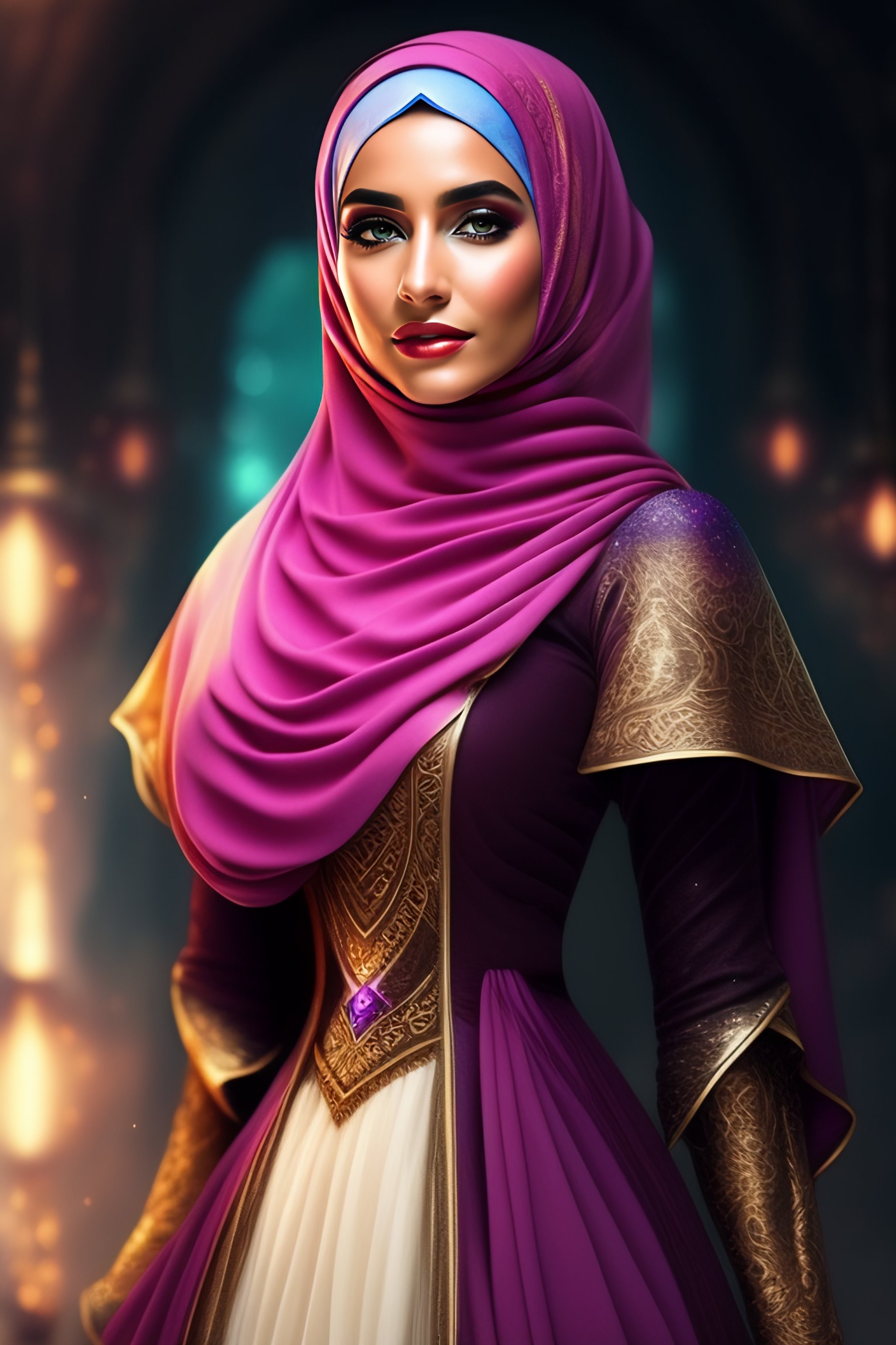 Beautiful hijab girl wearing fantasy mage clothing
