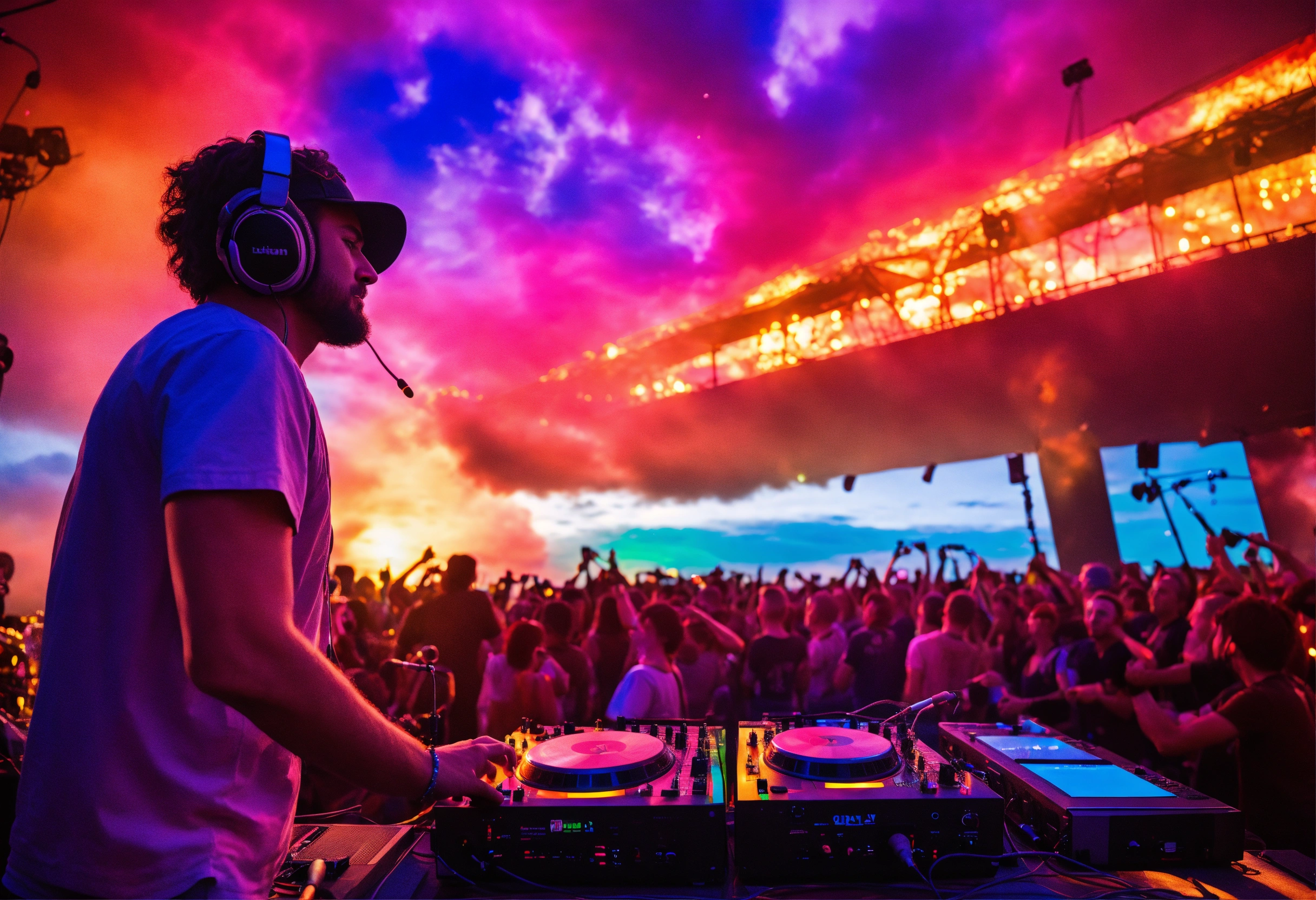 Dj set in front of a crowd
