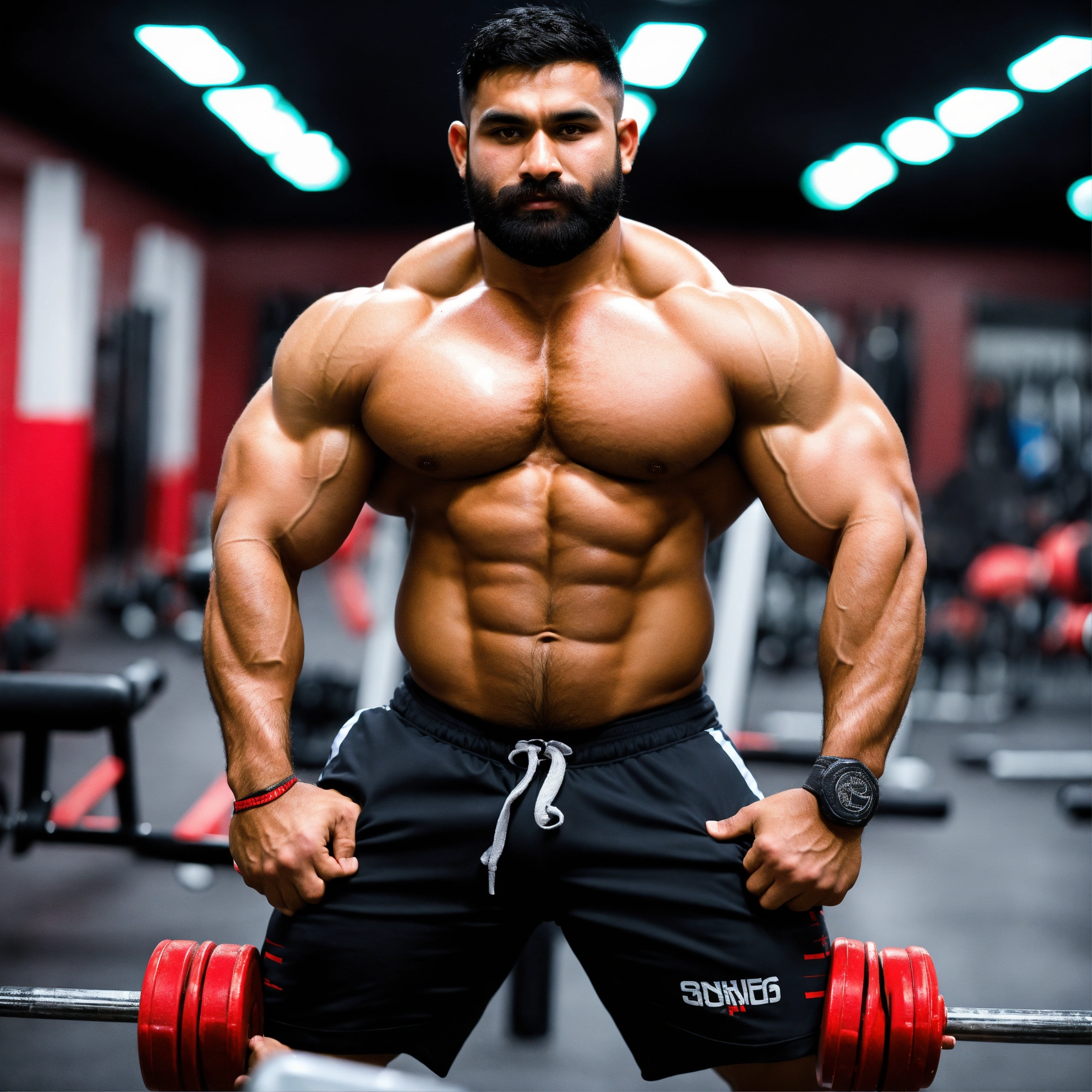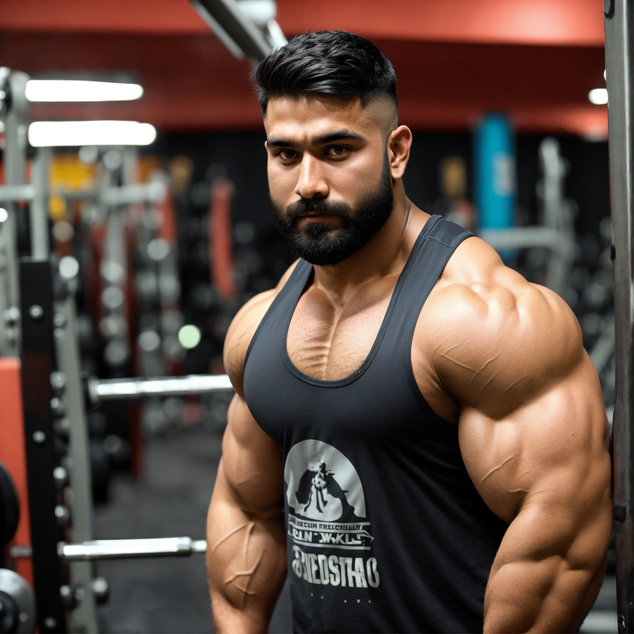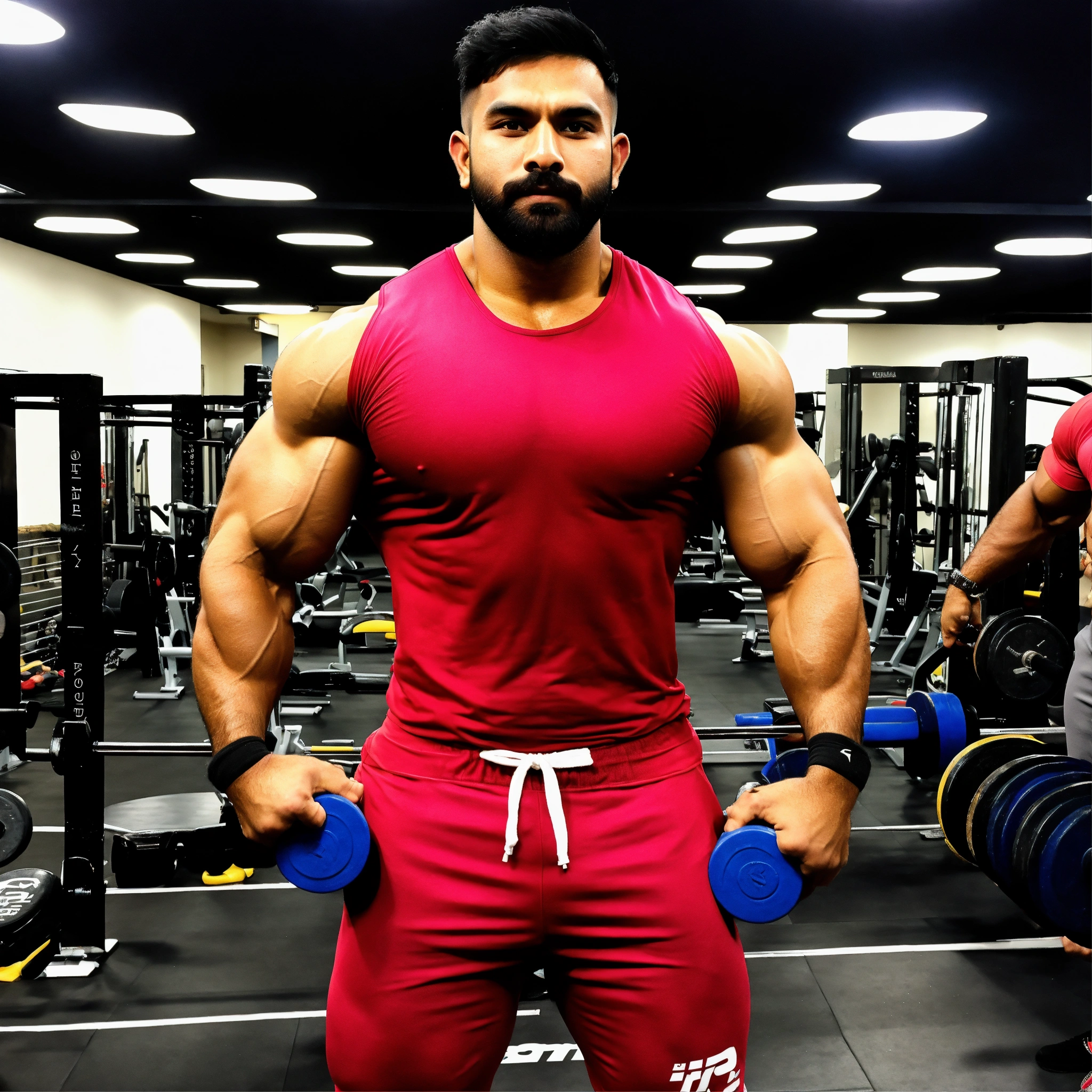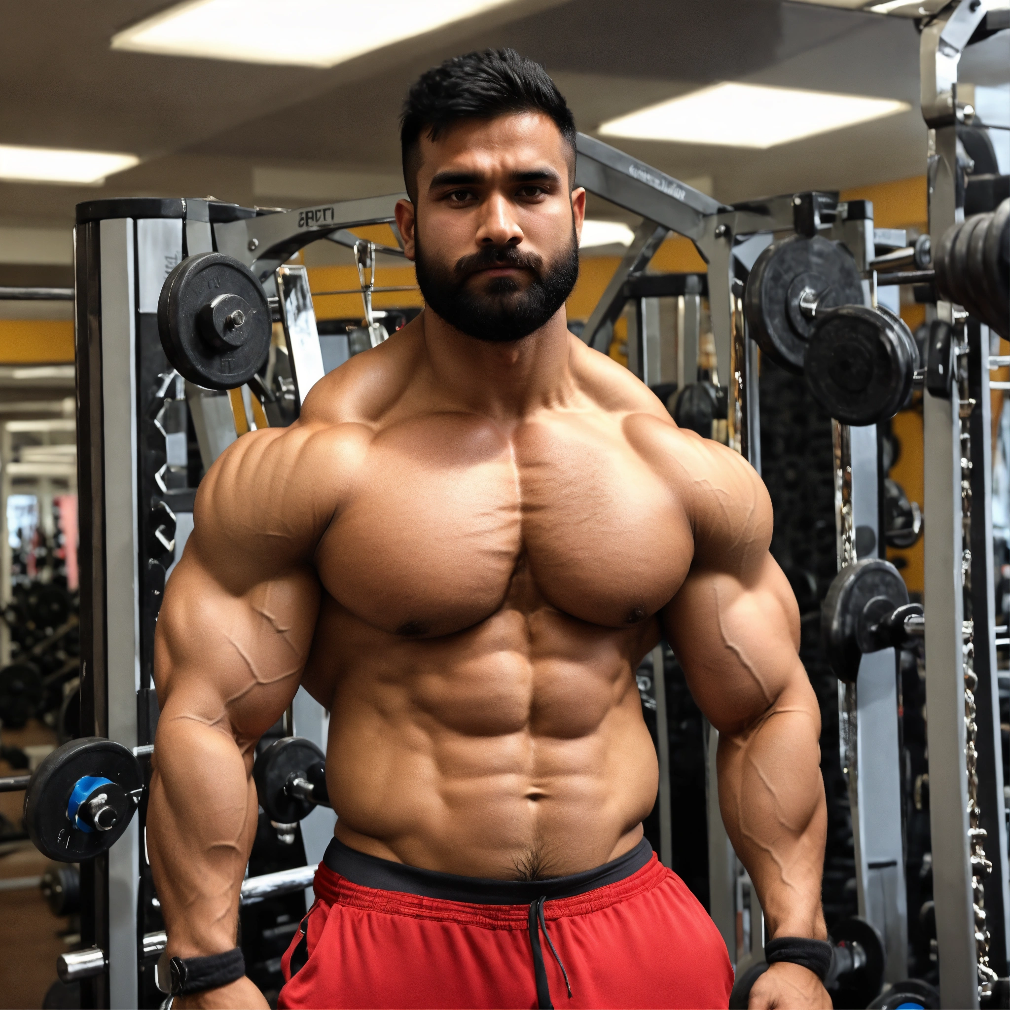 30-year-old hairy man with big muscles, amit chhetri, big bodybuilder, body like a wrestler, at the gym