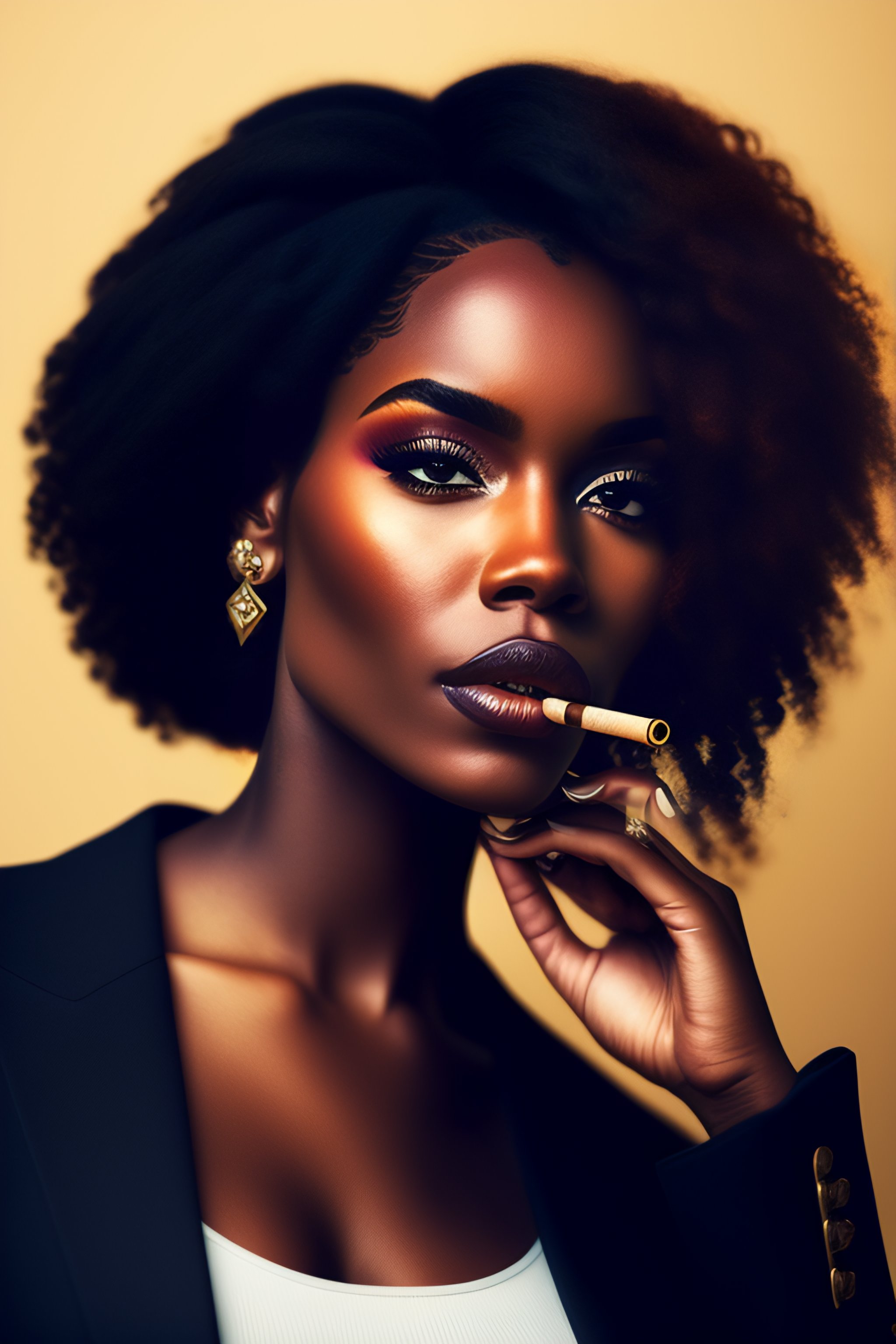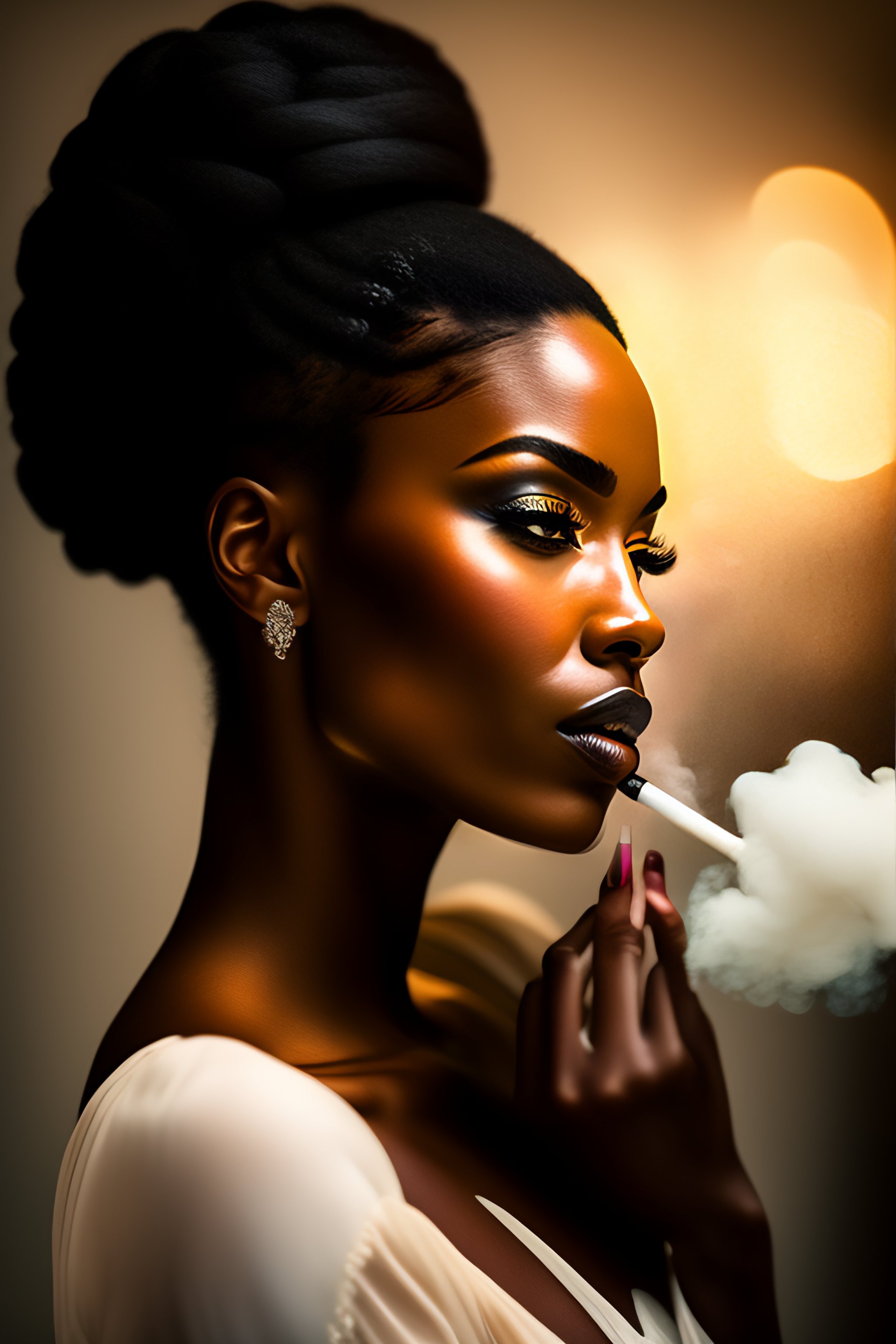 A beautiful black woman smoking a cigarette