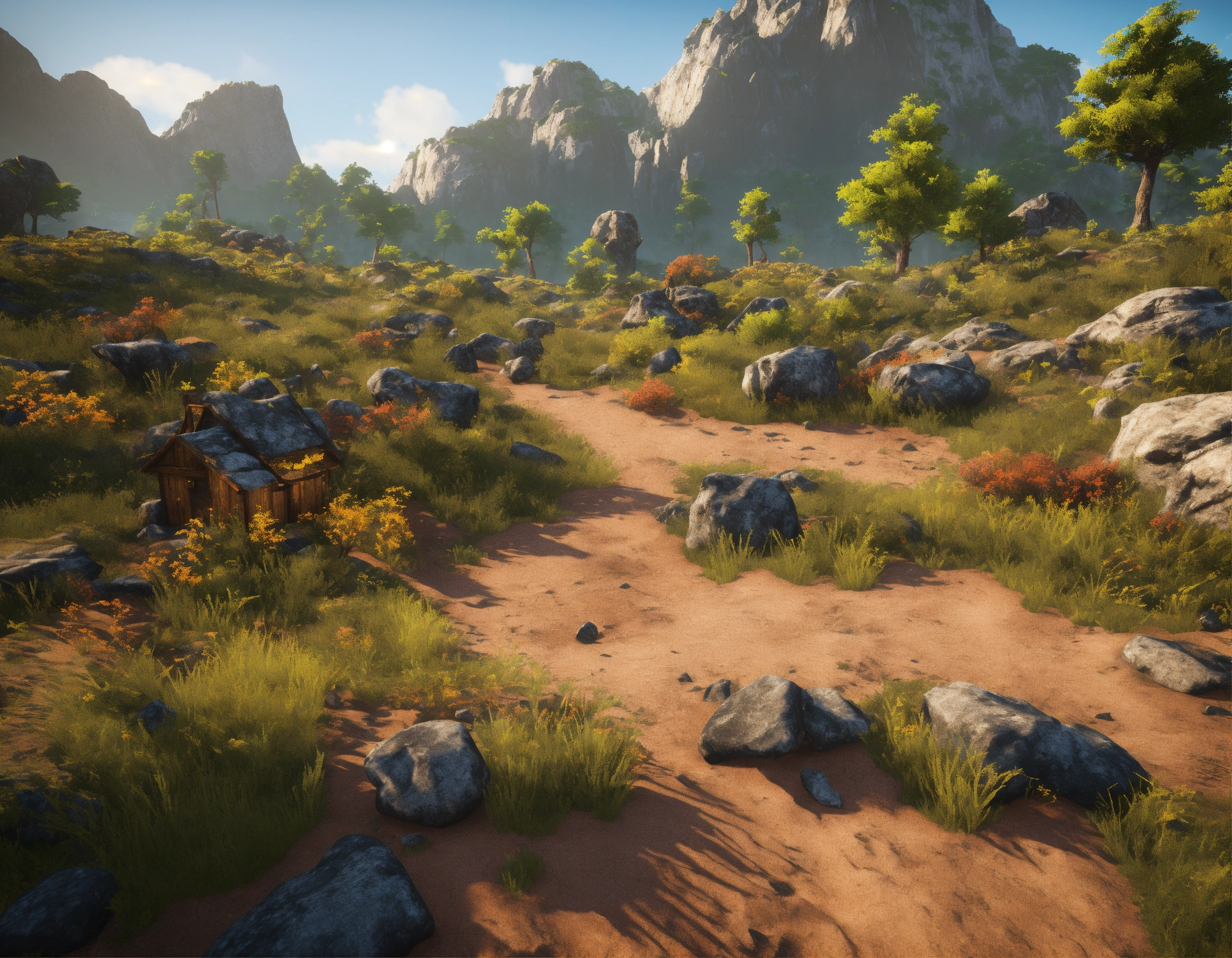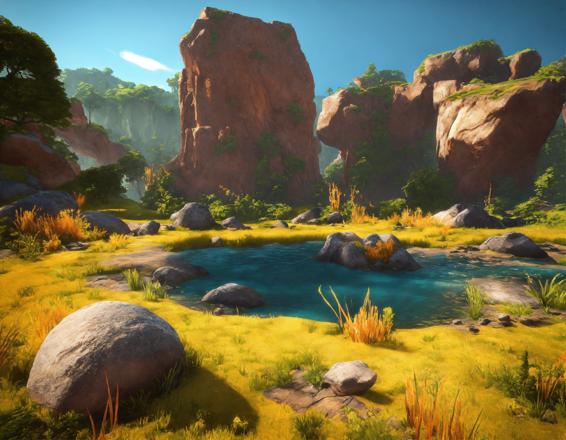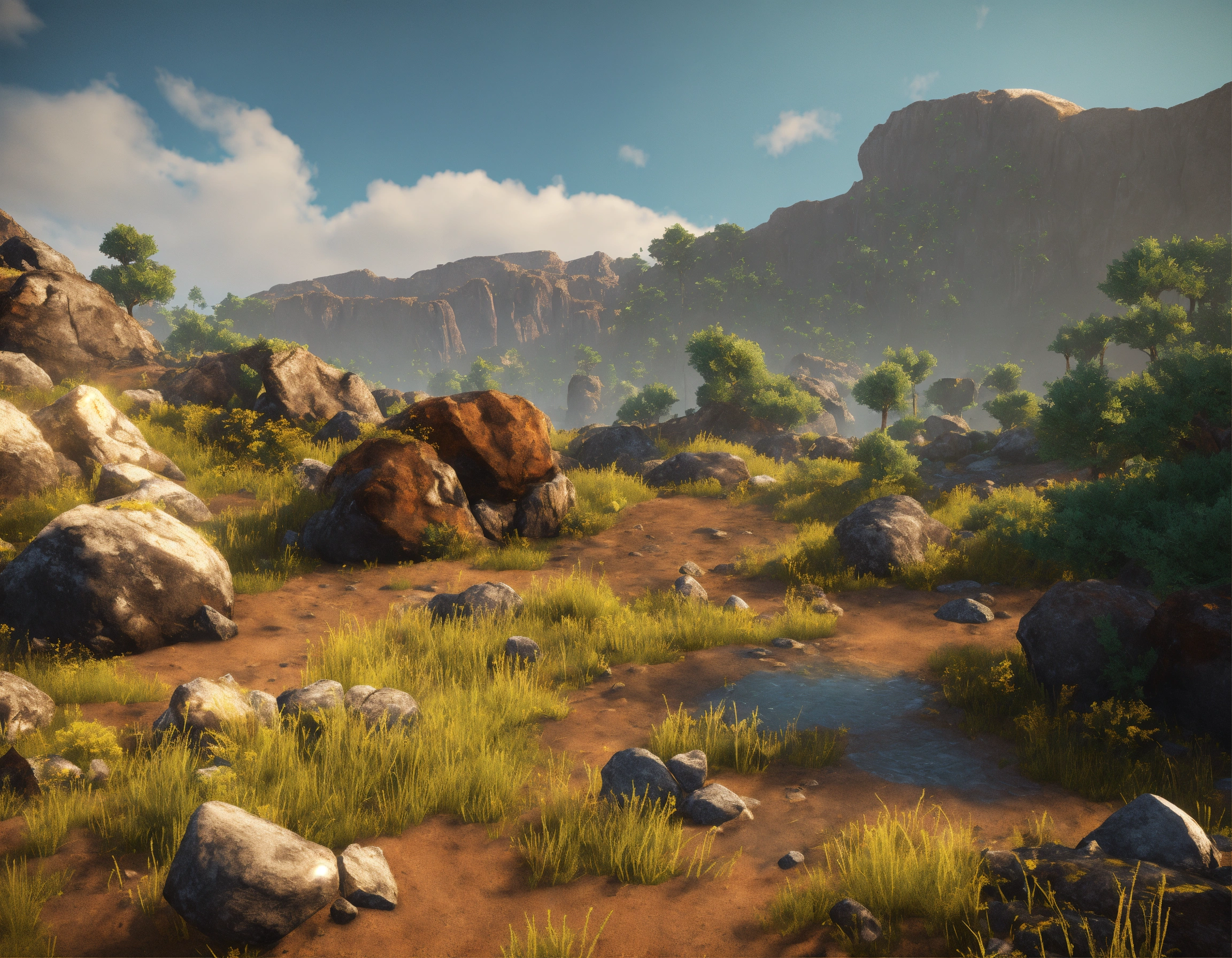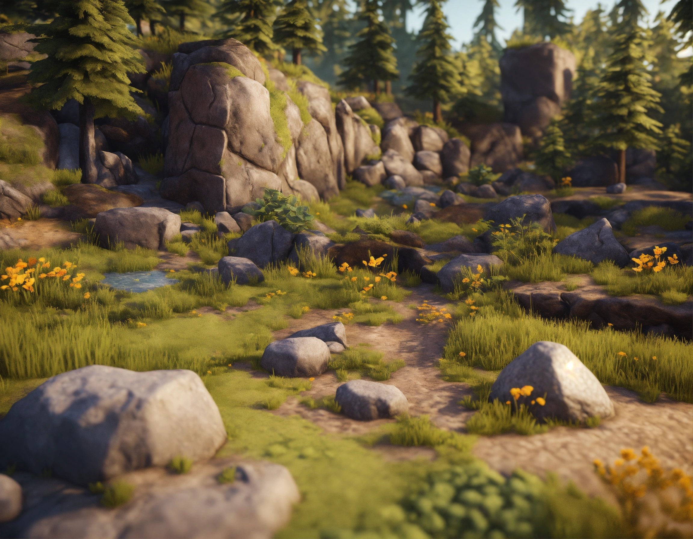 Generate a pack of terrain pieces for the game environment. these pieces should include various natural elements like rocks, cliffs, and ground textures. create diverse shapes and sizes to add realism and variety to the planet's surface. these terrain pieces will be used to construct the game's vibrant and dynamic environment