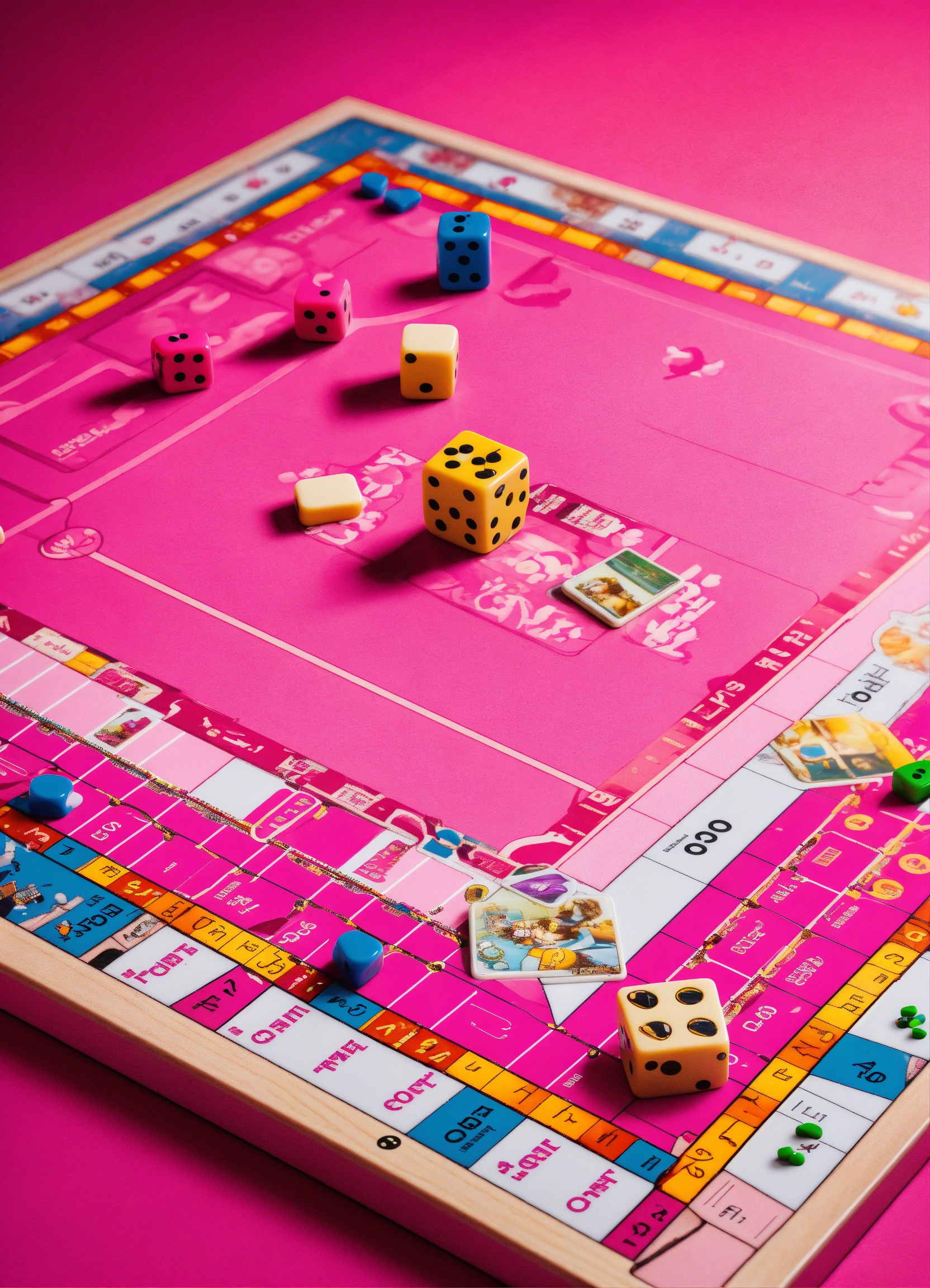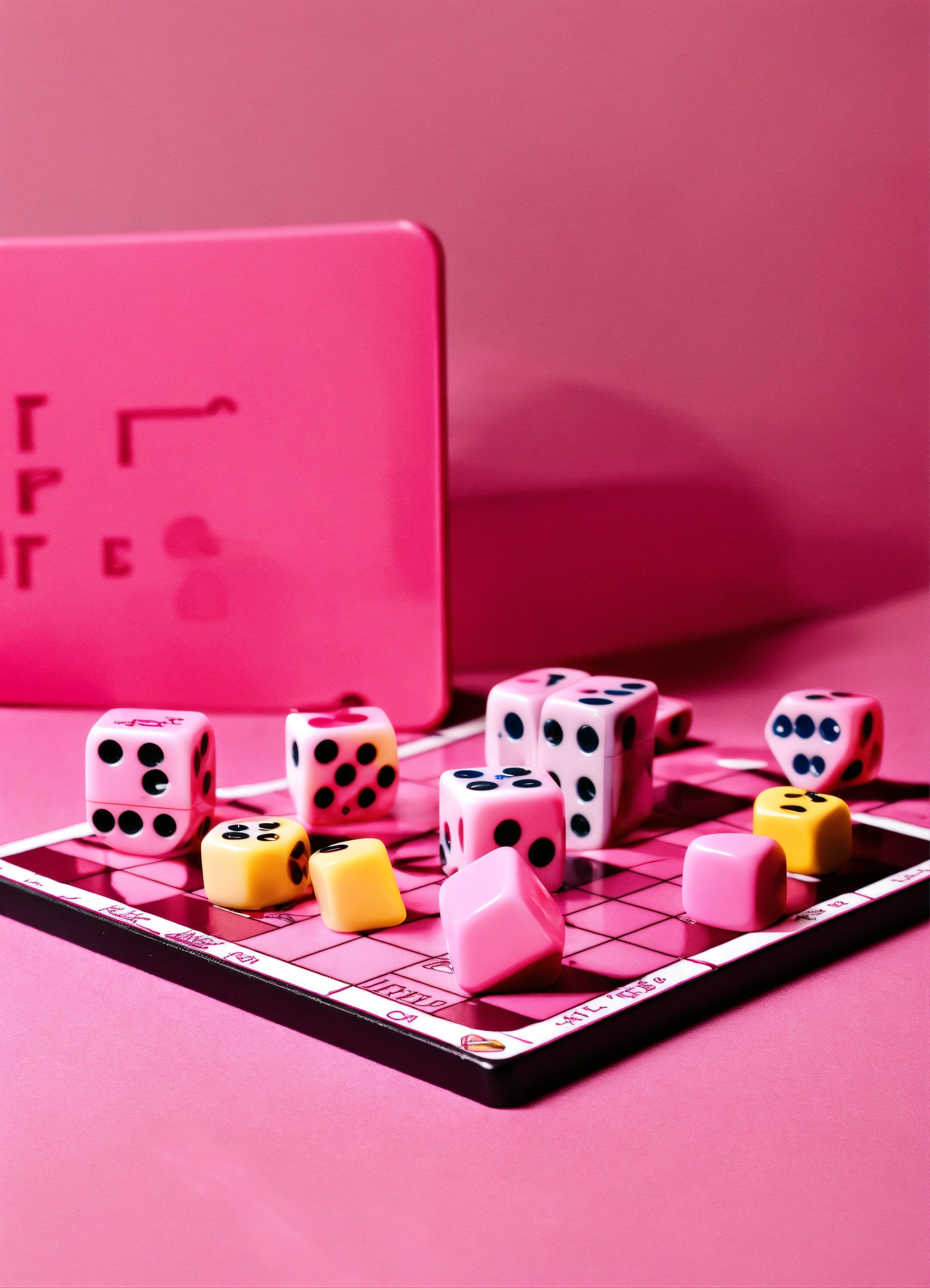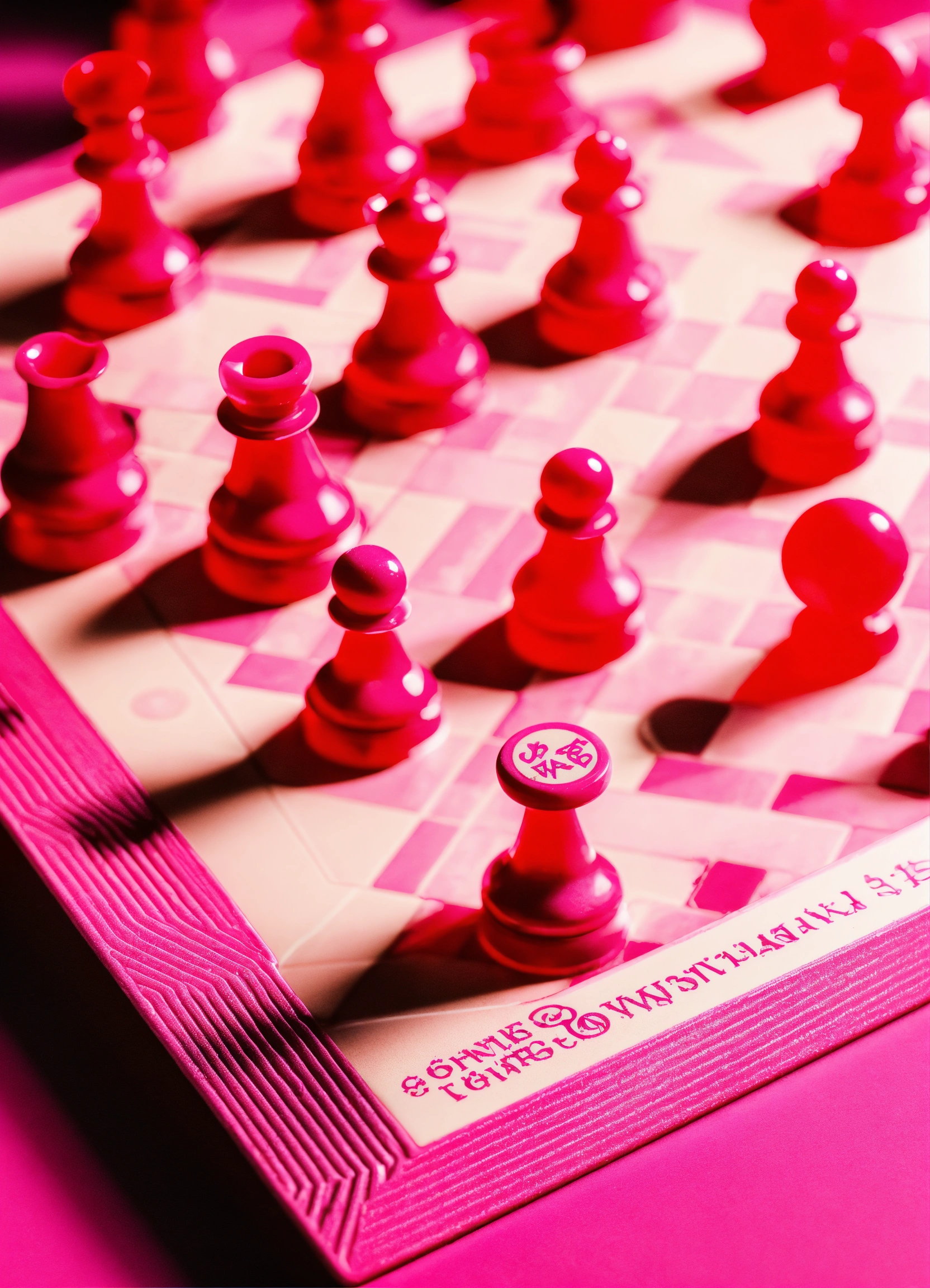 A pink board game at an angled view being able to see the full view of the game a white background