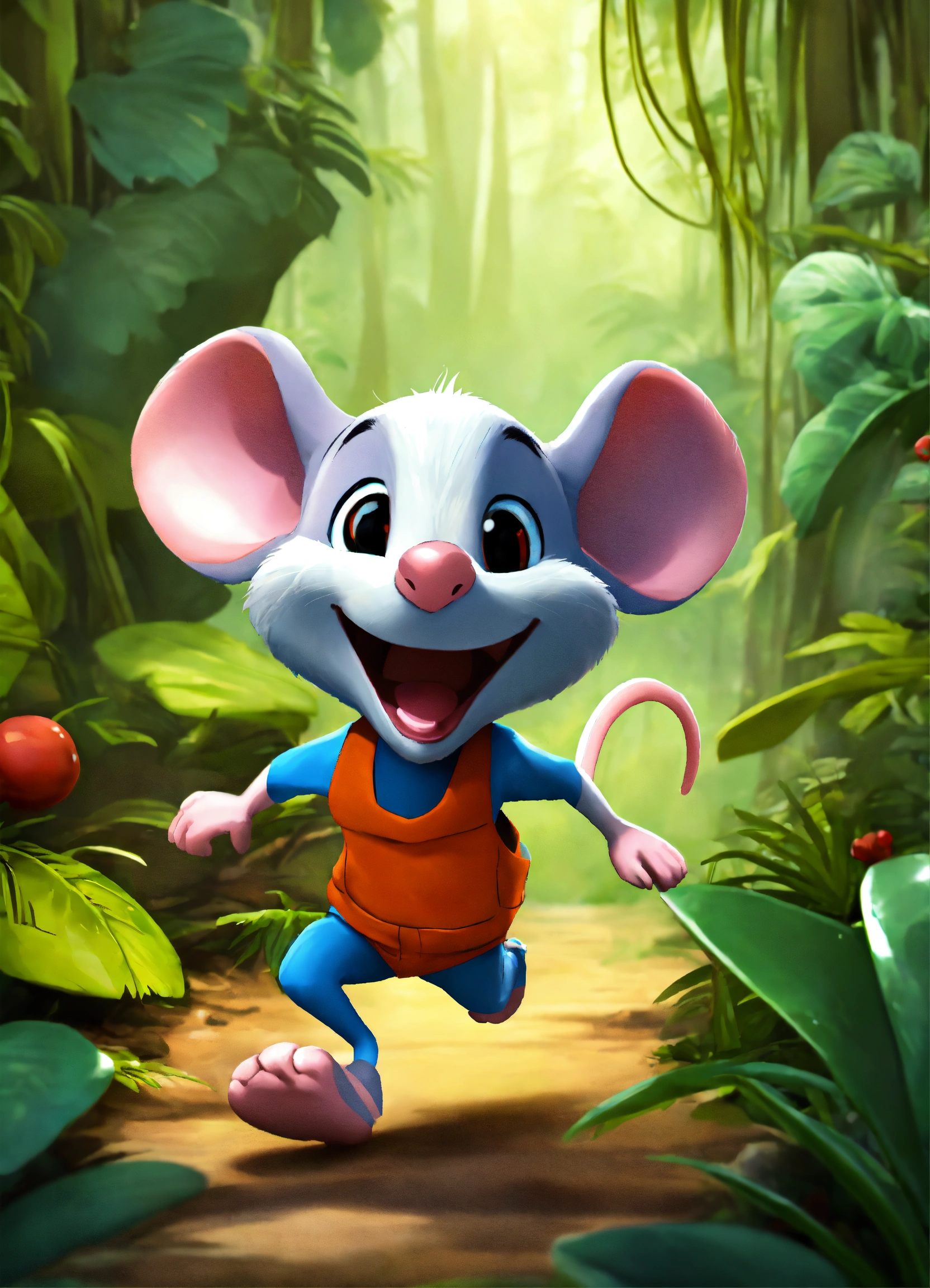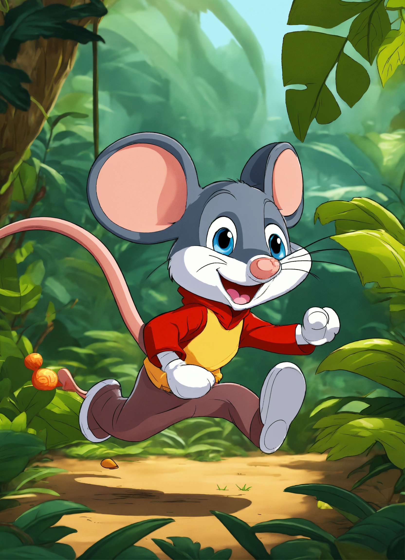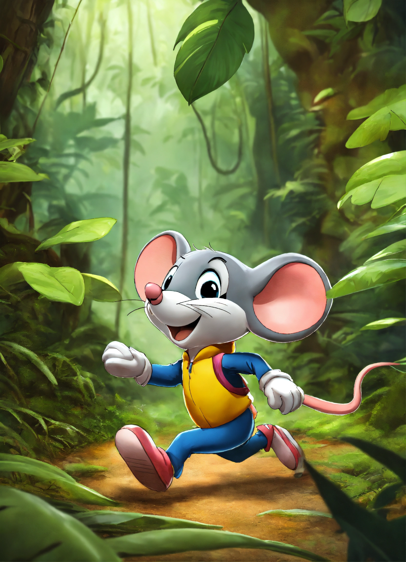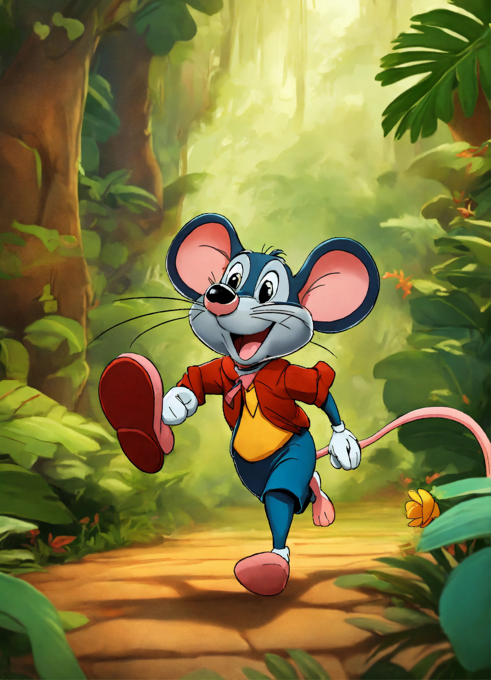 Cartoon mouse running in jungle