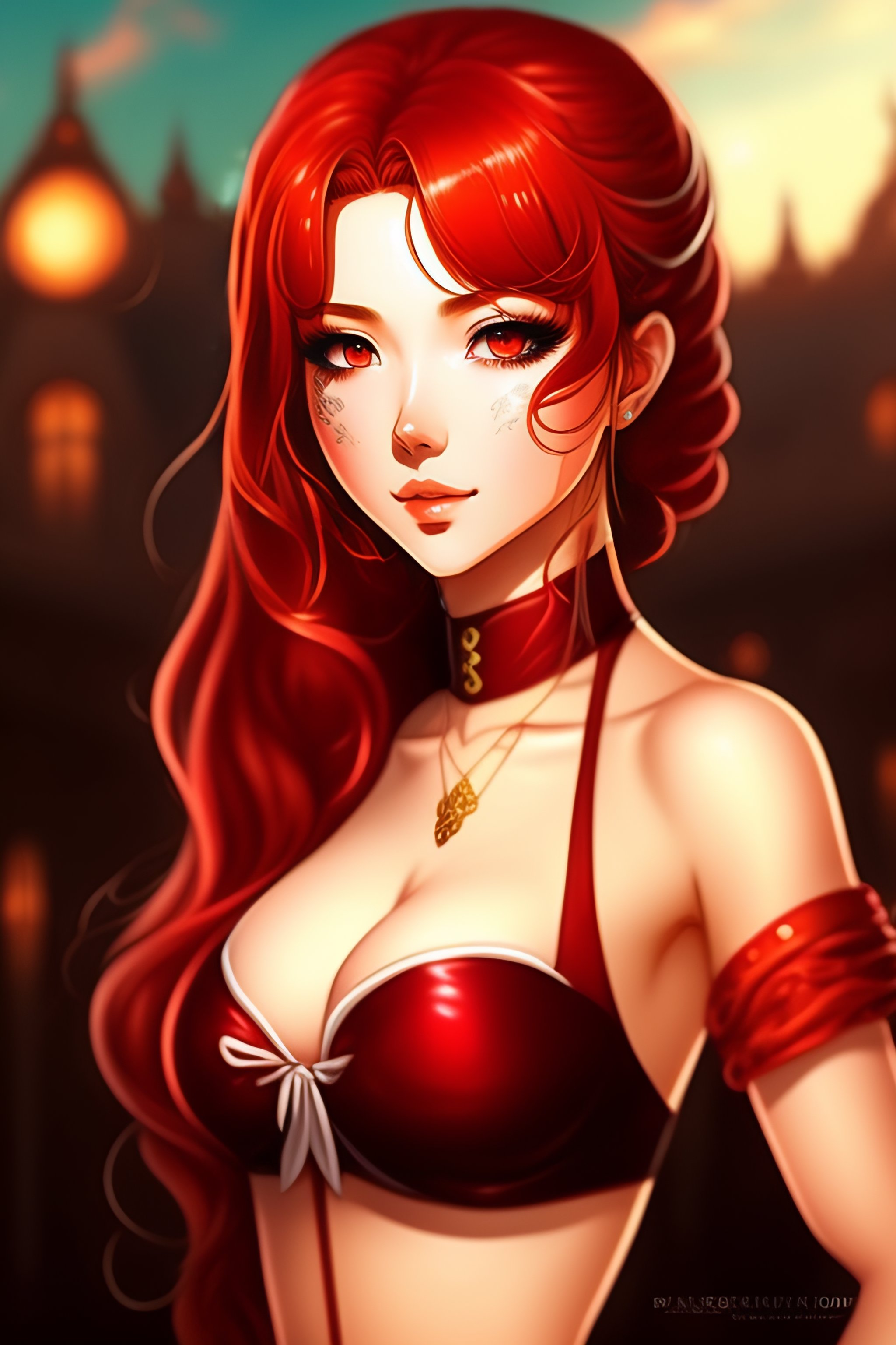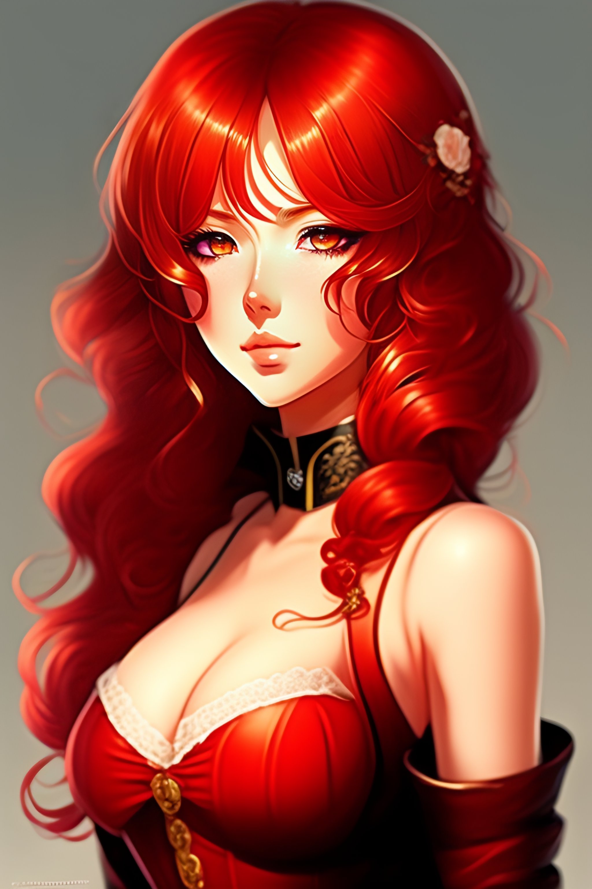 Anime drawing of sexy victorian girl with red hair