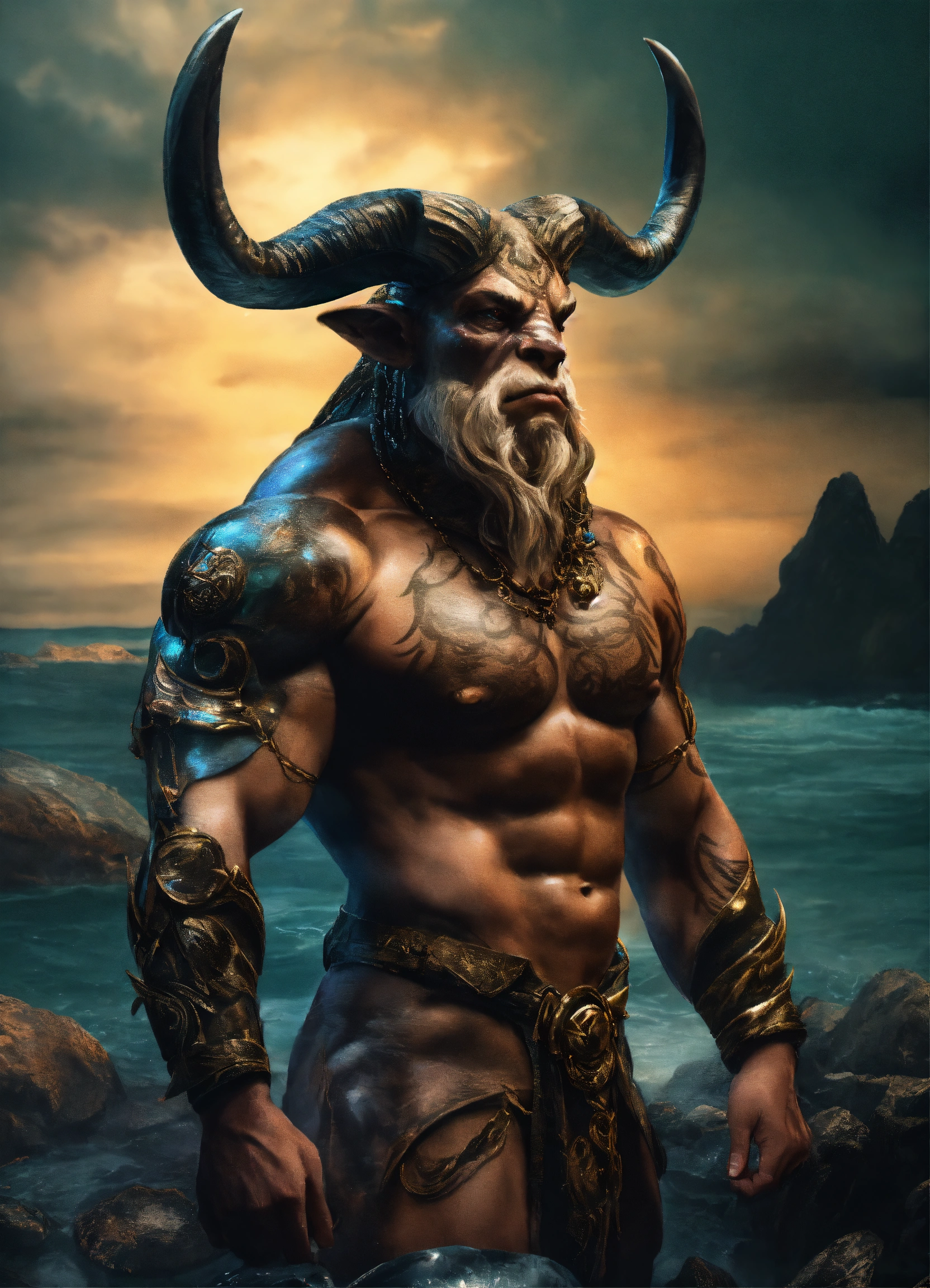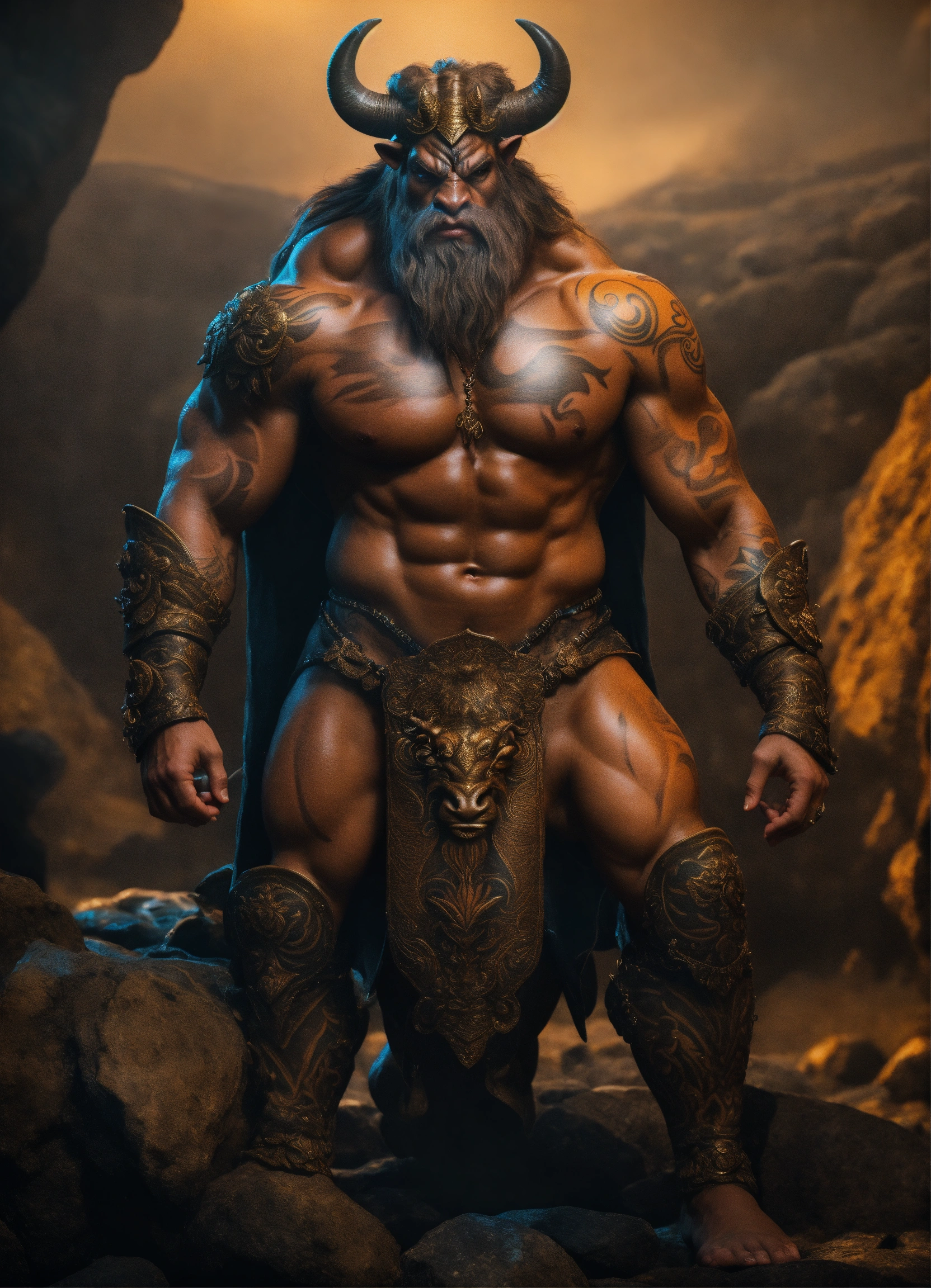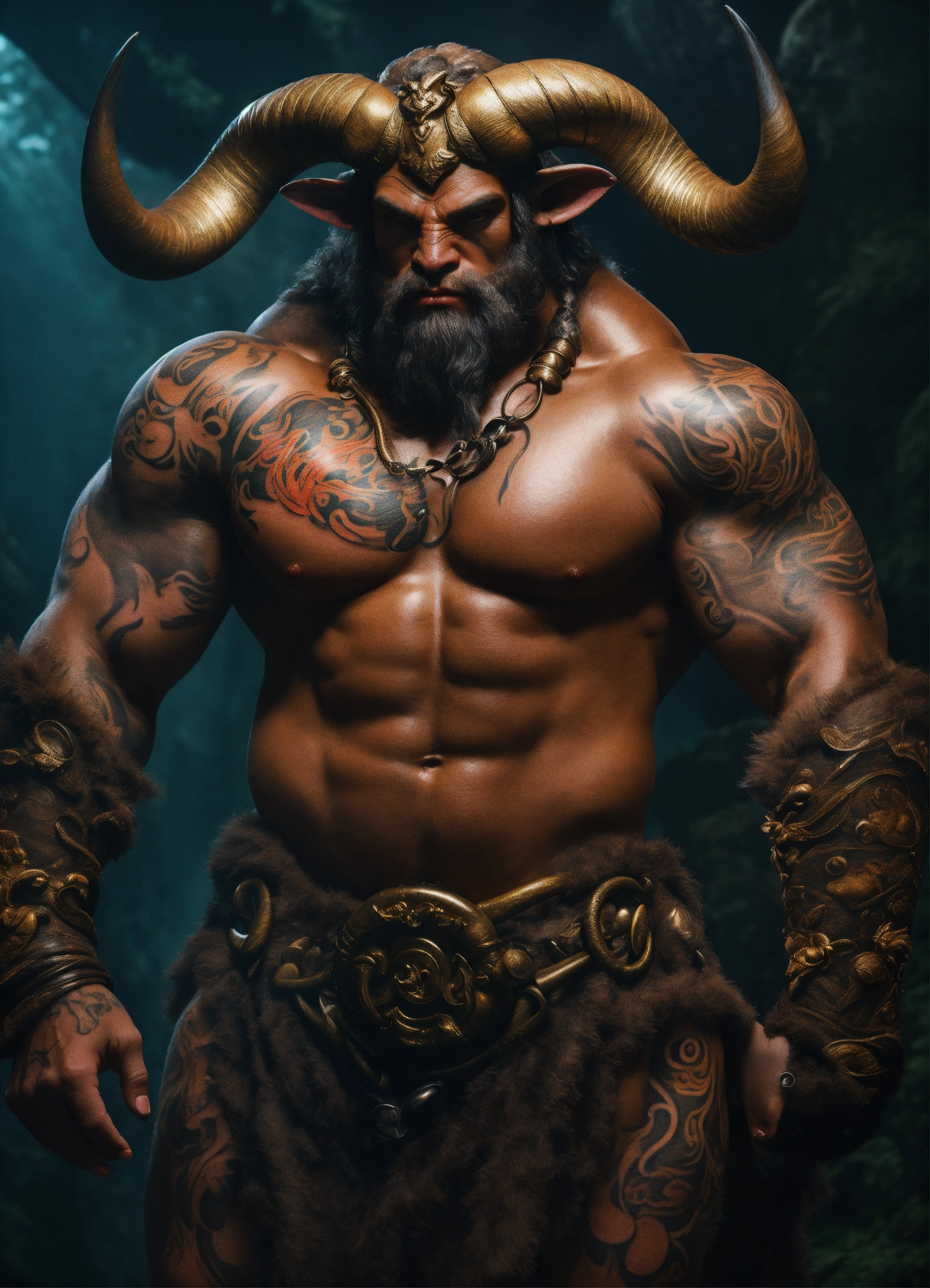Ultra realistic minotaur full body mussels tattoos in dark fantasy perfect clarity photorealistic high definition, 8k resolution