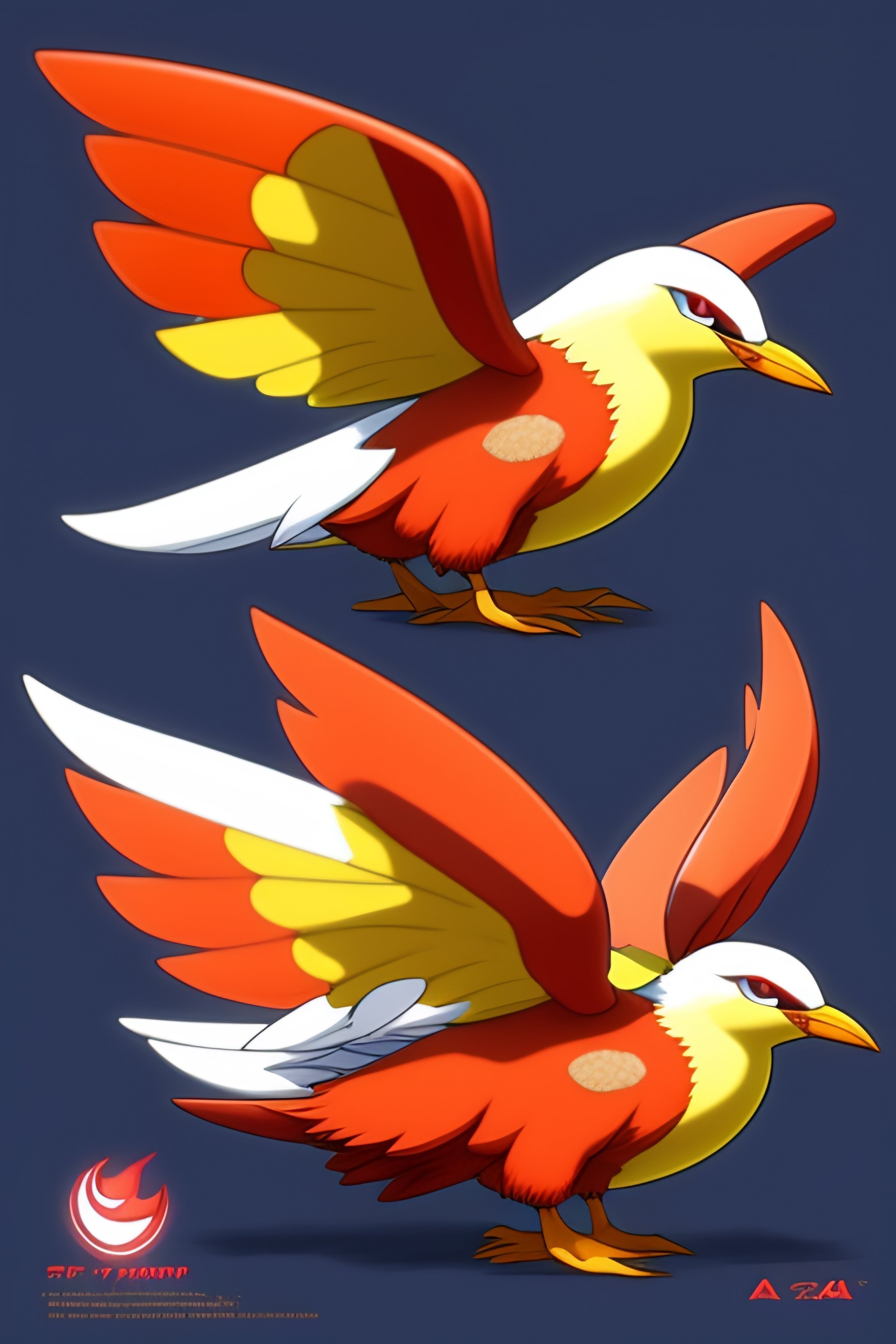 Flying and fire type pokemon based on a tern seagull, controls the sun, third stage pokemon, color scheme yellow red and white, tail feathers look like a sail, wears a seashell on its head, cute, fakemon, drawn by ken sugimori, concept art