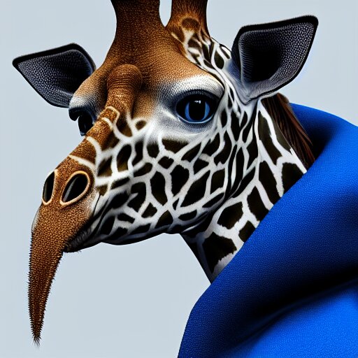 A highly detailed portrait of a humanoid giraffe in a blue cloak, artstation, deviantart, professional, unreal engine 5, photorealistic