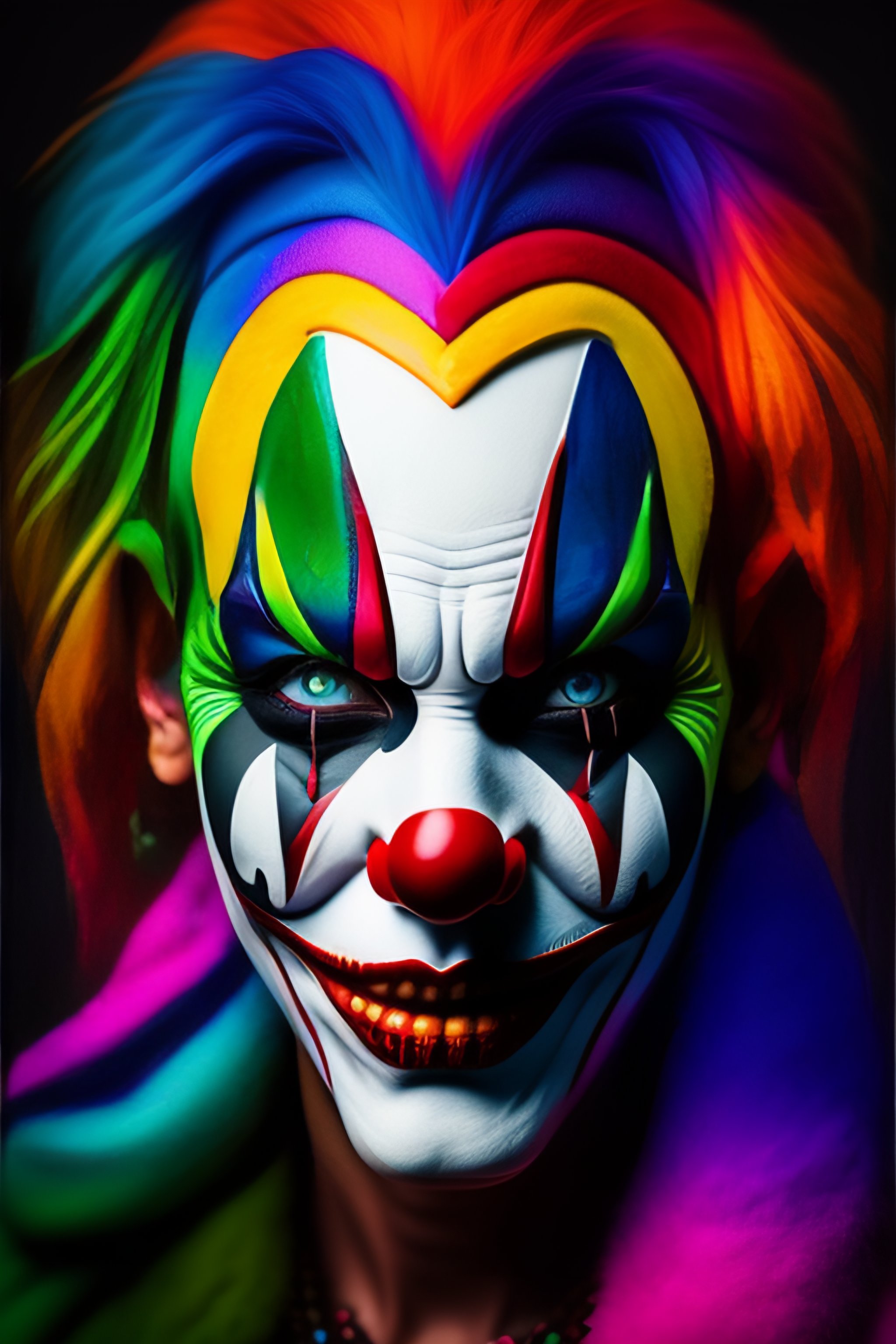 Colorful portraits of a scary masked clown stunning wallpapers, very very detailed, amoled, 4k hdr, intrinsic details, vividcolors, vibrant