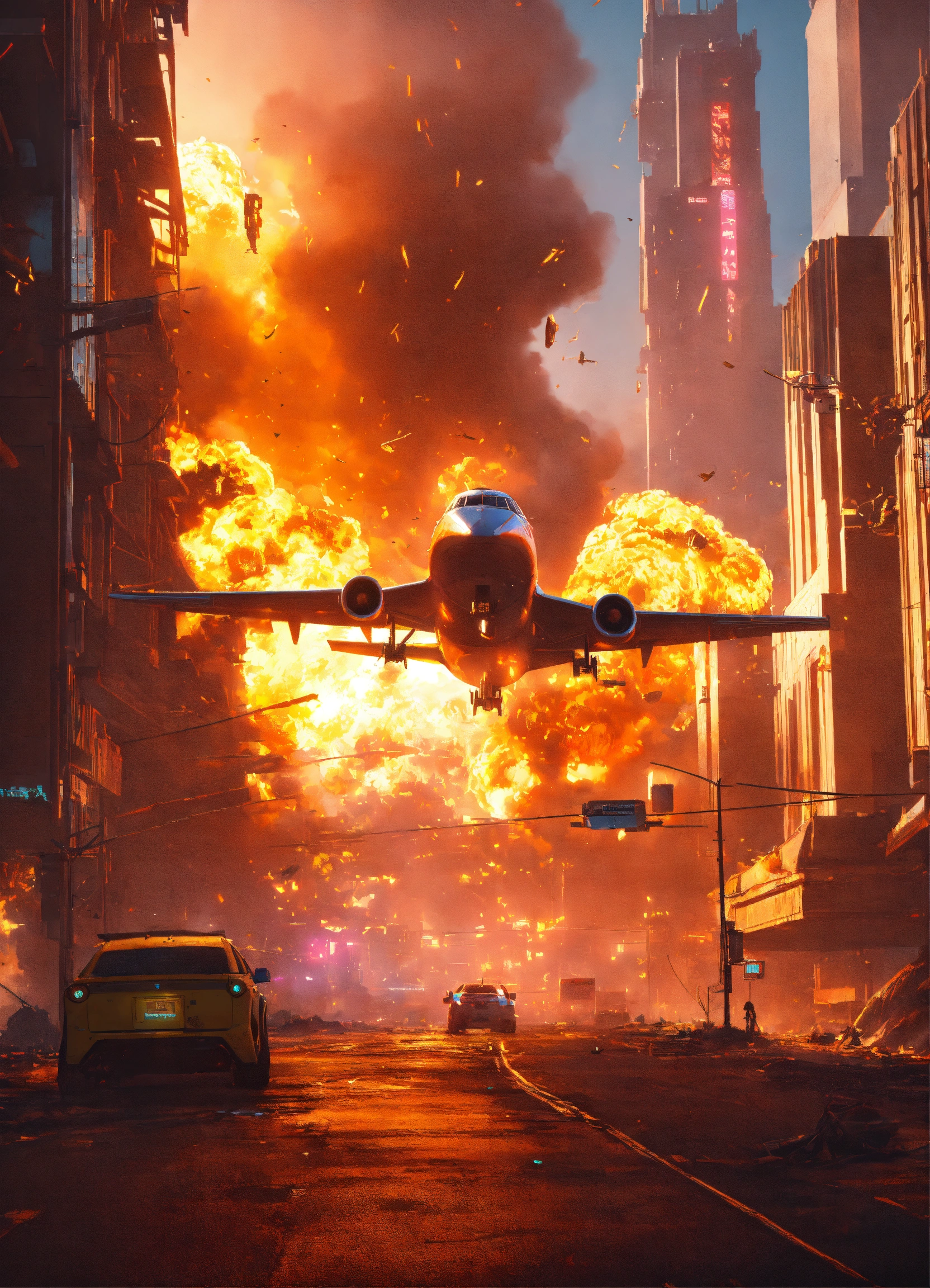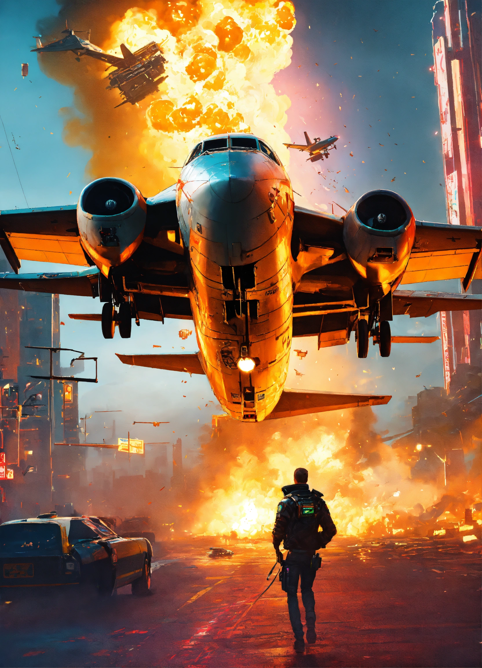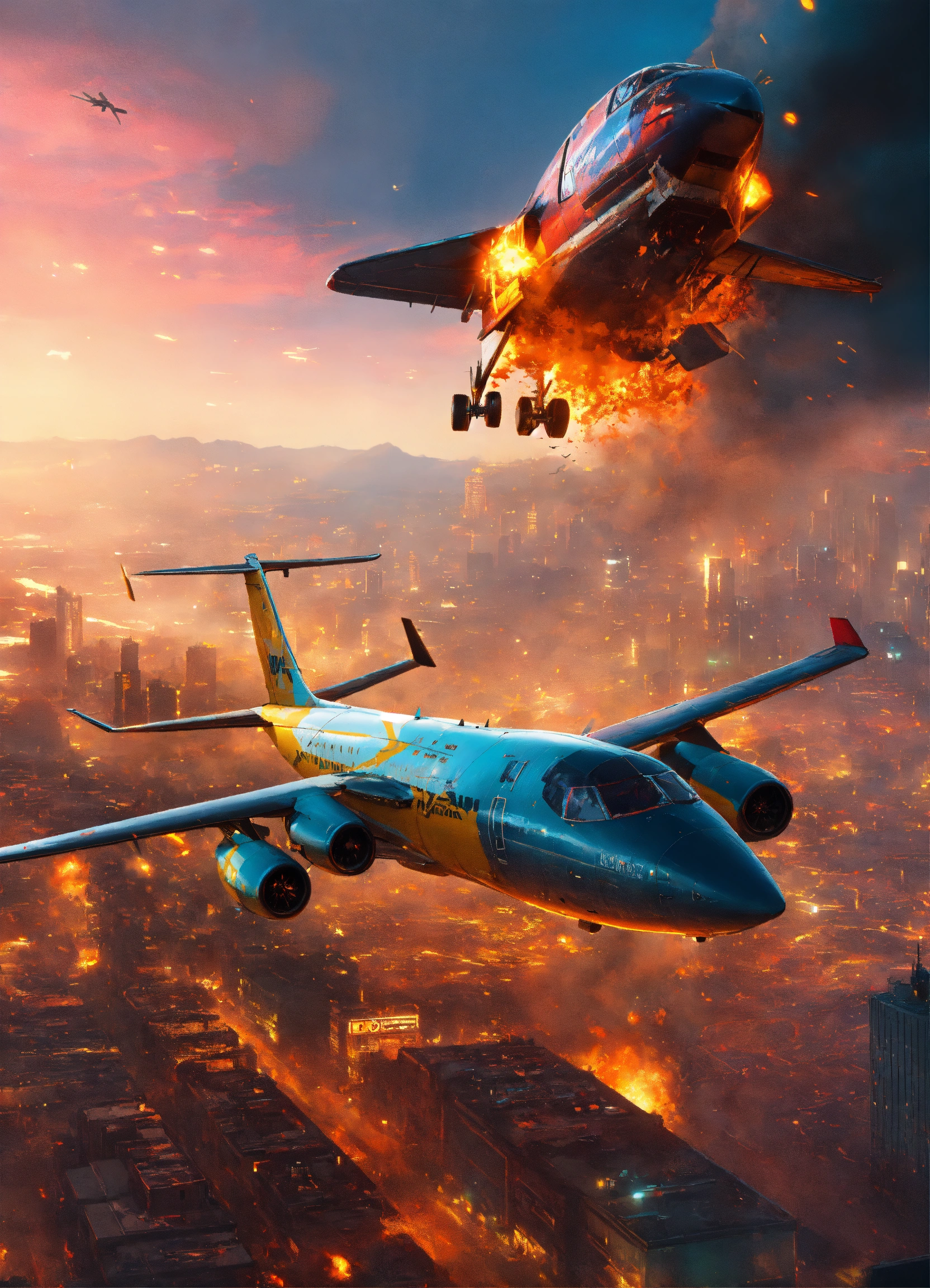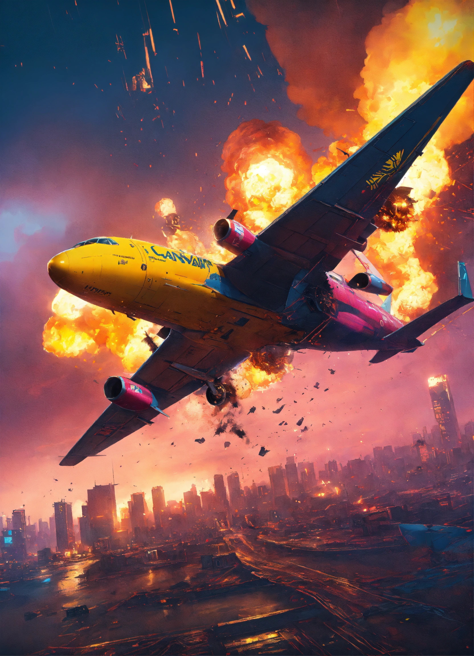 Passanger airplane crashing over night city