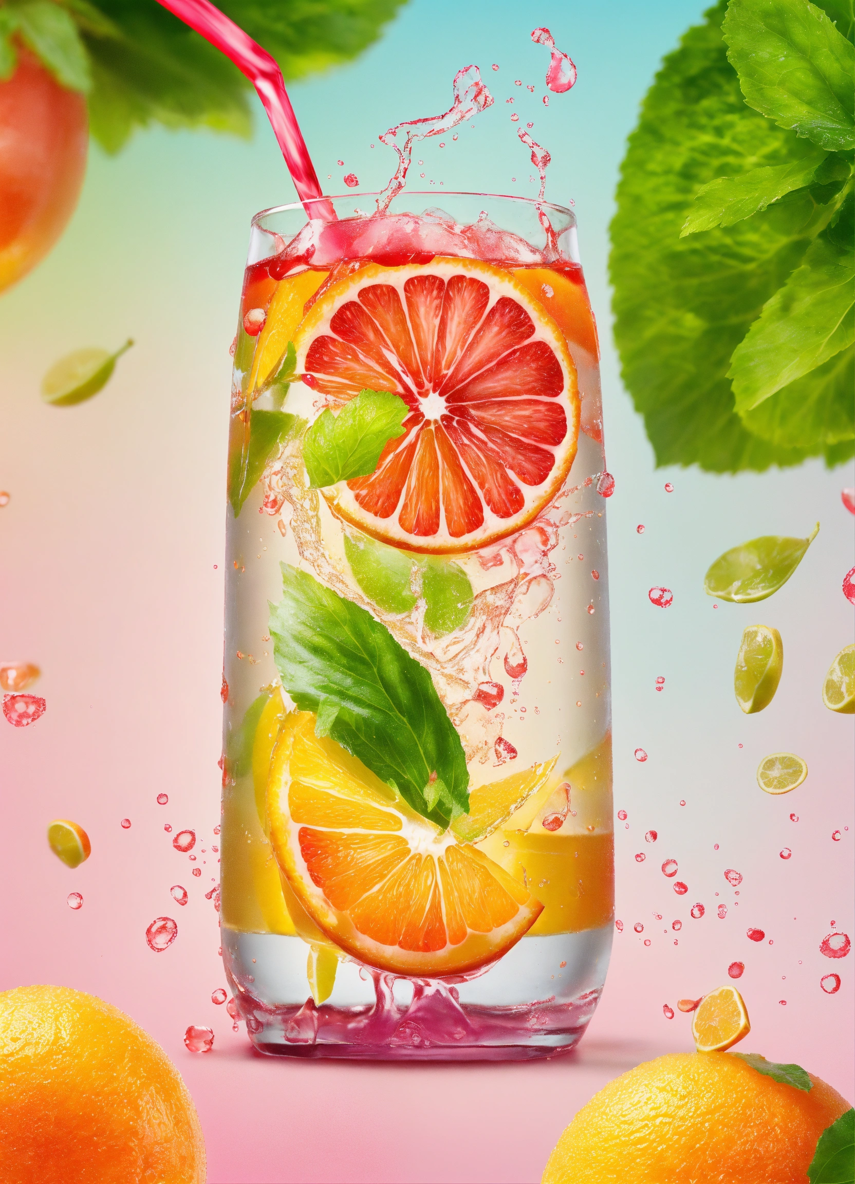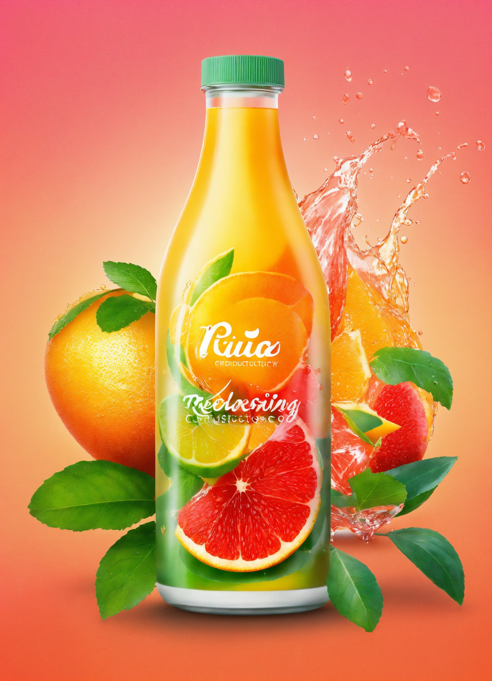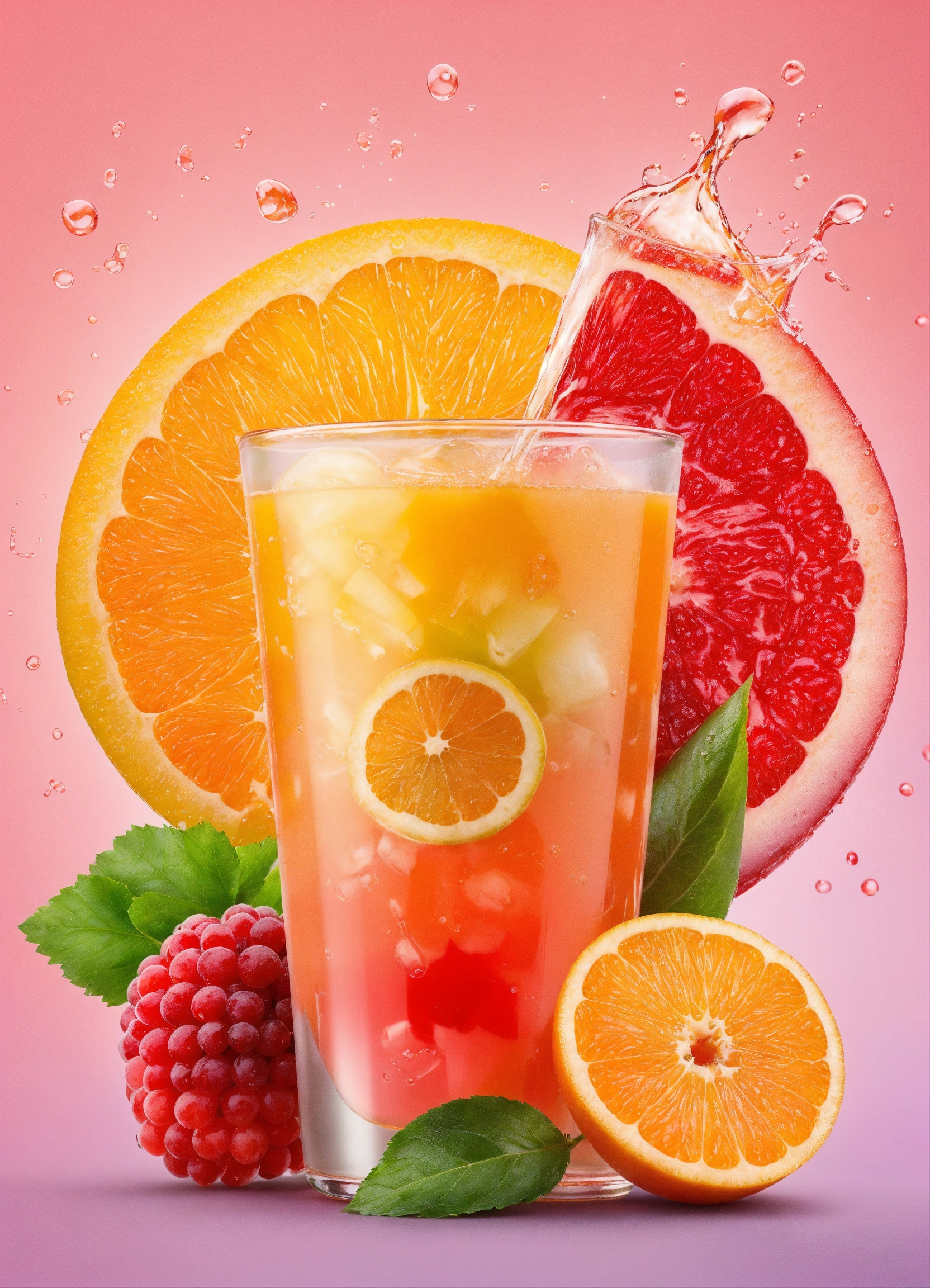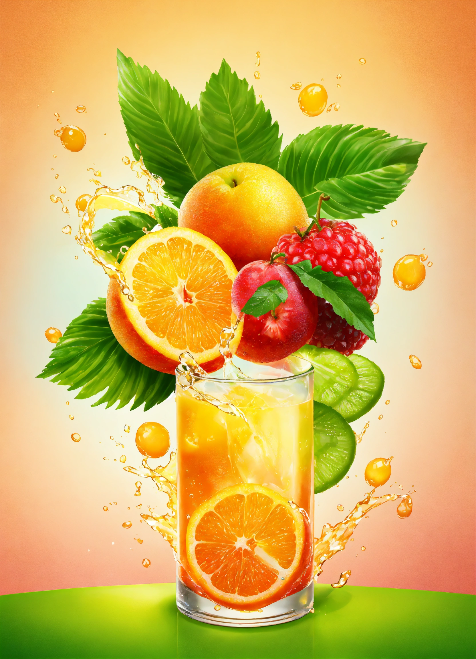 Create logo company subject production of natural refreshing drinks. logo image of a fresh, juicy fruit, from which a refreshing drop of juice flows. bright colors are associated with nature and freshness 8k