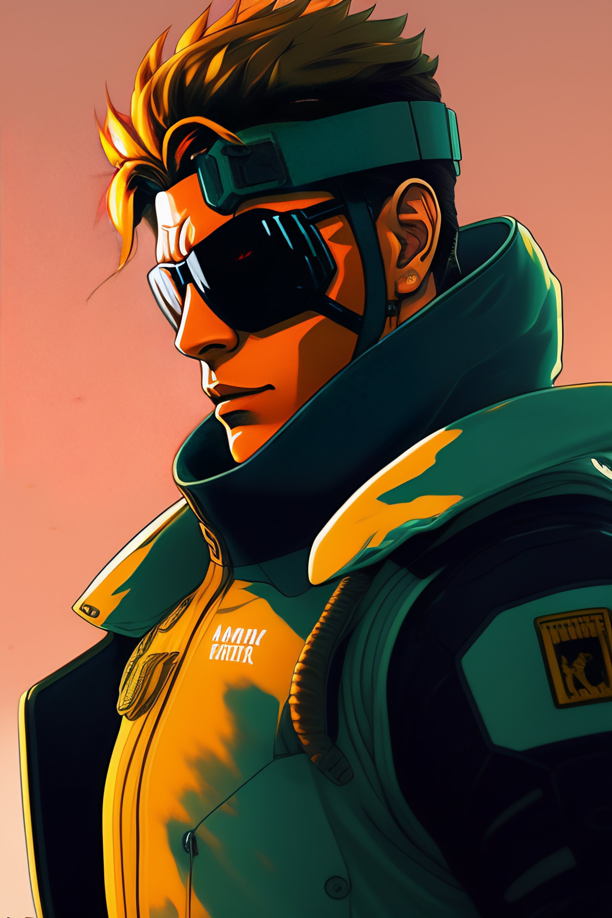 Metal gear solid snake as cyborg, style of laurie greasley, studio ghibli, akira toriyama, james gilleard, genshin impact, trending pixiv fanbox, acrylic palette knife, 4k, vibrant colors, devinart, trending on artstation, low details