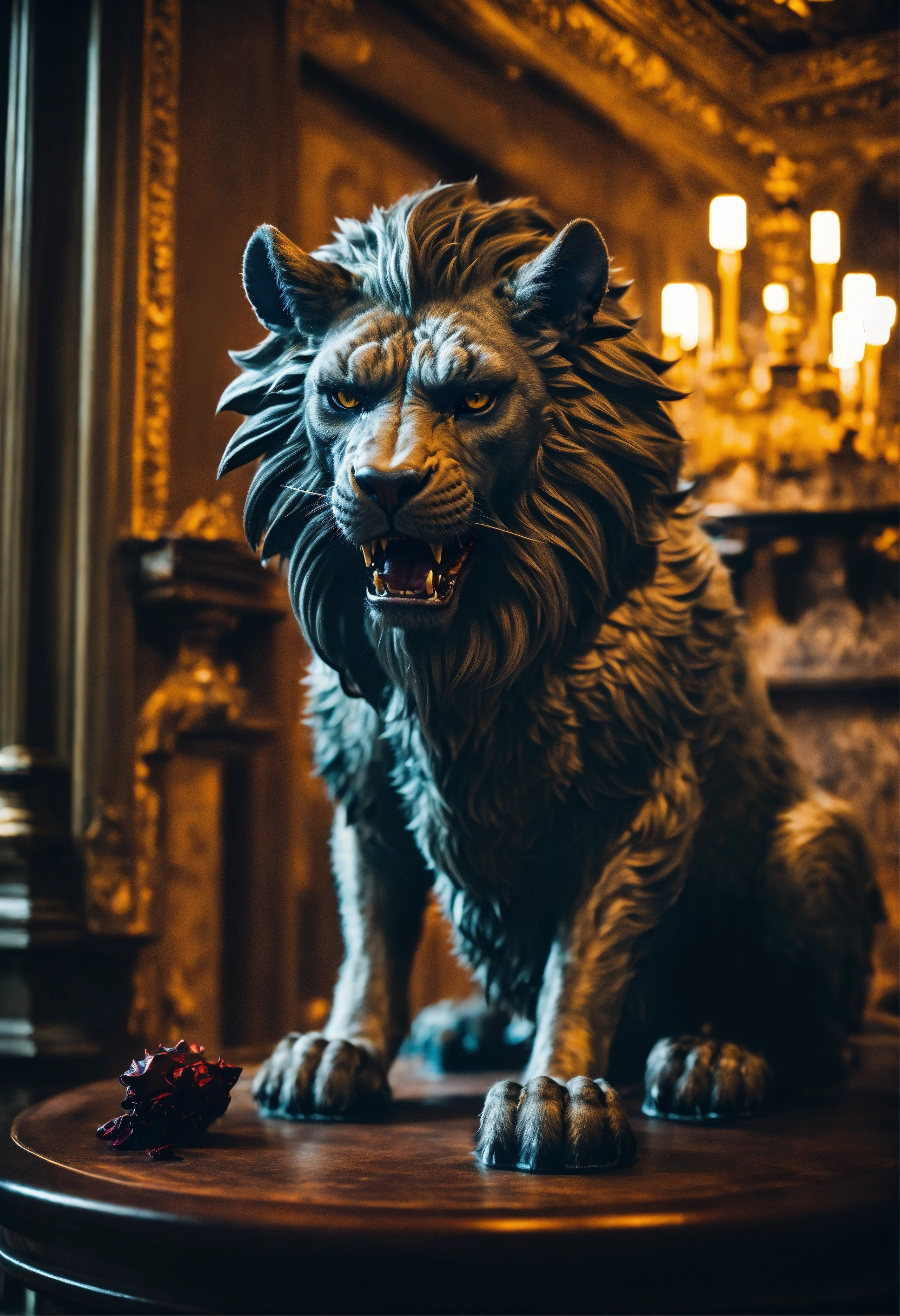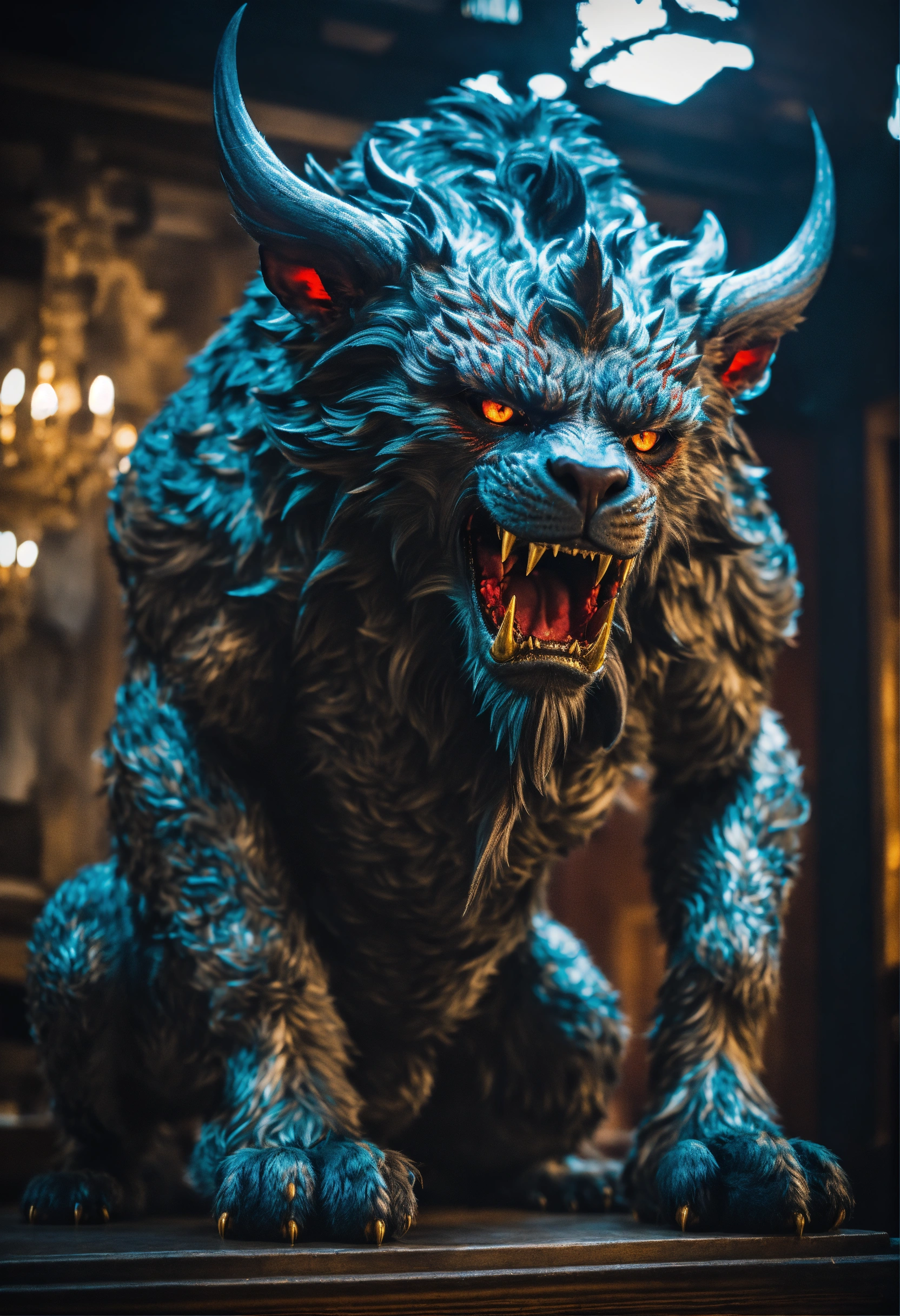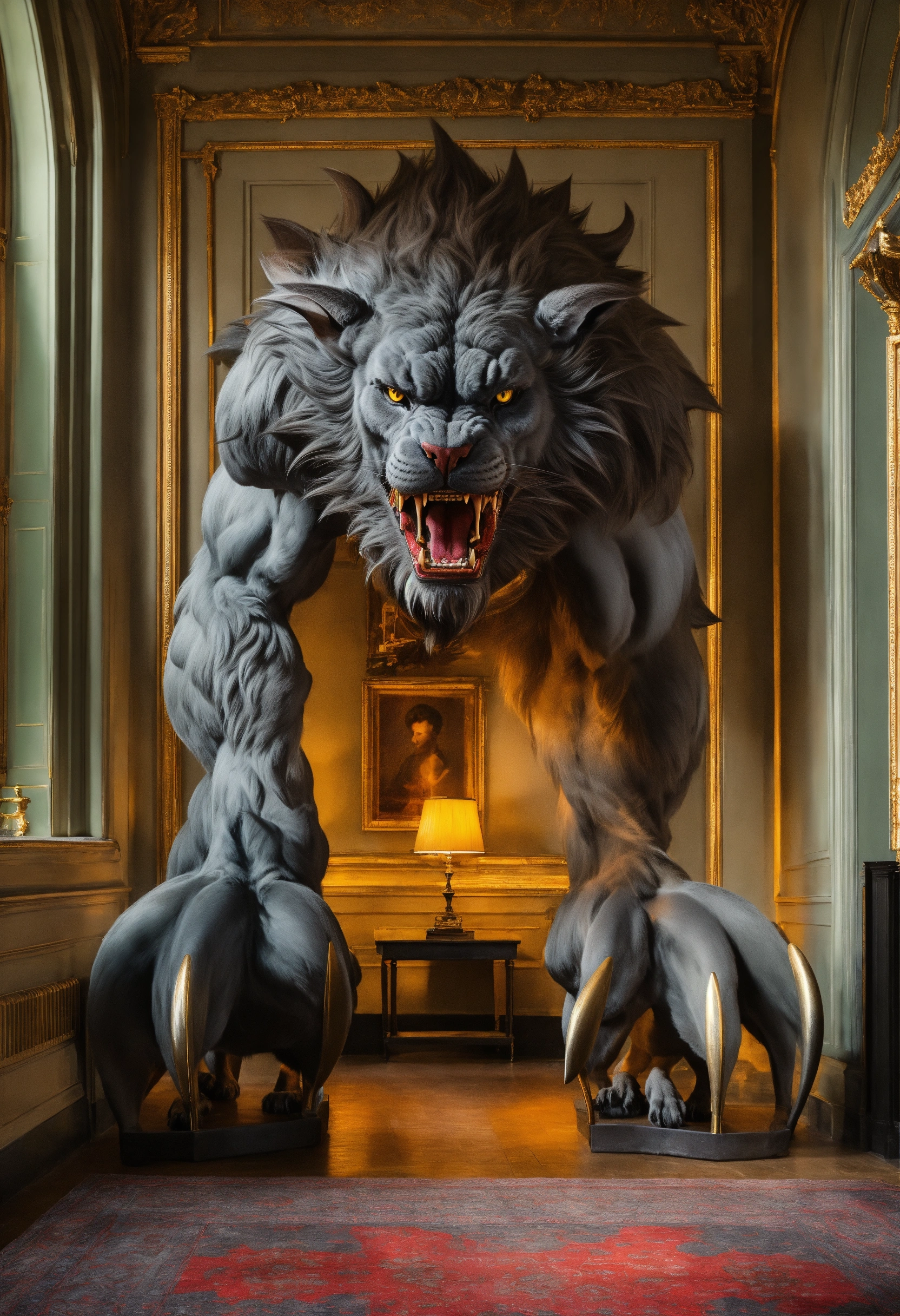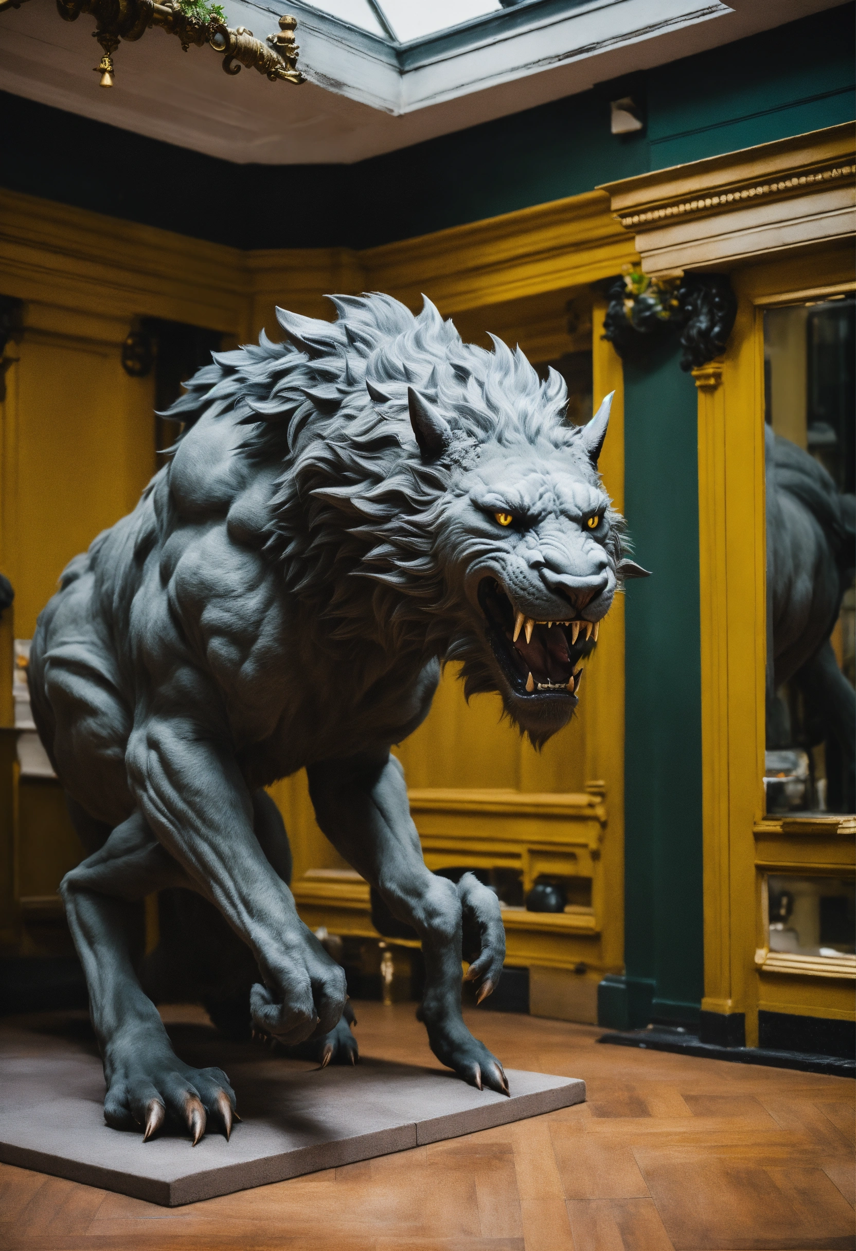 Mad mysterious angry grey beast in beautiful strong like colours london interior