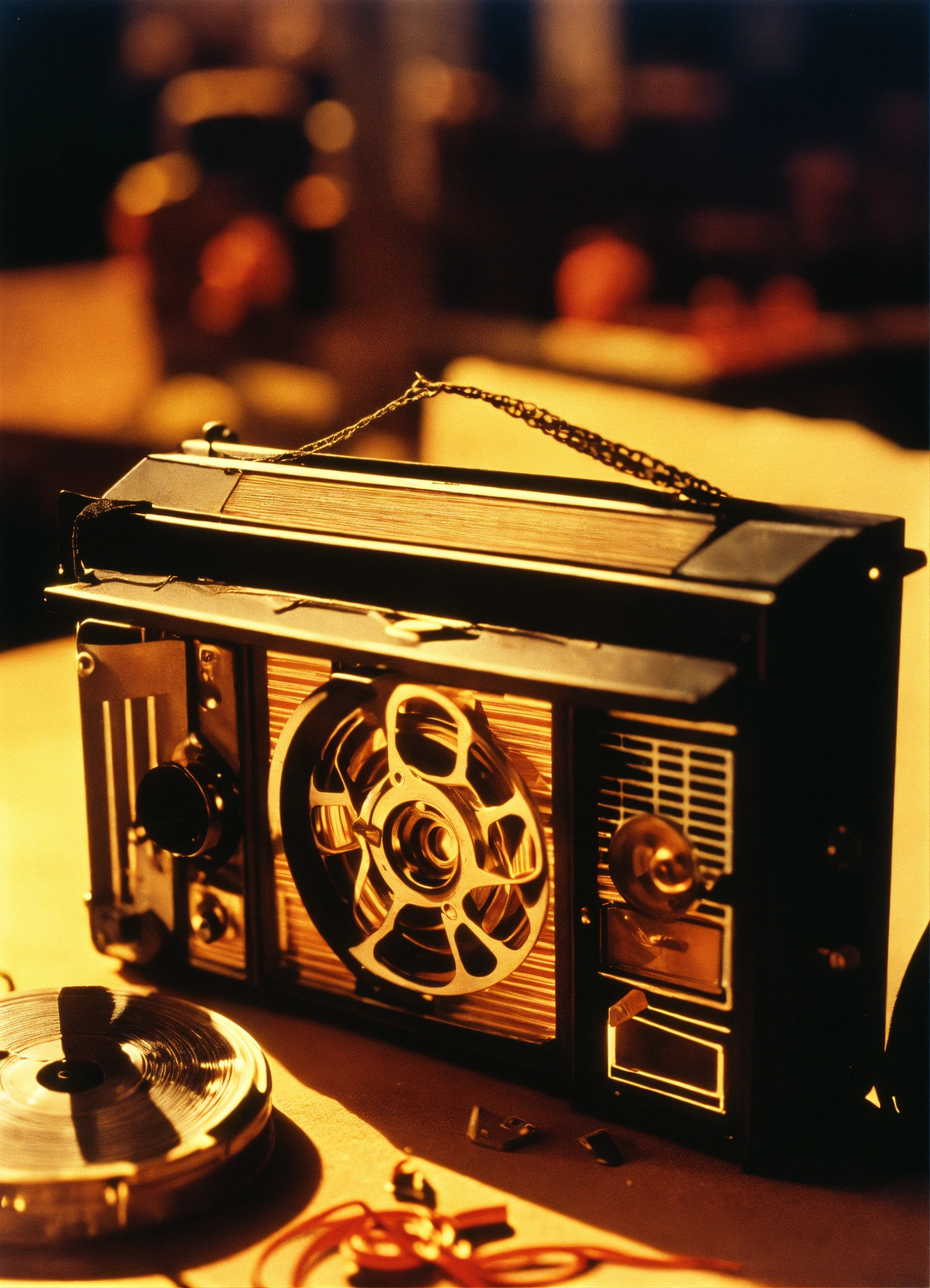1990s film photograph of unravelled movie film with a cinema theme