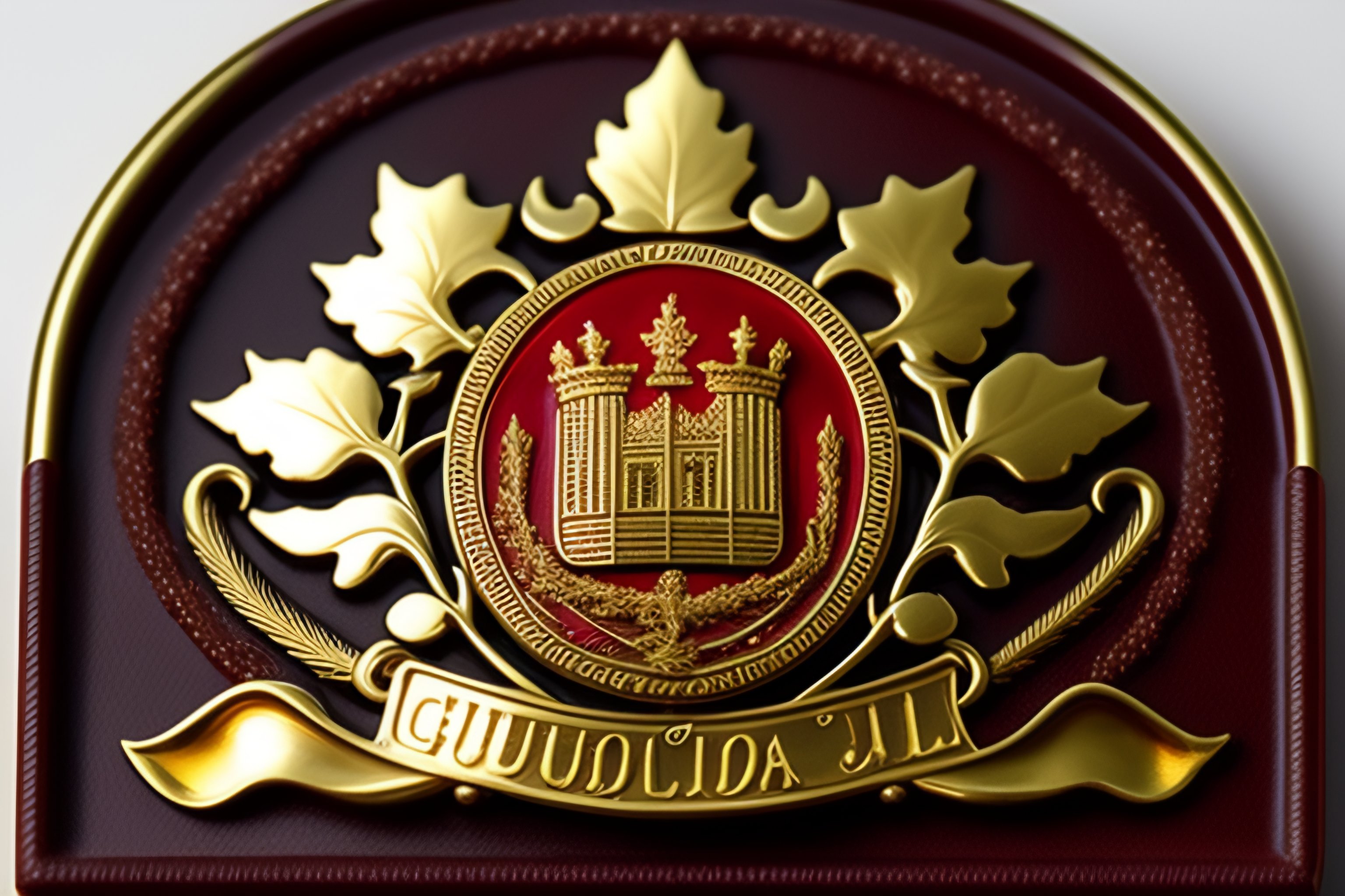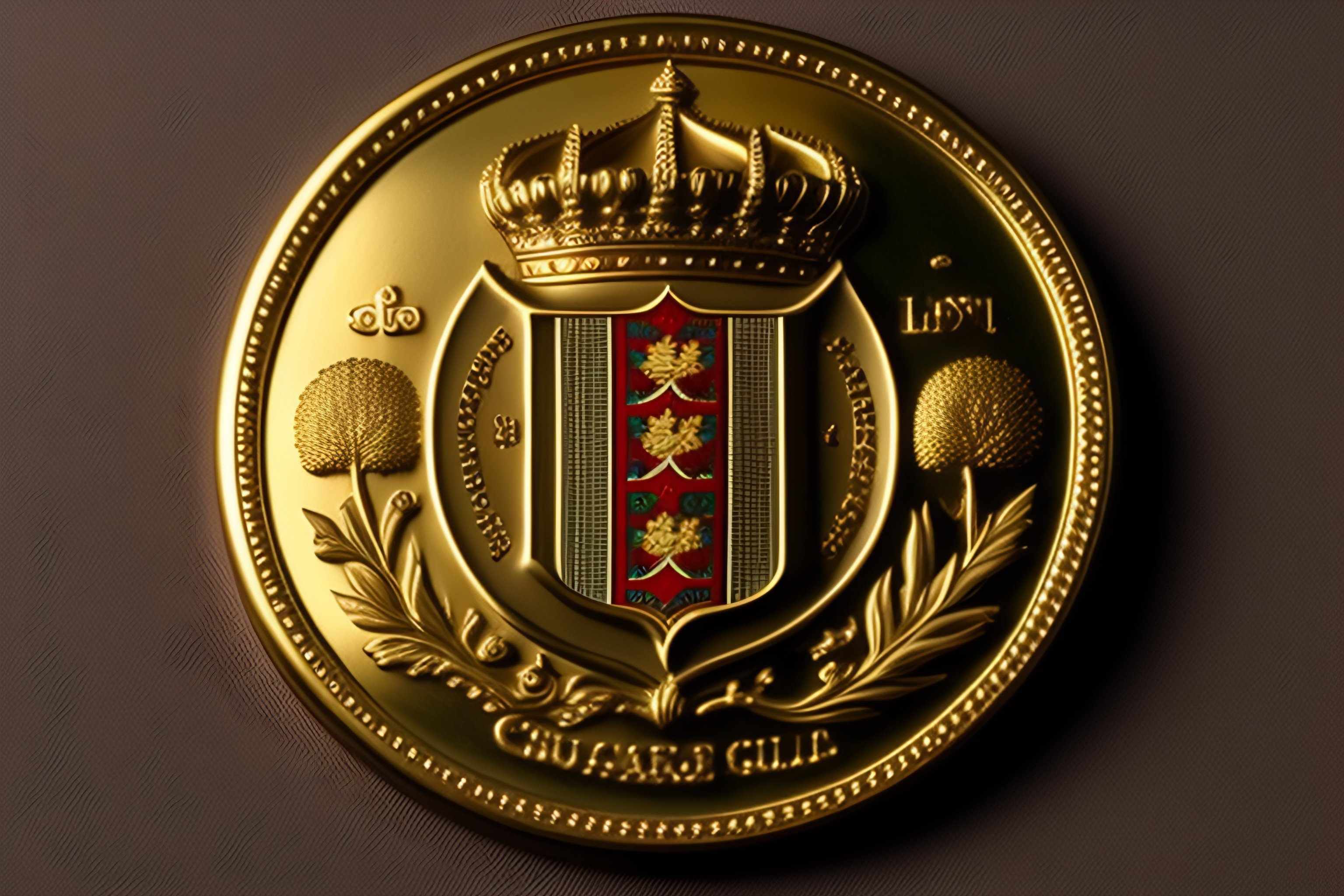 Escudo cuartelado: al primero y al cuarto, de plata, una cruz llena de gules; y al segundo y al tercero, de oro, cuatro palos de gules. por timbre, una corona real (cerrada).