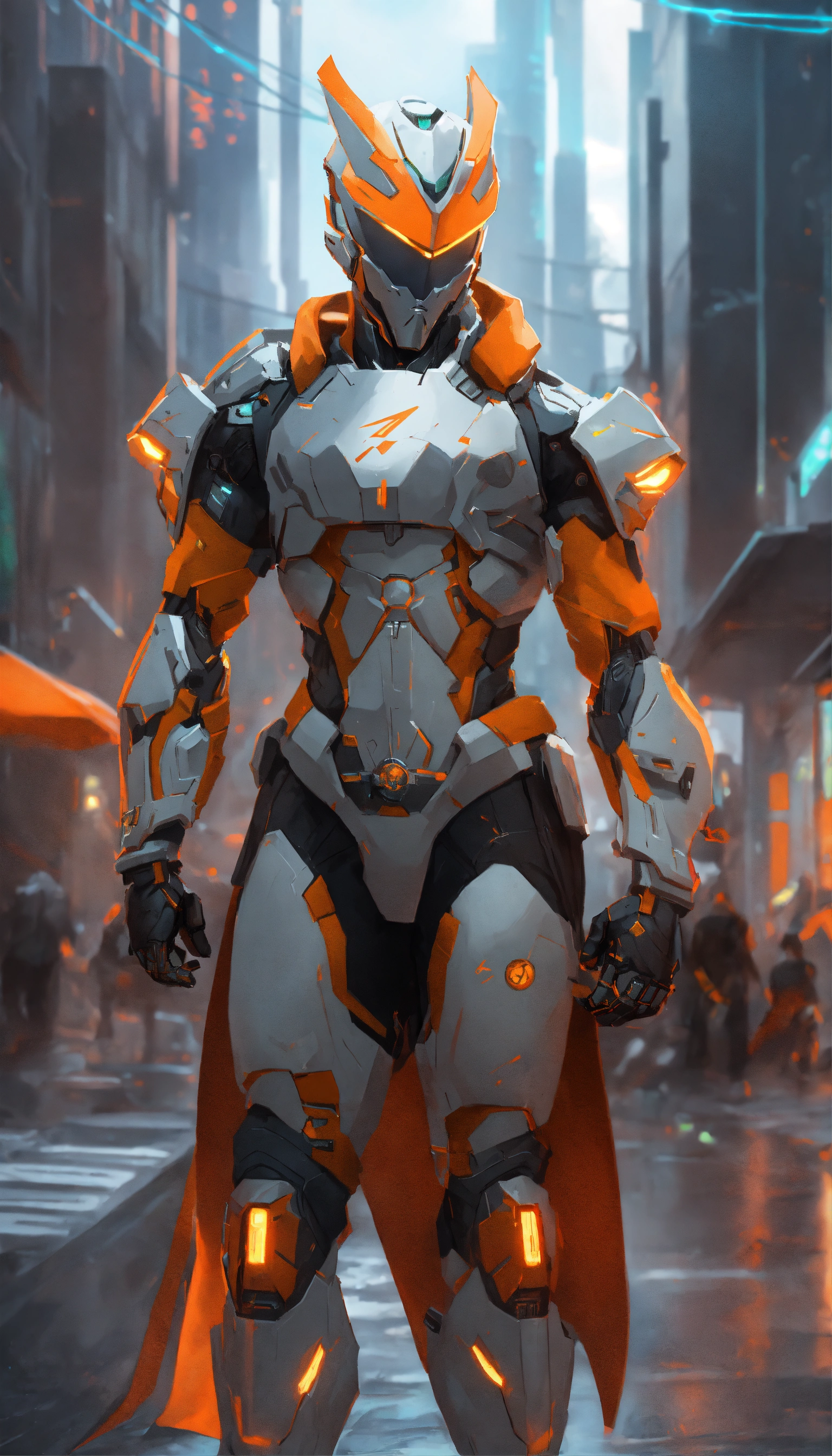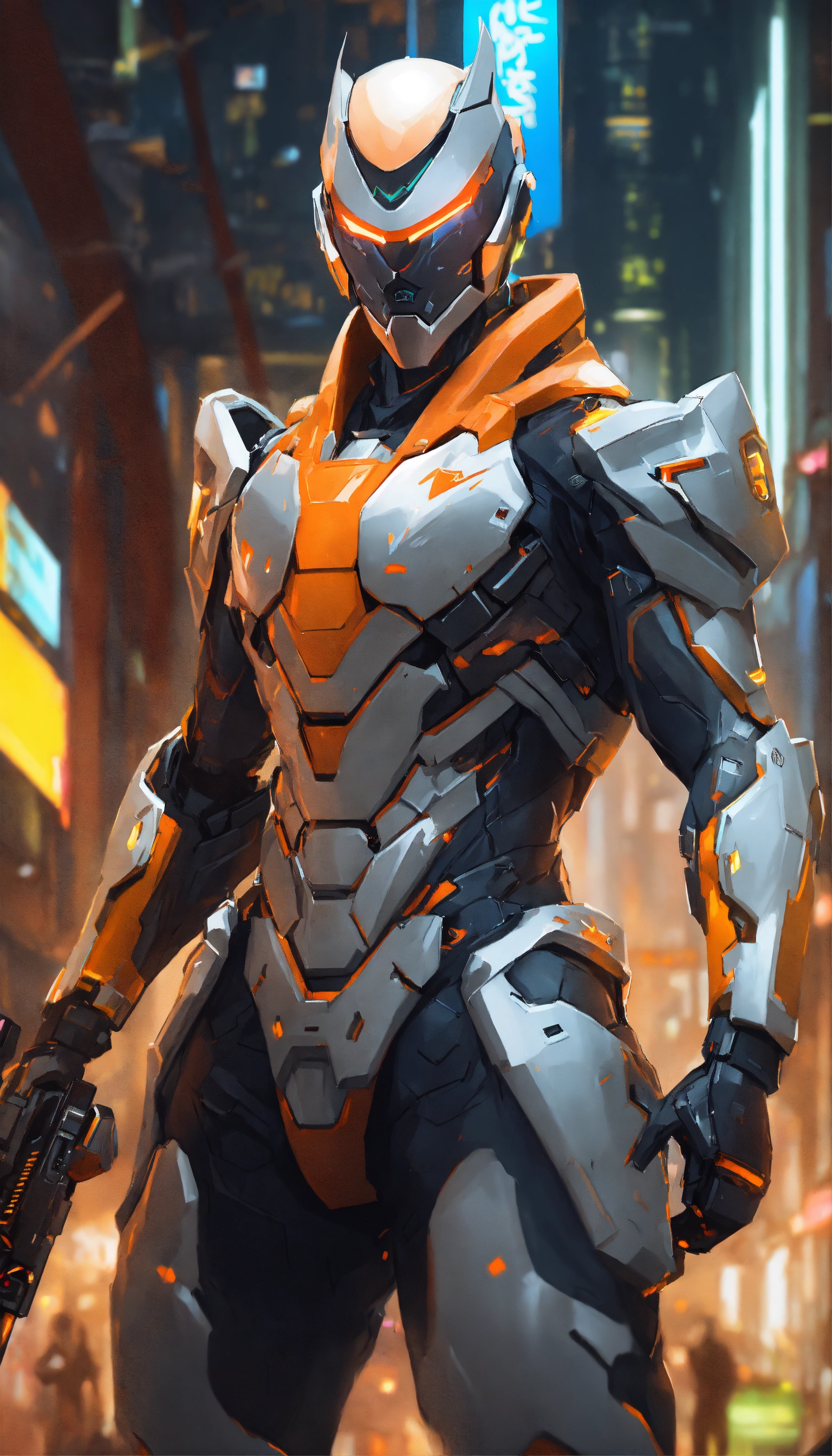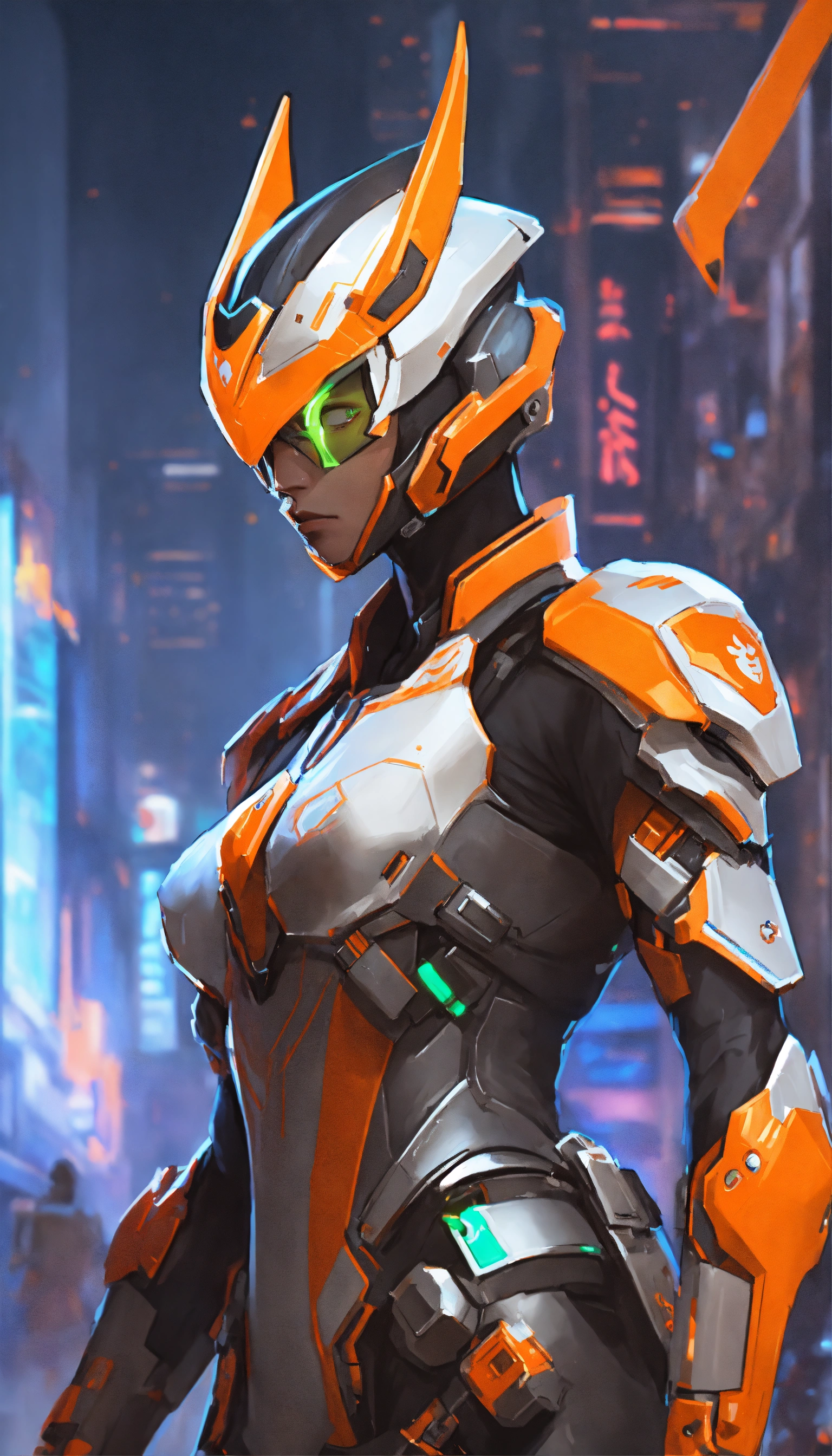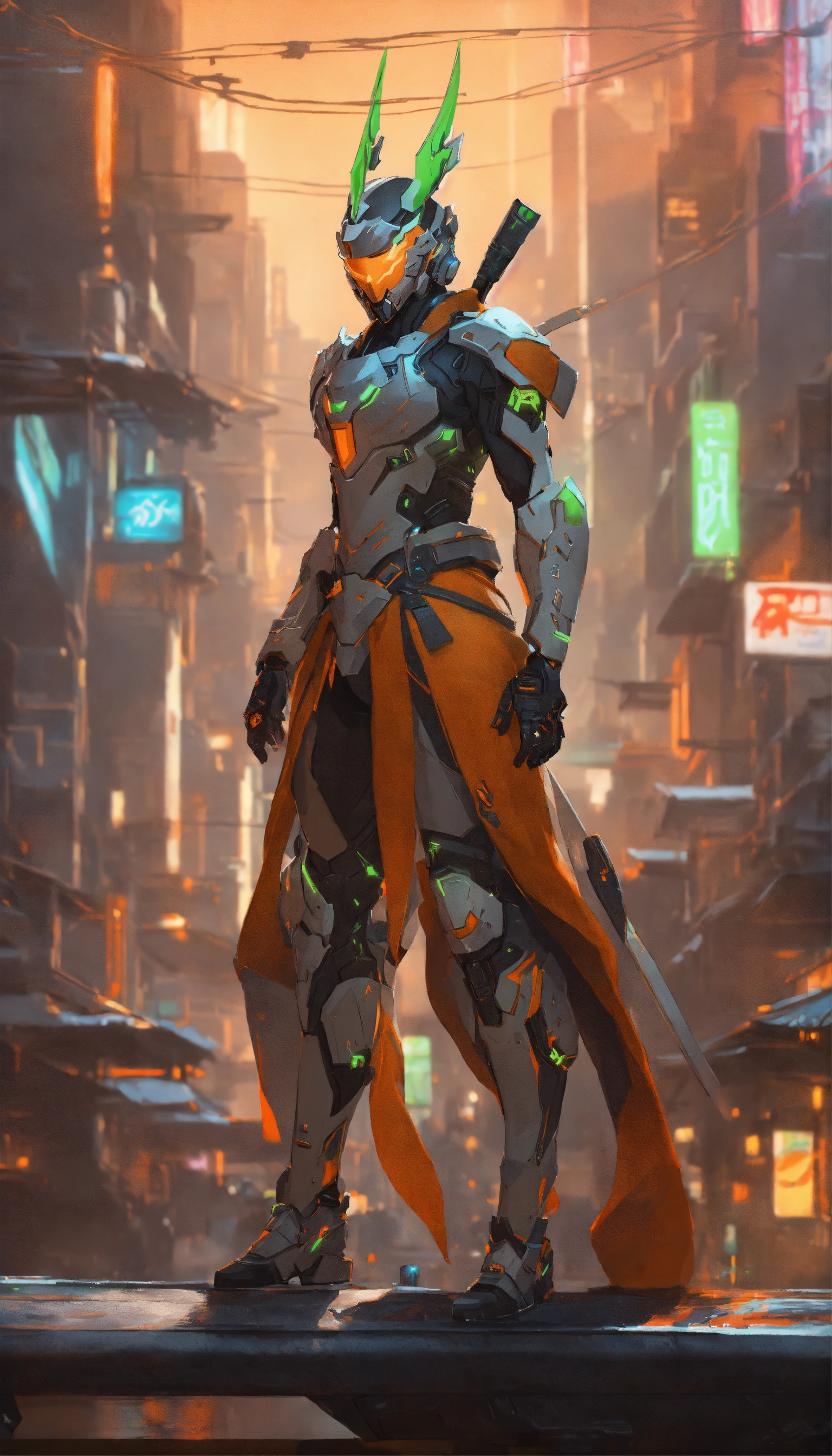 Genji overwatch gray and orange, featuring a off white and orange color scheme, the scene is set in a futuristic cyberpunk cityscape, with neon lights illuminating the surroundings, the artwork is highly detailed and intricate, with a sharp focus on genji's cybernetic enhancements and the fluid movement of his swift attacks, created in a digital painting style, this piece is trending on artstation and captures the intensity and essence of genji's character, reference artists for inspiration include artgerm, greg rutkowski, and jiří barbacha