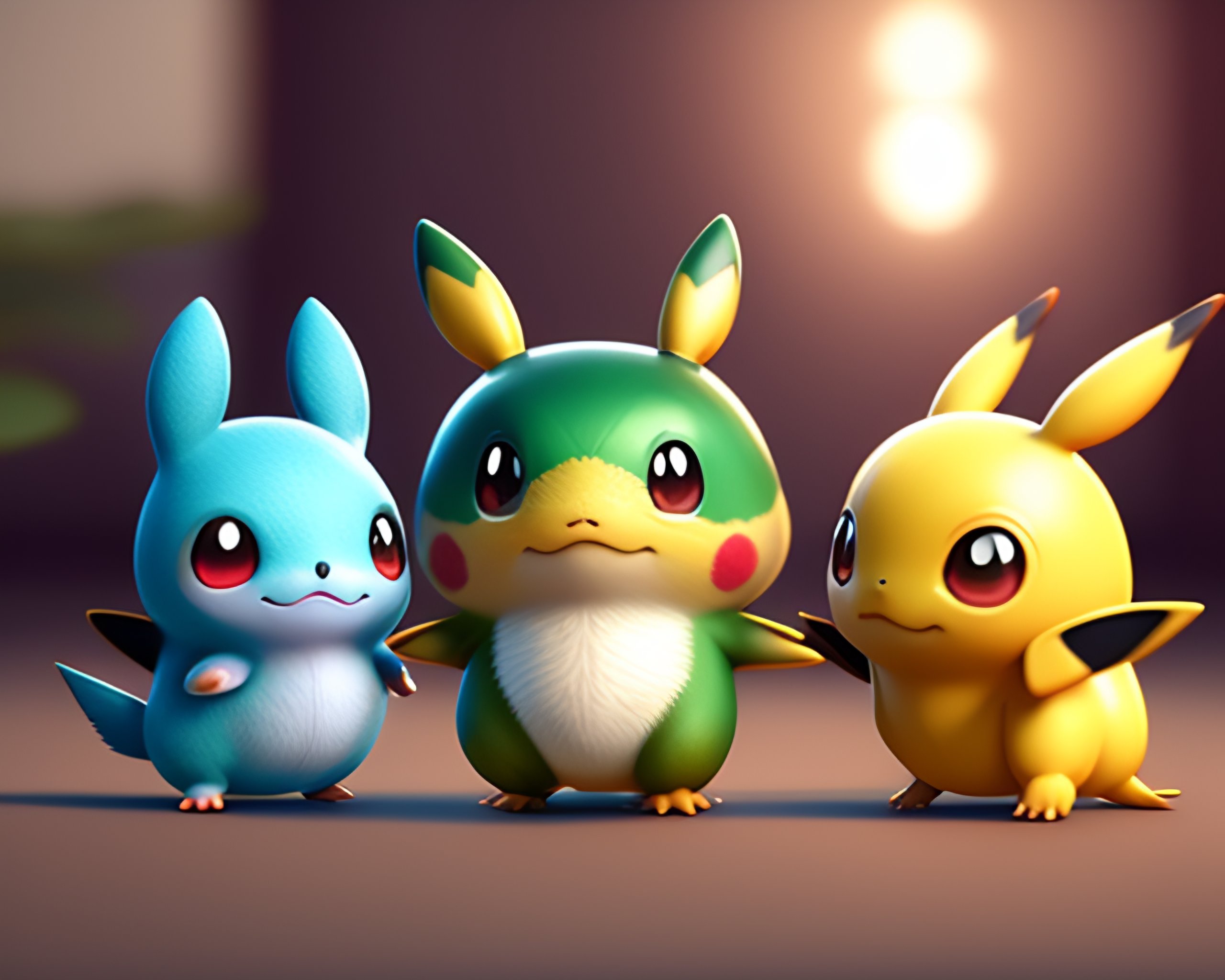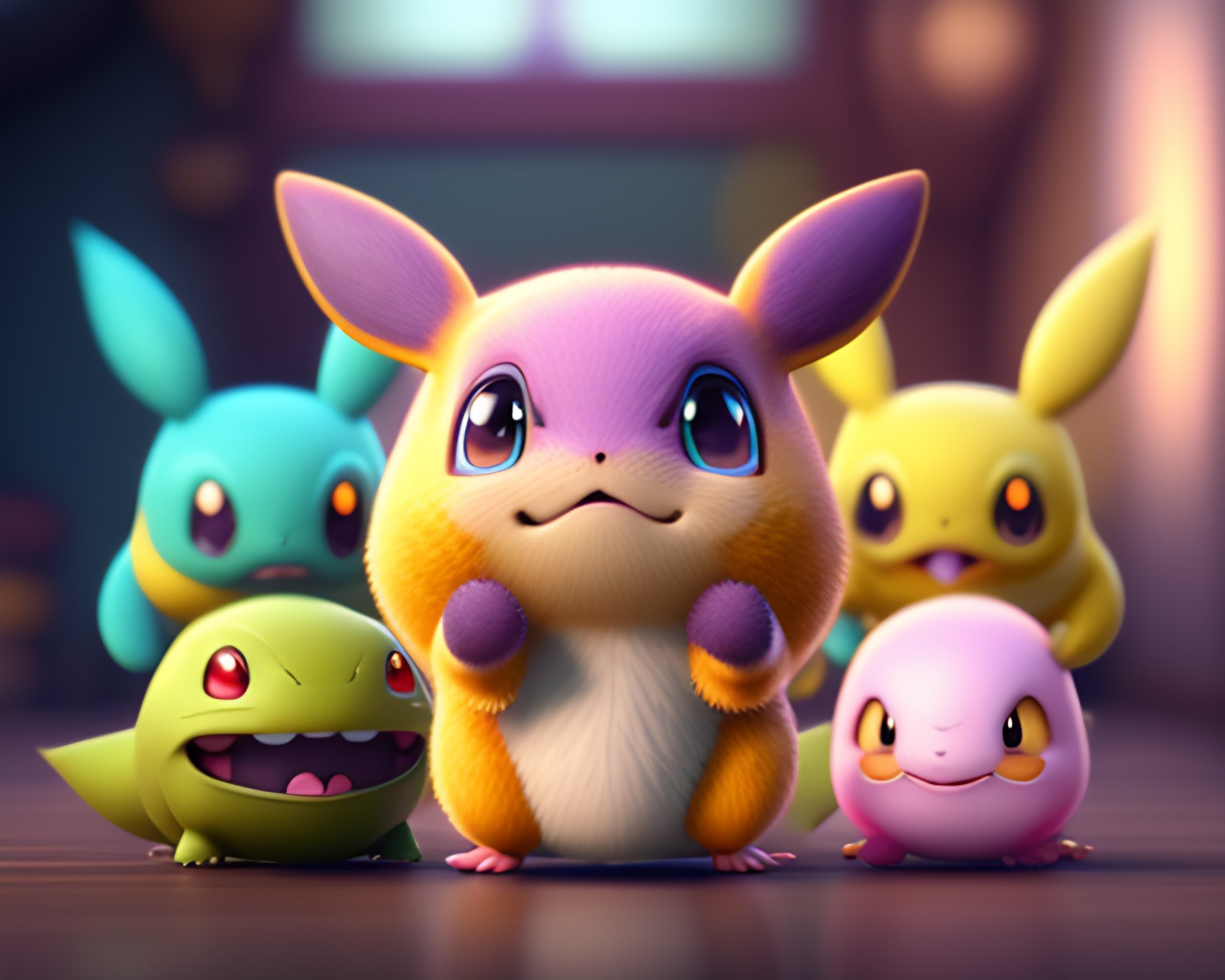 Group of cute small pokemon characters with let harking, big smile, one feather up waving to the camera, unreal engine, cozy indoor lighting, artstation, detailed, digital painting, cinematic, character design by mark ryden and pixar, octane render