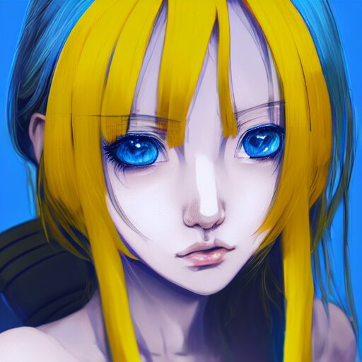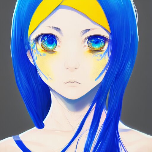 A portrait of anime ukrainian blue and yellow girl, concept art, trending on artstation, highly detailed, intricate, sharp focus, digital art, 8 k