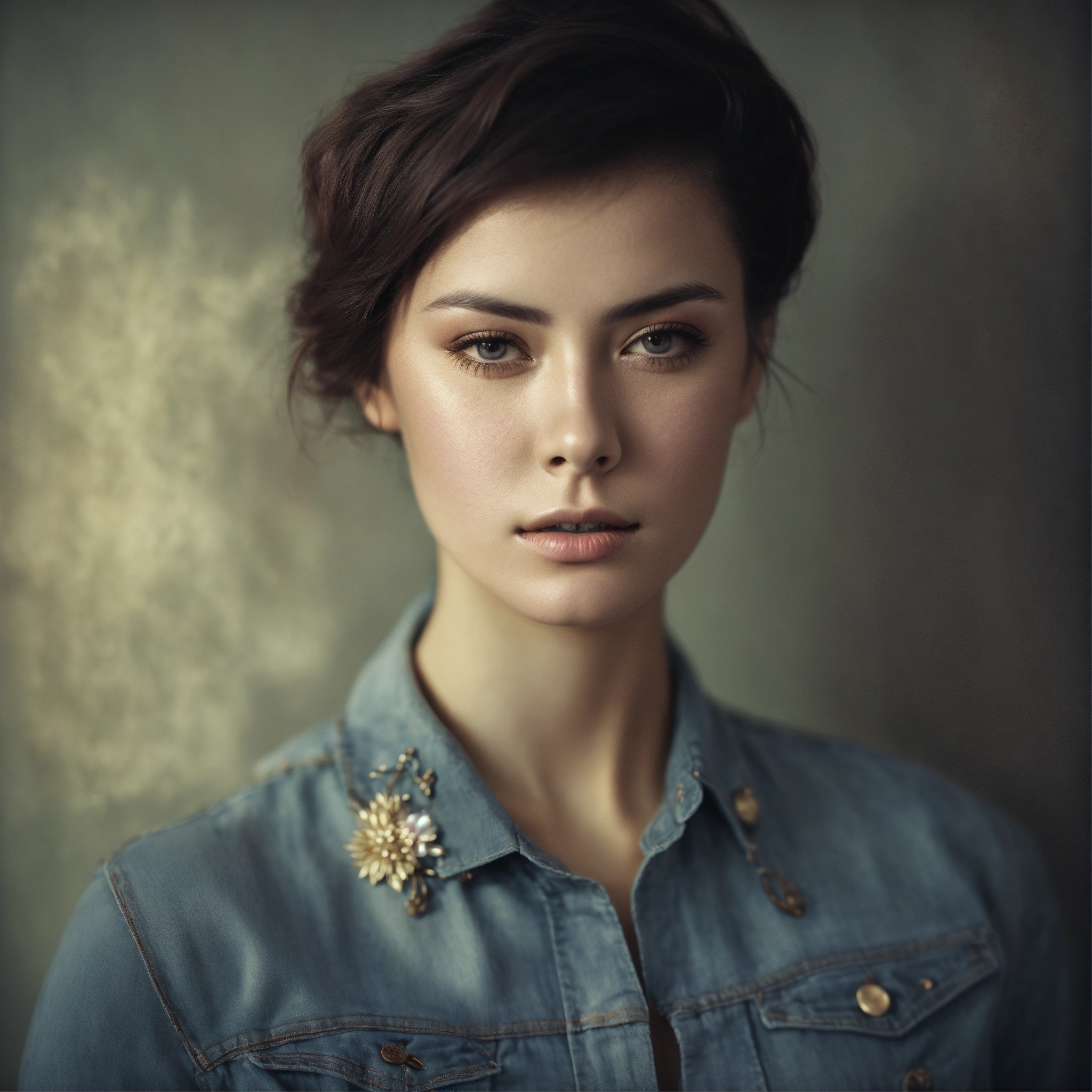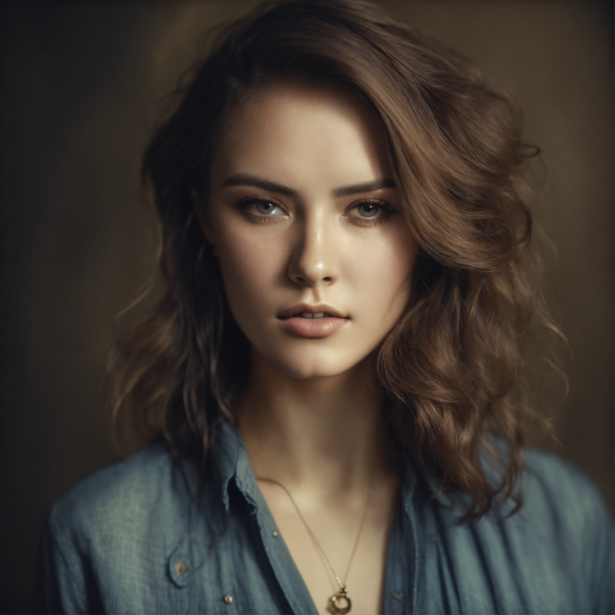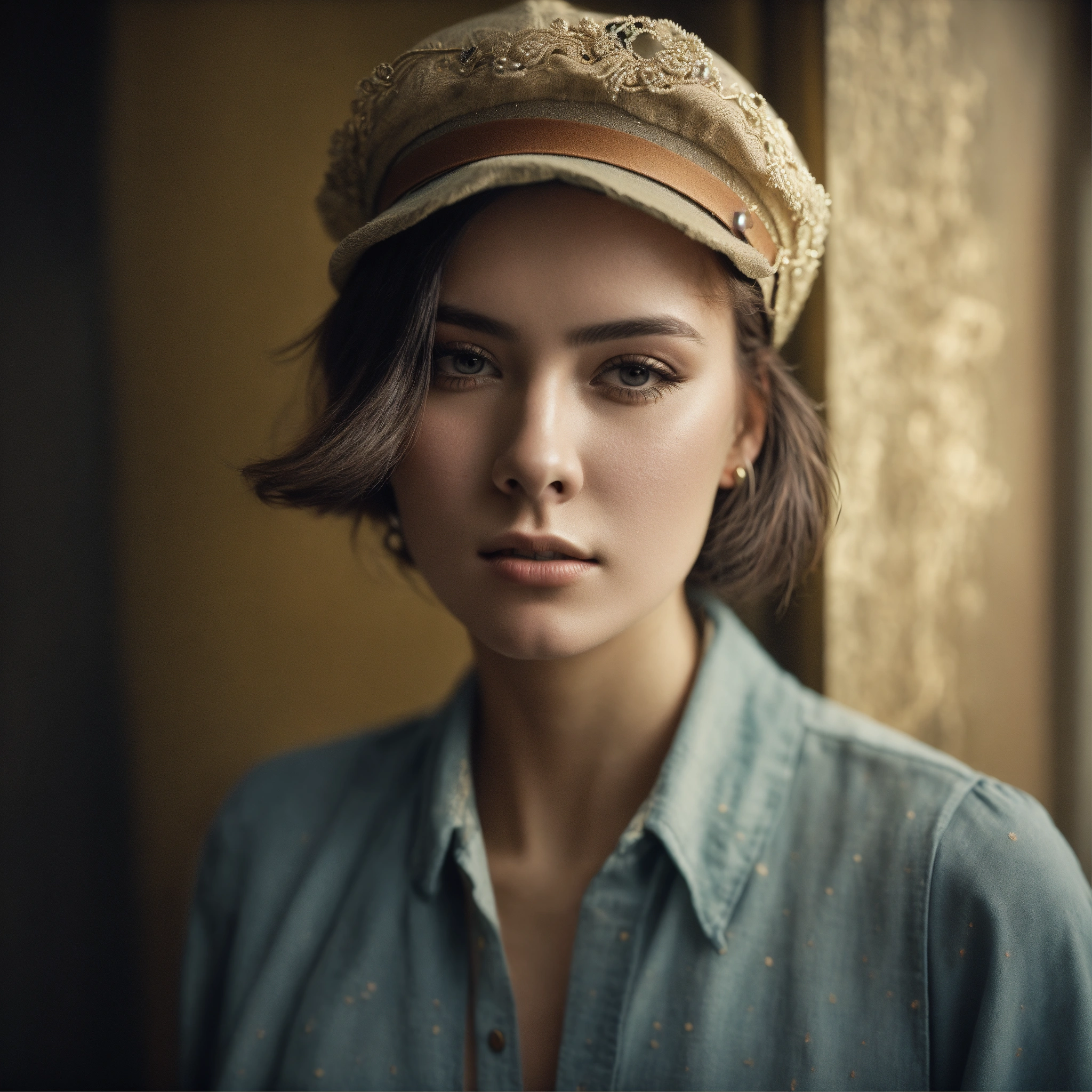 Close up studio photo of a young yet stylish women, faded photo, detailed, studio lighting, medium format