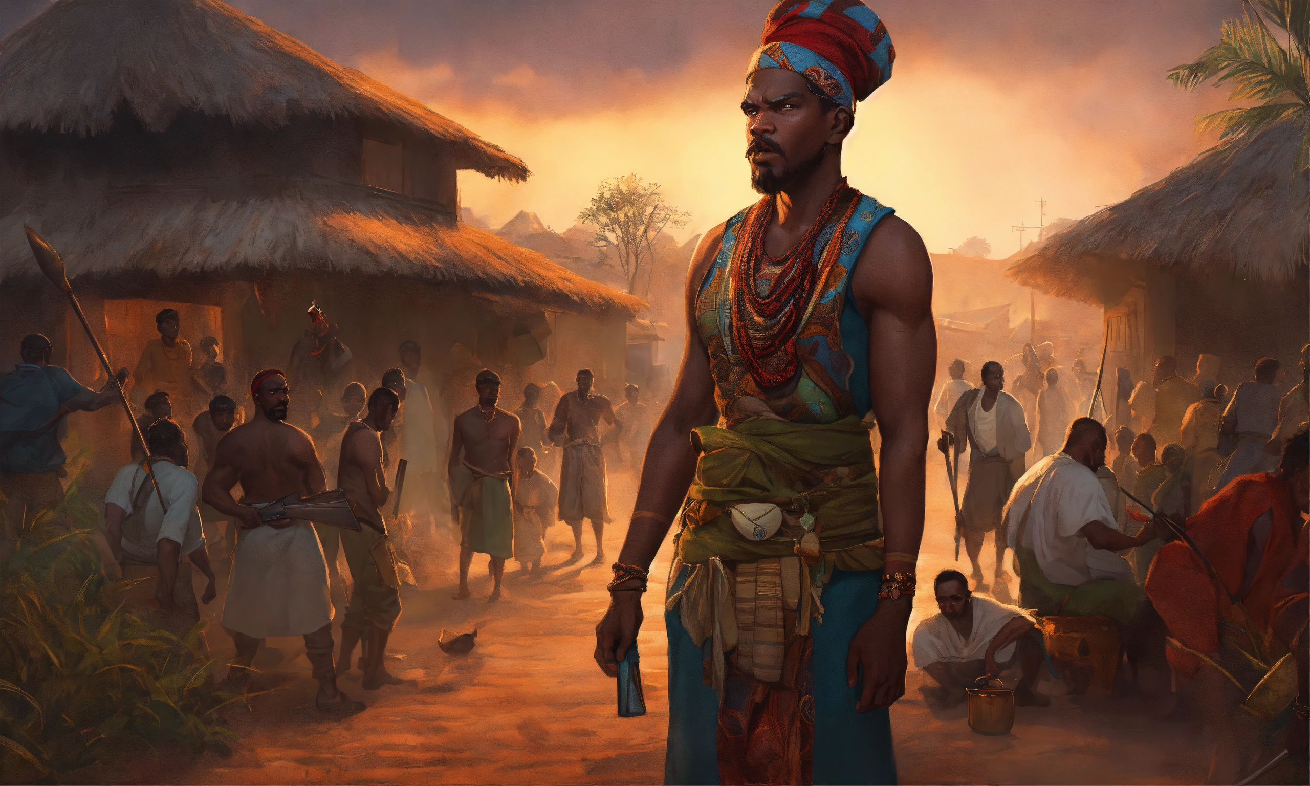 100 angry african villager ready to defend their village against thieves, at nights, highly detailed, smooth, pixar style by tristan eaton stanley artgerm and tom bagshaw, 8k