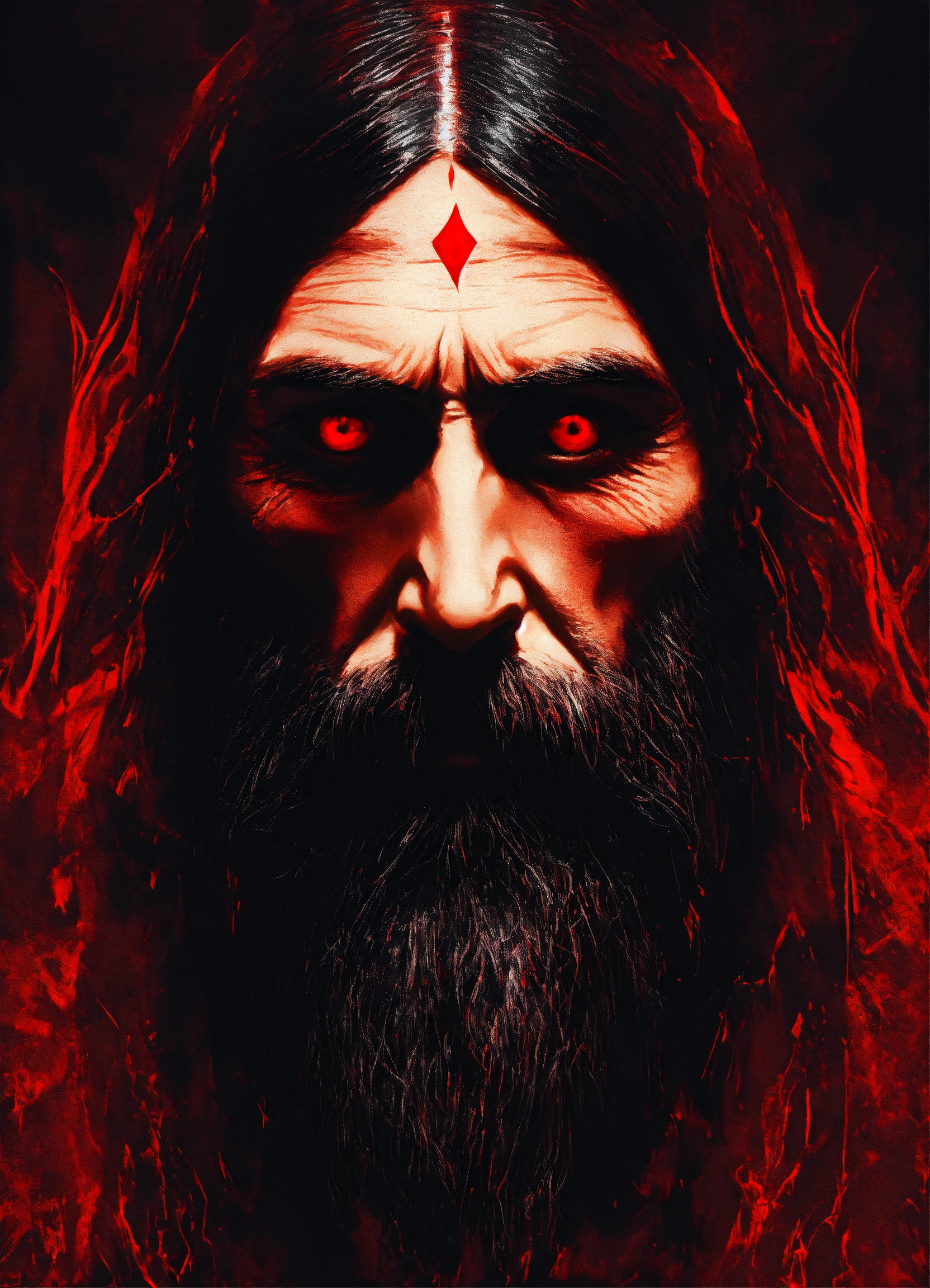 Grigori rasputin with a devil effect in the dark