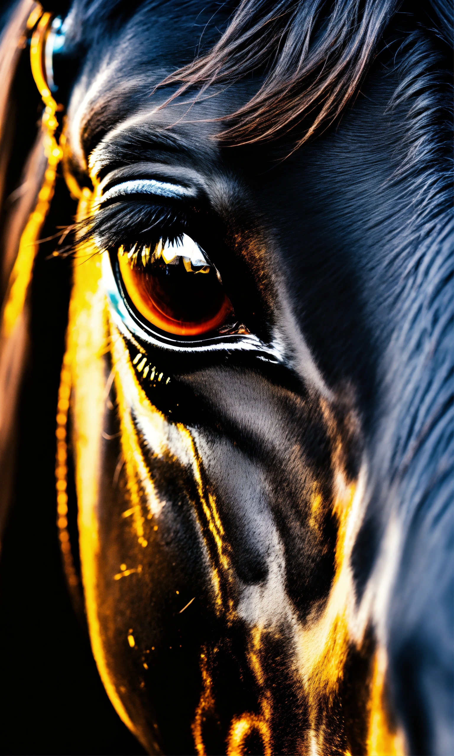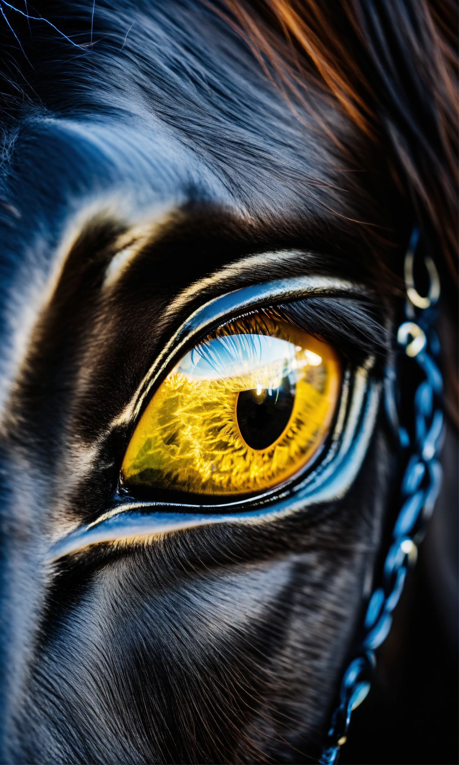 Reflected lightning in a beautiful ultra zoomed deep black horse eye