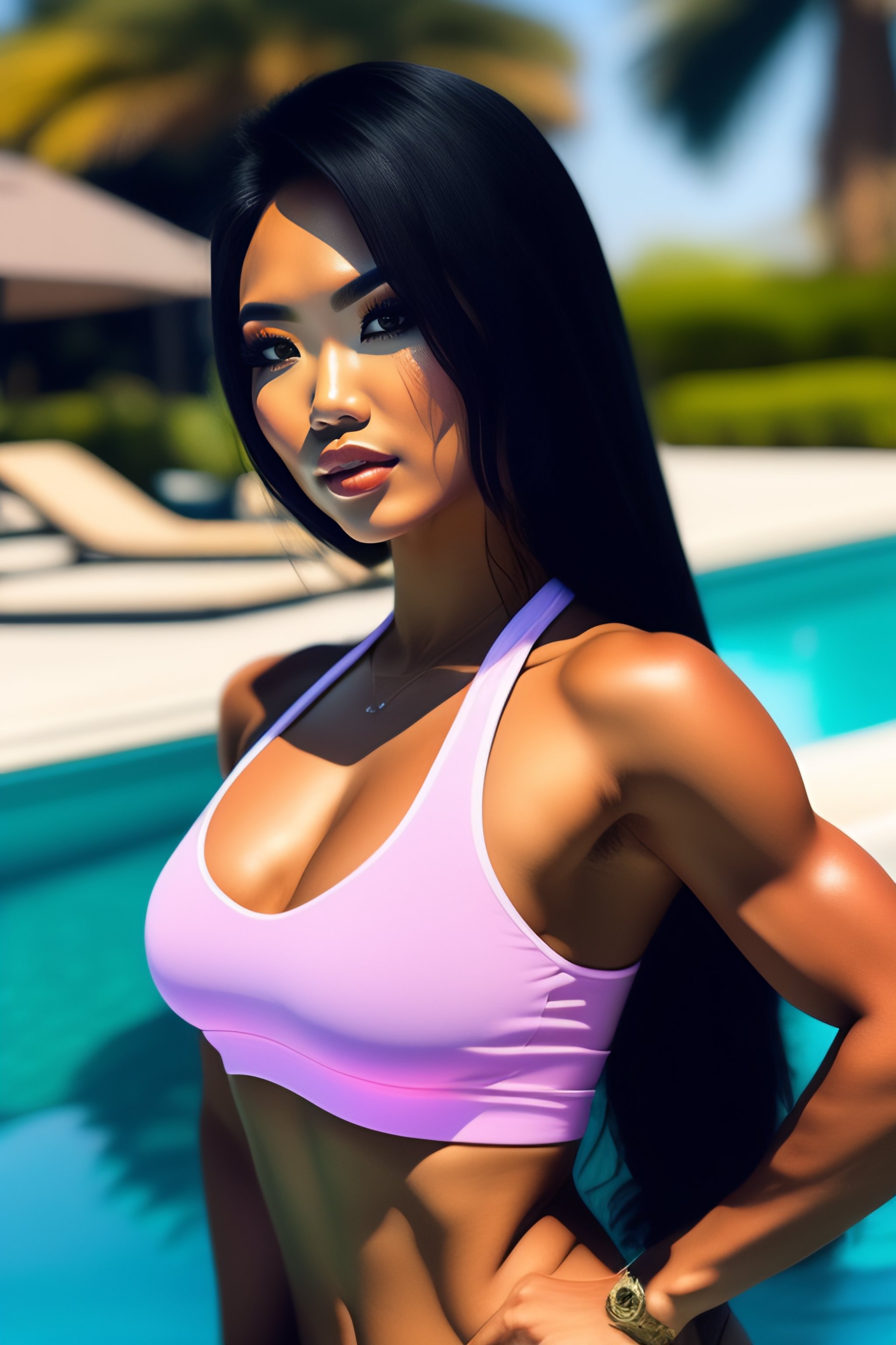 **filipina fitness influencer posing by the pool