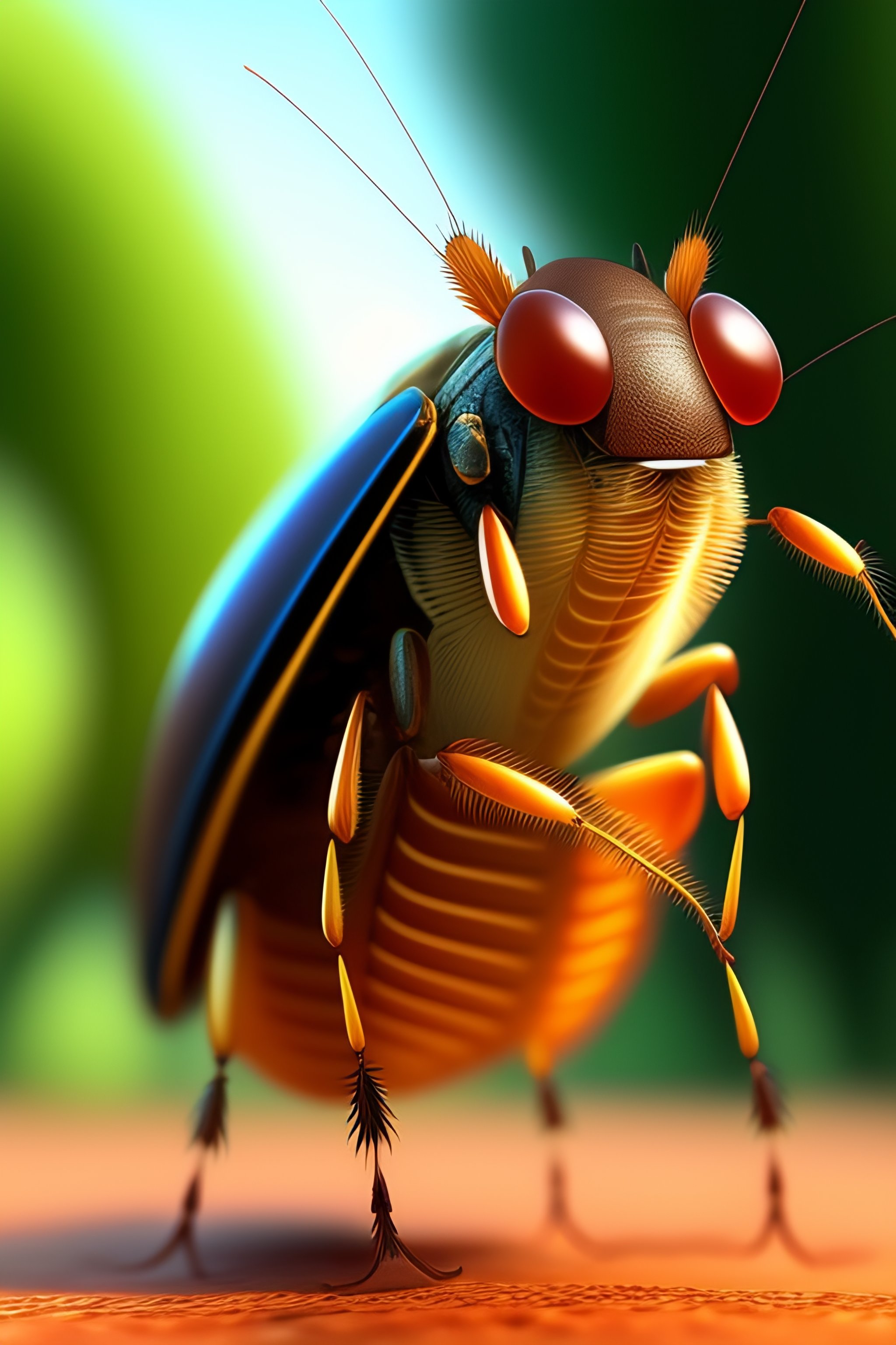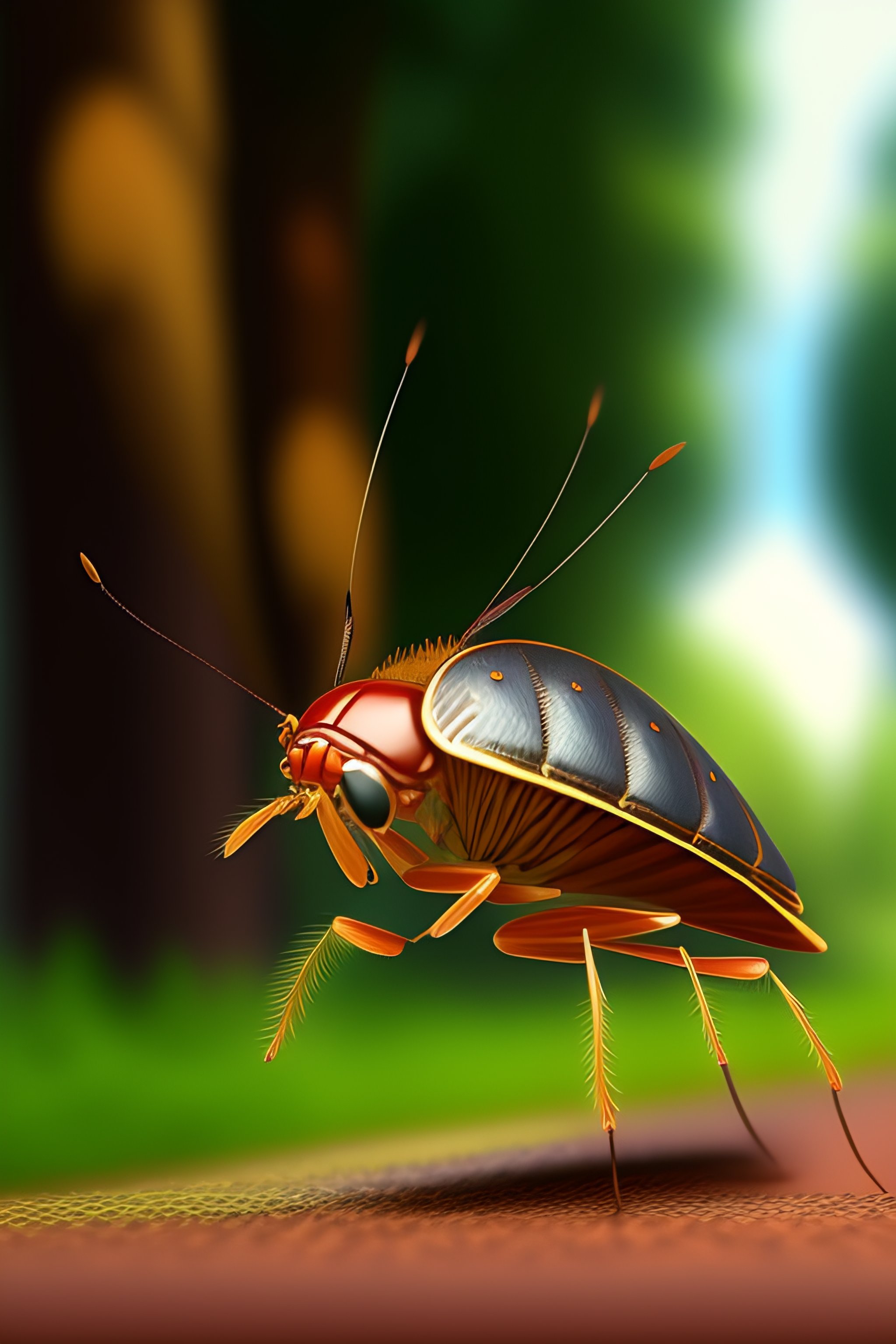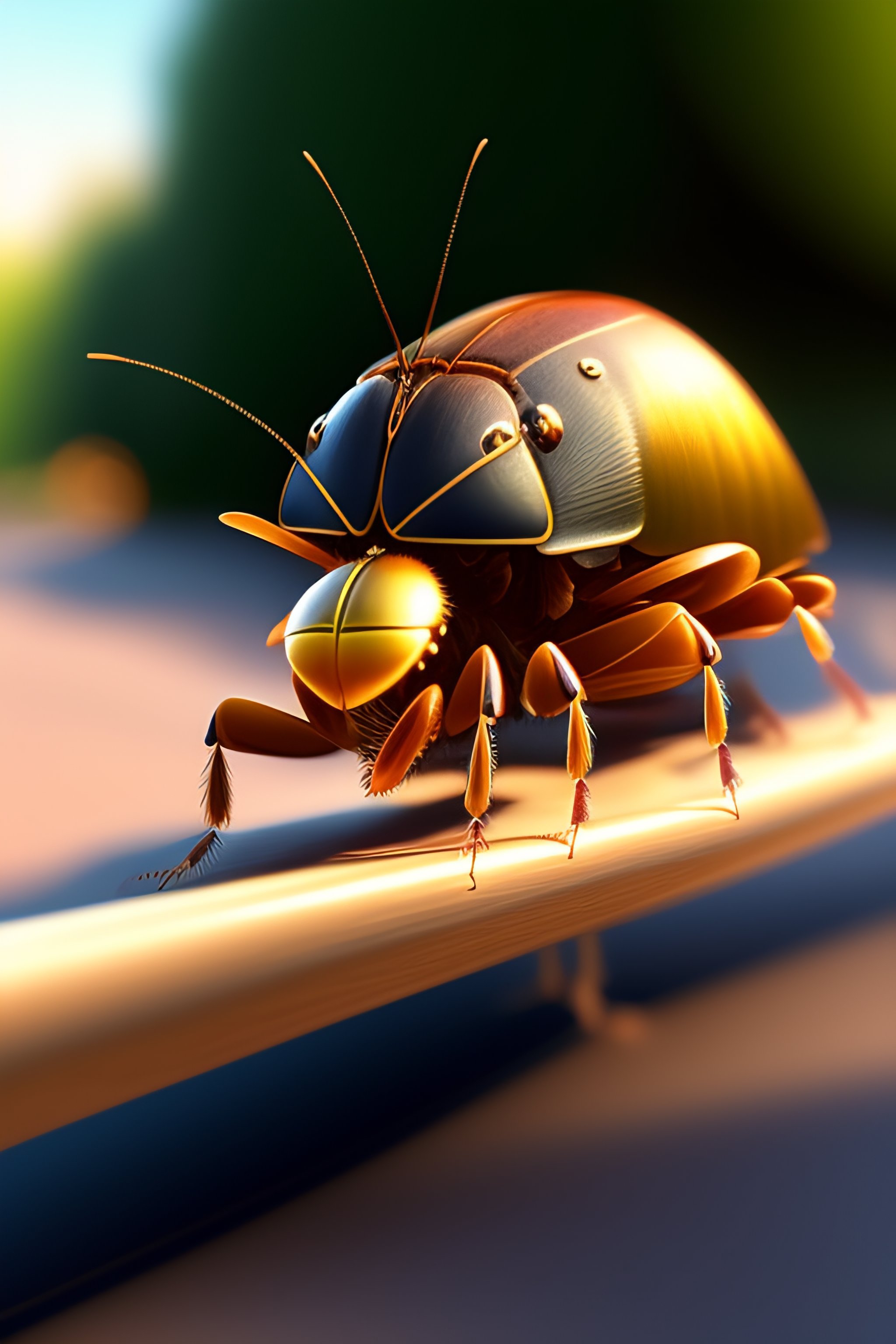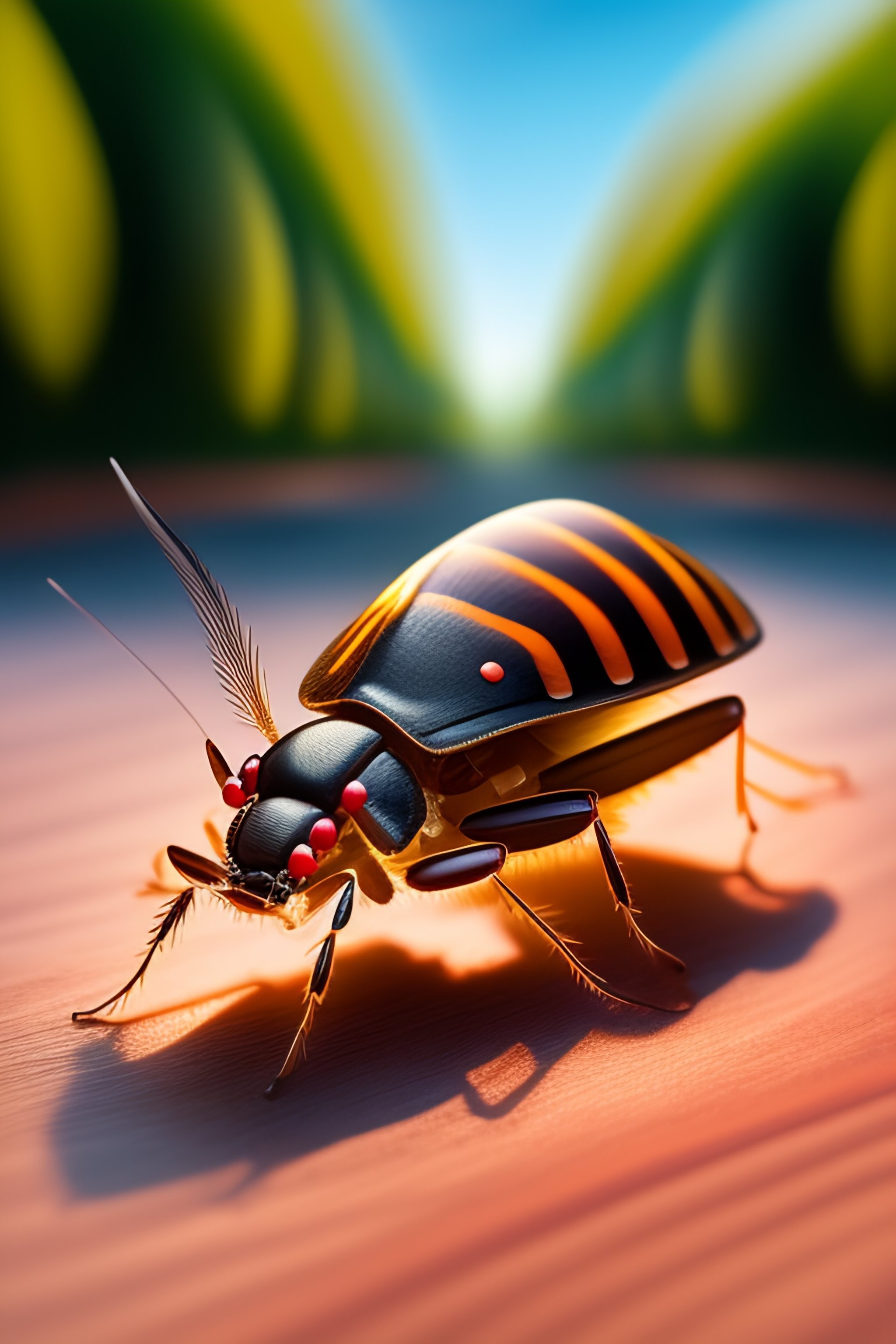A cockroach on a bicycle riding in the park in animated style