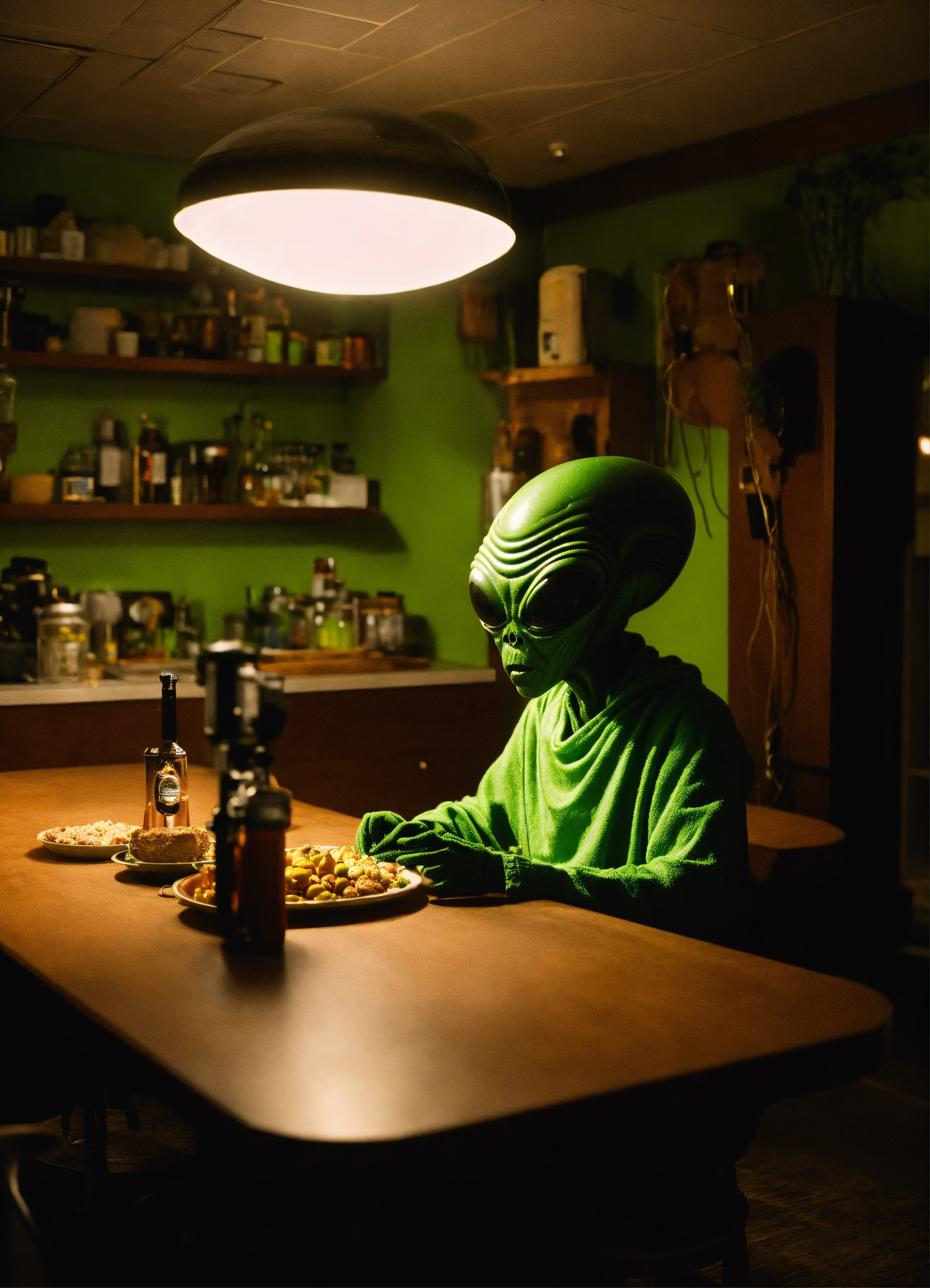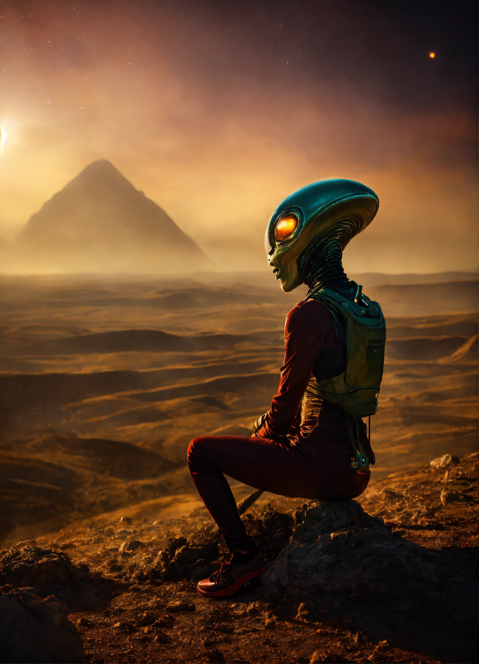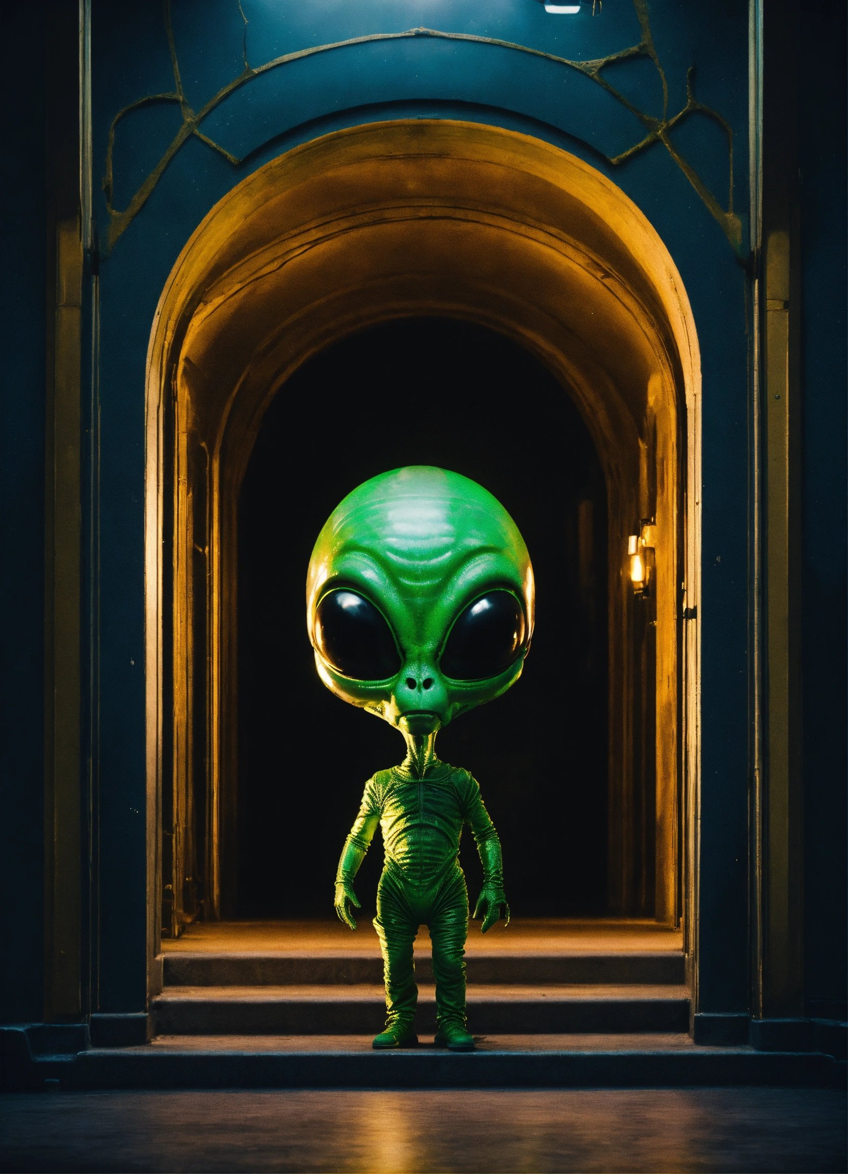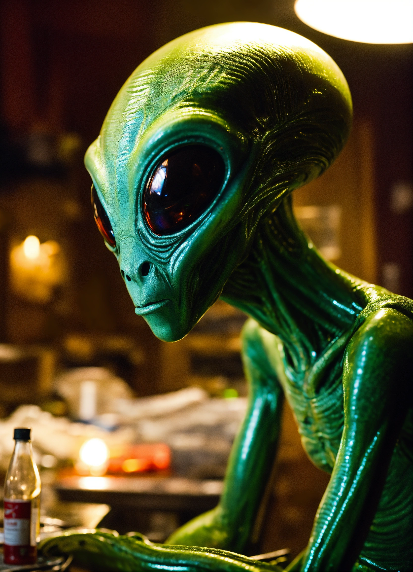 Cinematic moment with an alien (extra terrestrial)